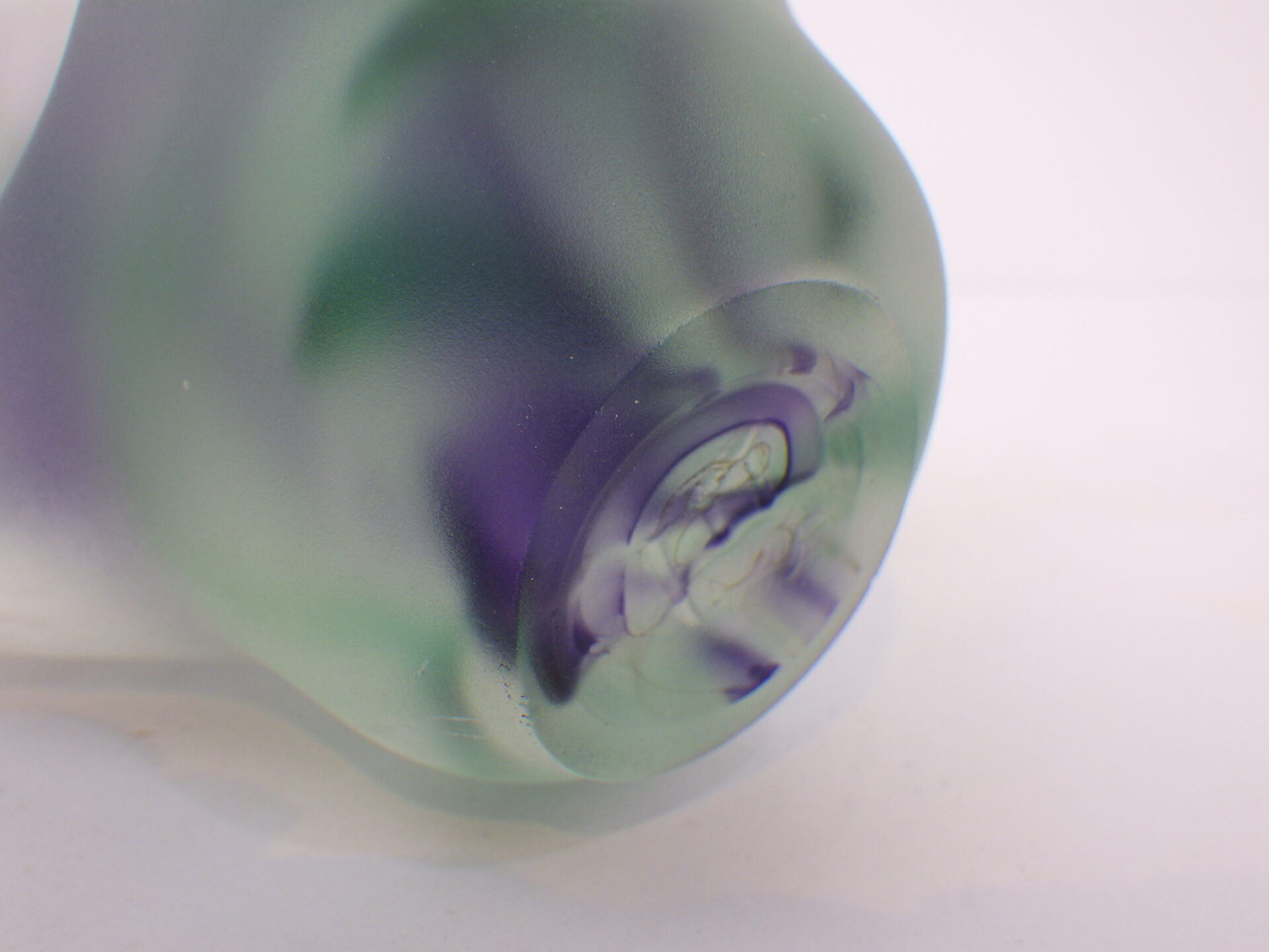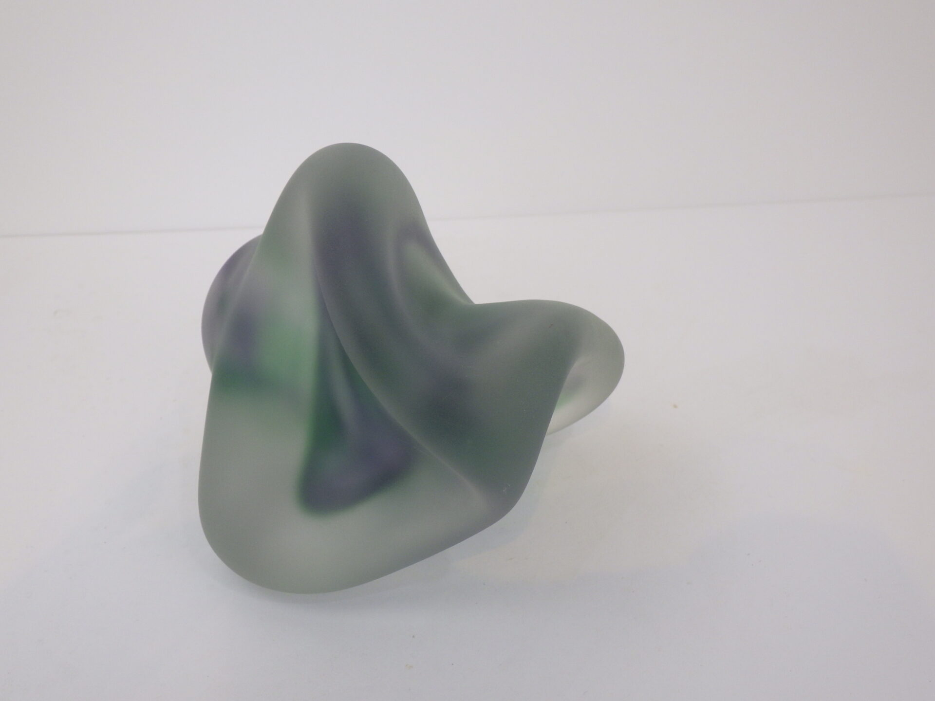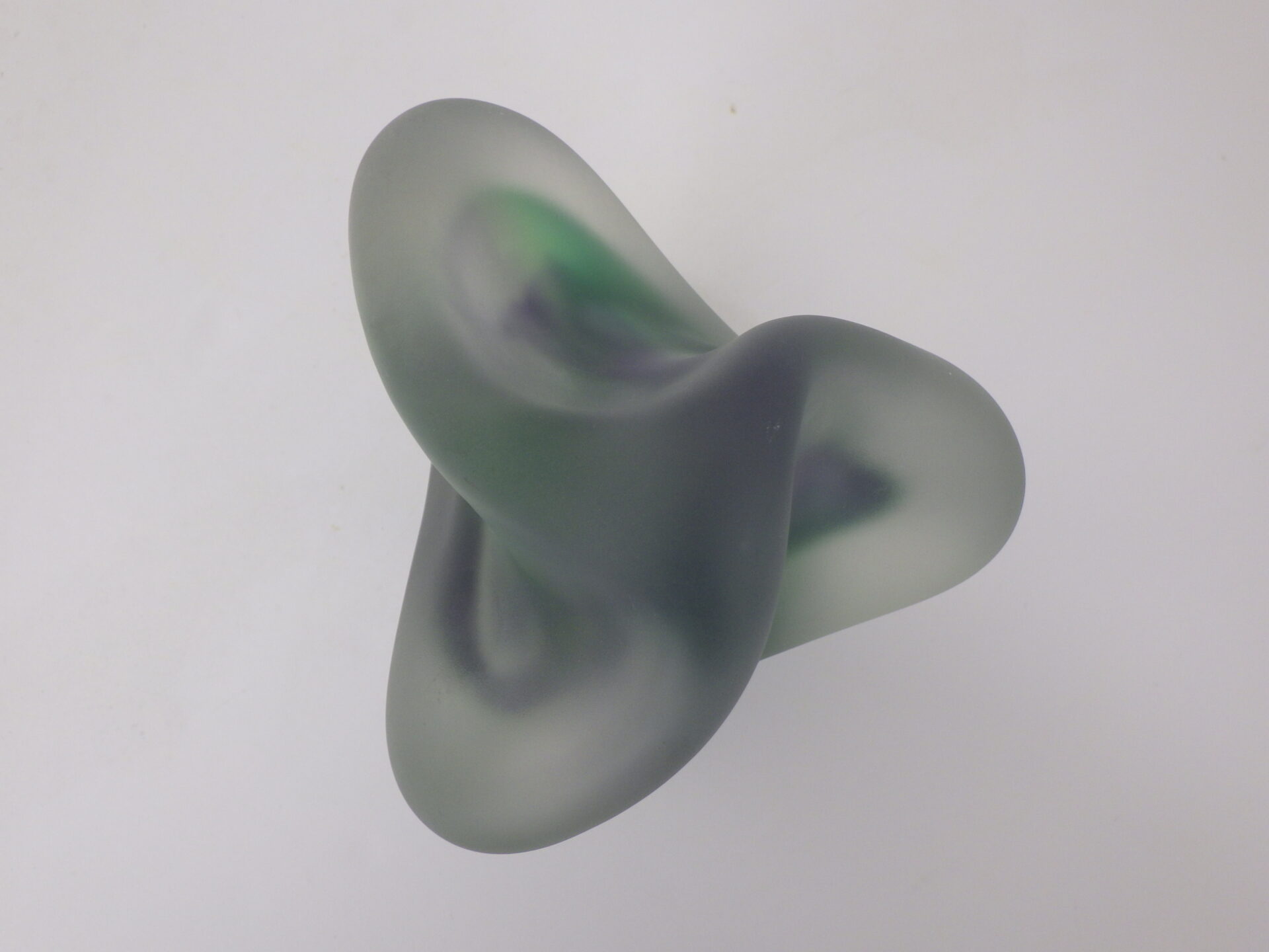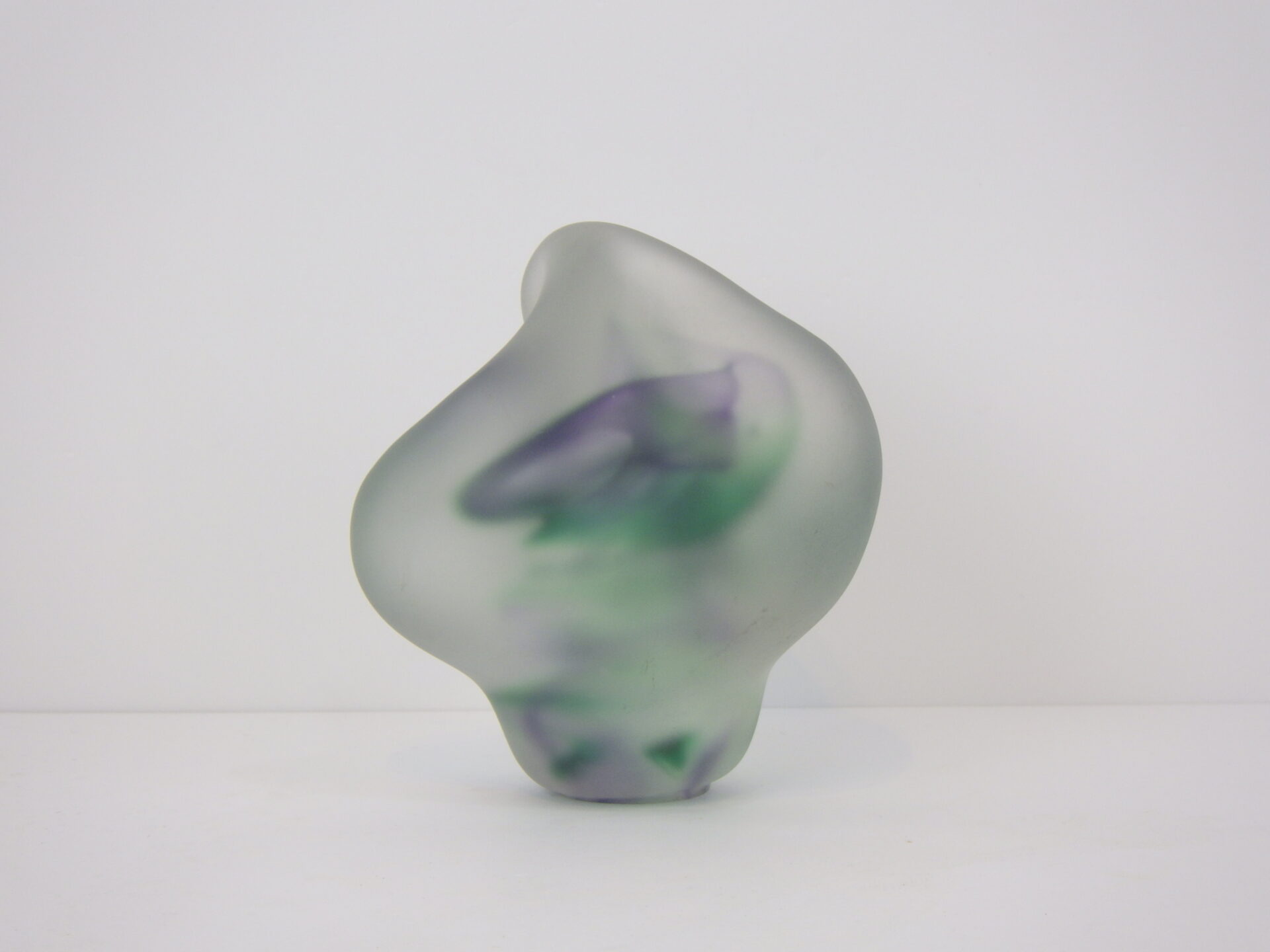 | アメリカで買い付けました。 フロストガラスのスカルプチャーです。 アーティストサインのようなものと、裏面に「R」の刻印が見られますが詳細は不明。 見る角度や光の当たり方によって、形状や色の出かたが異なって見え、不思議な気持ちにさせられるオブジェです。 ずっしりと重量があるので、ペーパーウェイトとしてご使用いただいても良さそうです。 |
