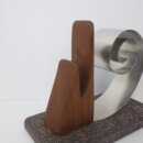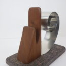 | アメリカで買い付けました。 ビンテージのブックエンドです。 木とぐるぐるの間に本を挟んで使います。(差し込む冊数に合わせてぐるぐるの部分がしなります) 30年代に製造された真鍮とウォルナット製のこの手のタイプのブックエンドが有名ですが、こちらは年代的にはもう少し新しいタイプの物の様です。 土台付きのタイプは市場でもあまり見かけません。 お気に入りの本を挟んでも良いですが、これだけでオブジェとしてお楽しみいただいても良さそうです。 |