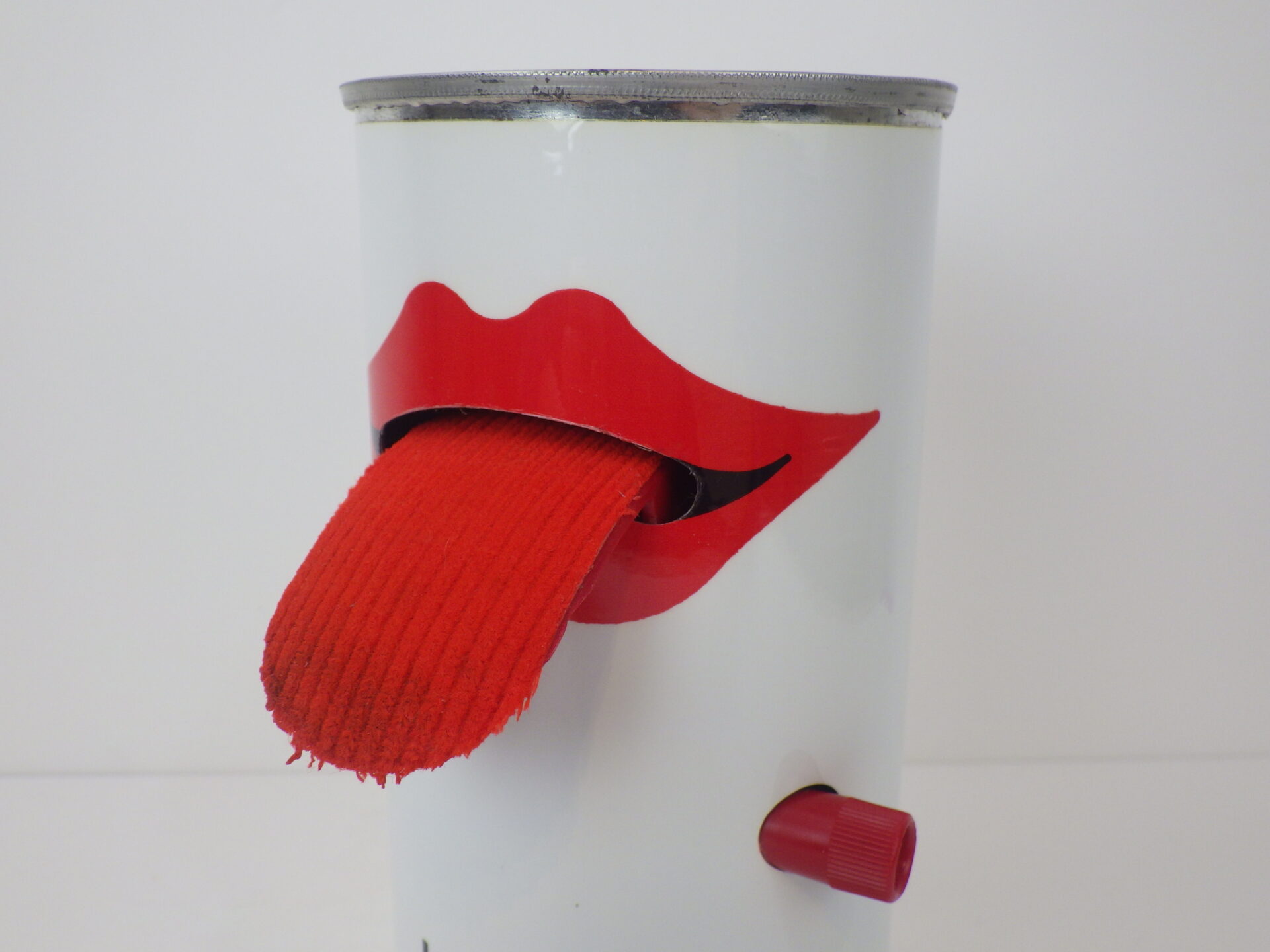 | アメリカで買い付けました。 サイドのつまみを回すと、可愛い舌が出し入れする缶です。 元は缶の中に水を入れて、舌を湿らせ、切手や封筒の封をする際に水をつけられる事務用品として販売されていたようです。 仕事のデスクにこんなにポップで可愛いアイテムがあると、気分良く仕事が捗りそうですよね。 古いアイテムですので、実際に水を入れて使うのは難しいですが、オブジェとして空間のアクセントに、遊び心を取り入れてみてはいかがですか? |