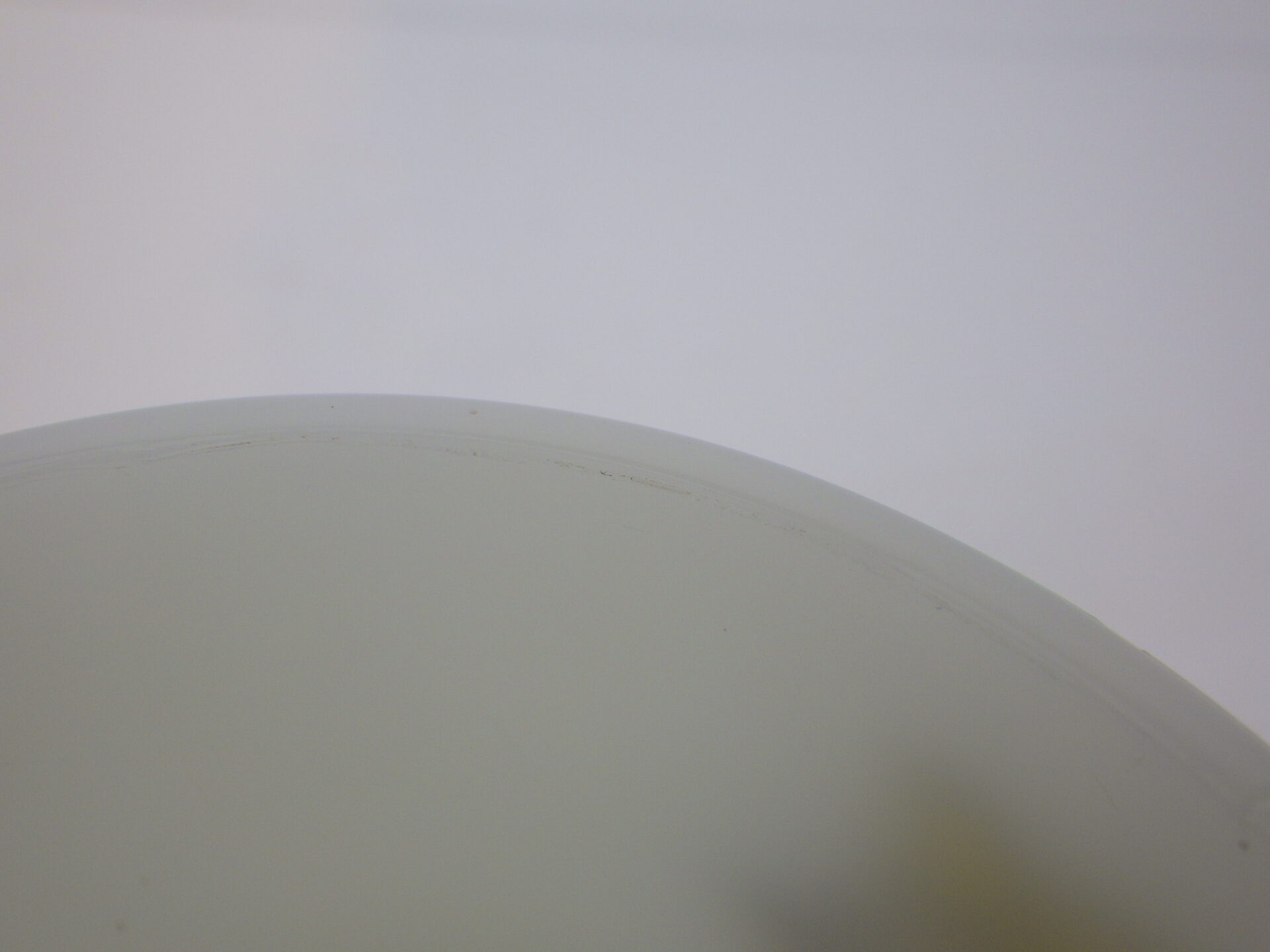 | condition | リム、ボトムにわずかなスレ、薄い着色があります。 リムに製造時よりのわずかながたつきがあります。 内部に製造時よりの凹凸、着色があります。 ミルクガラス特有の製造時よりのヘアライン、ガラスのヨレなどありますが、ご使用に影響はありません。 その他ワレ、カケなく、ツヤもあり良い雰囲気です。 |