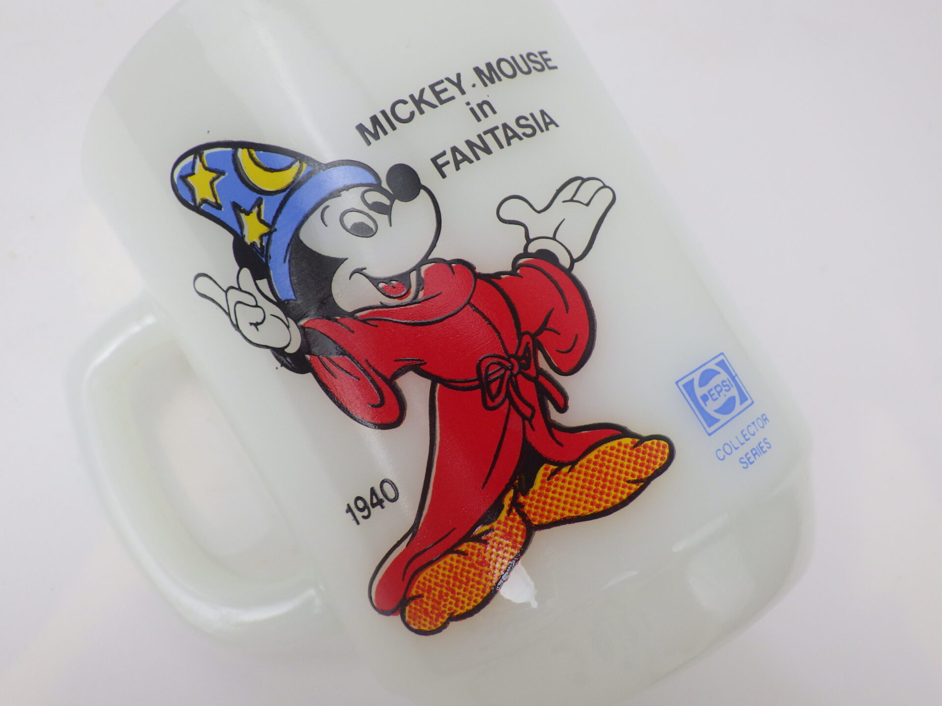 | アメリカで買い付けました。 ファイヤーキングのマグです。 1980年にペプシがノベルティで作ったディズニーマグで、ペプシのロゴもプリントされています。 こちらは1940年製作の映画「ファンタジア」の中の「魔法使いの弟子」に登場するミッキーをモチーフにしています。 東京ディズニーリゾートでもショーに登場したり、グッズになっていたりするため、日本のディズニーファンにも馴染み深いモチーフかと思います。 |