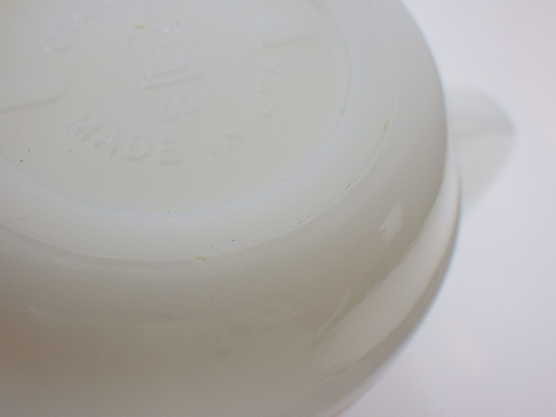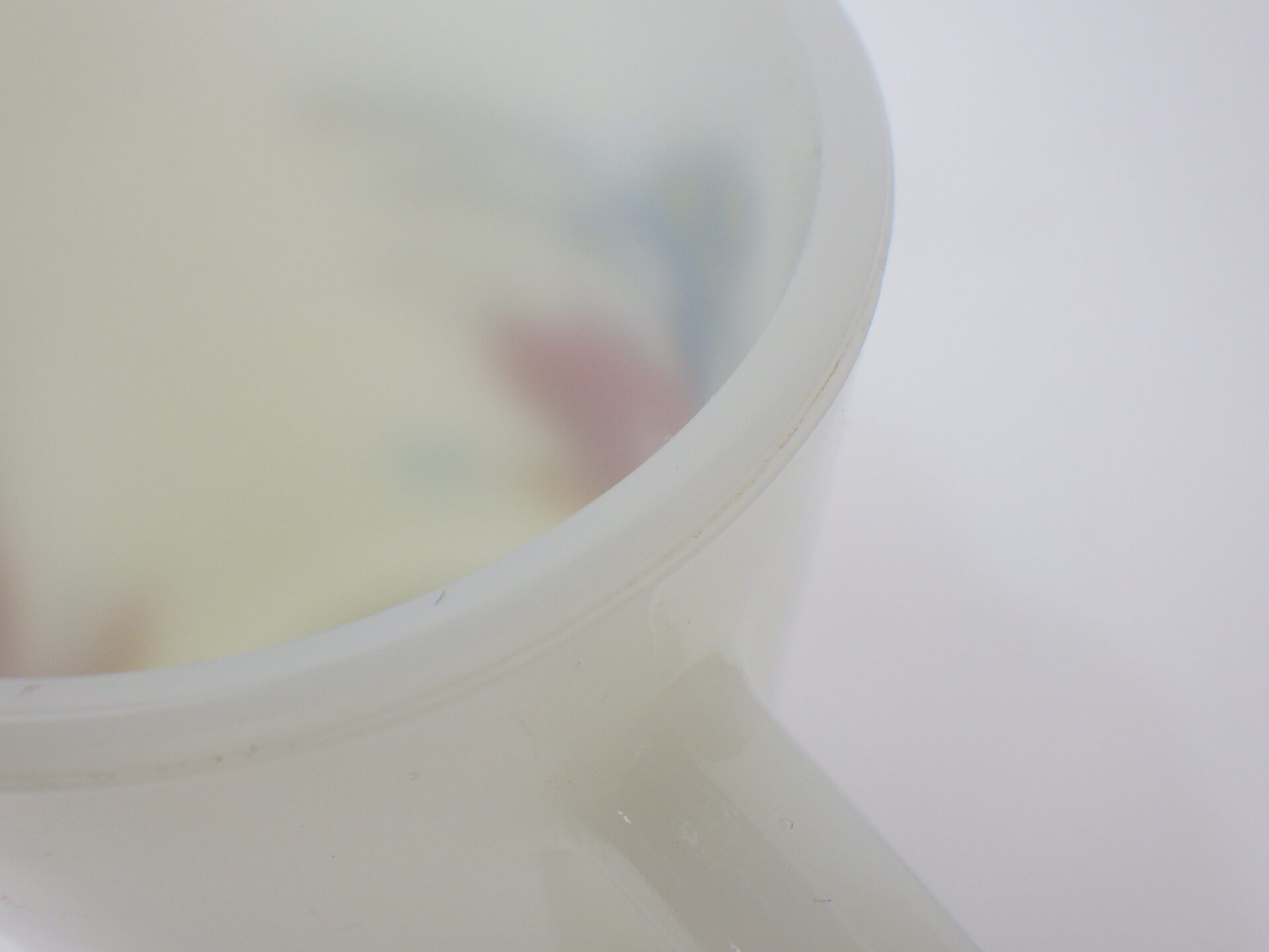 | condition | リムに製造時よりのがたつきがあります。 リム、側面、内部にわずかな着色があります。 ミルクガラス特有の、製造時よりのヘアライン、劣化線、ガラスのヨレなどあります。 その他ワレ、カケなく、ツヤもあり綺麗な状態です。 |