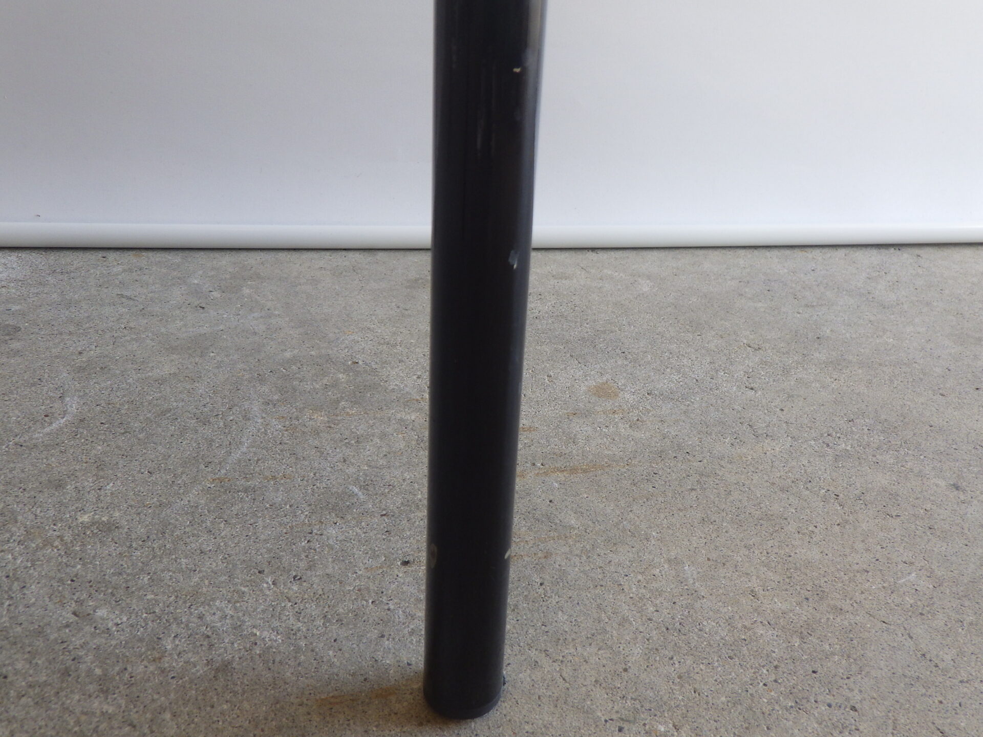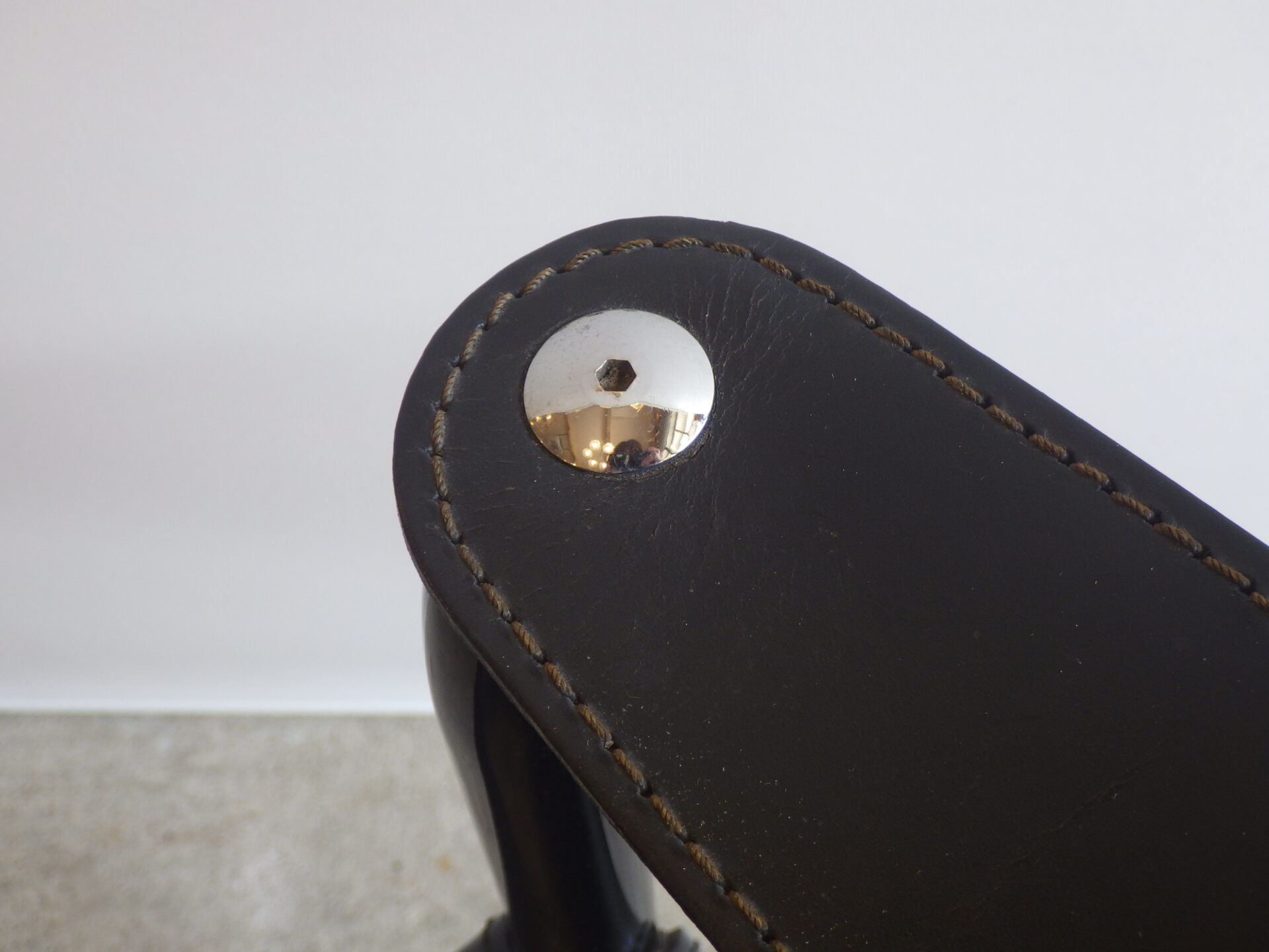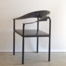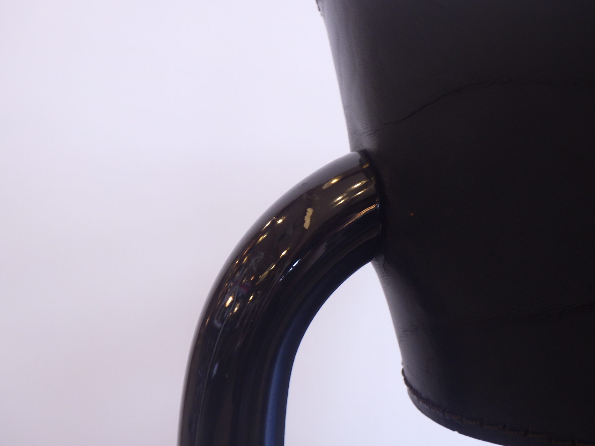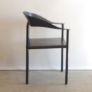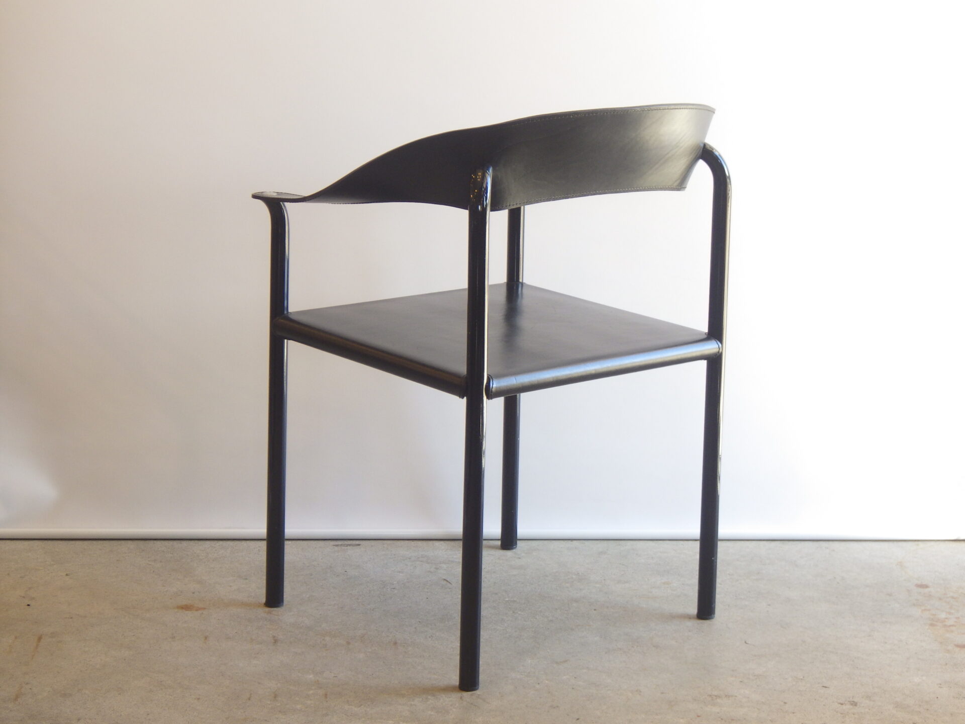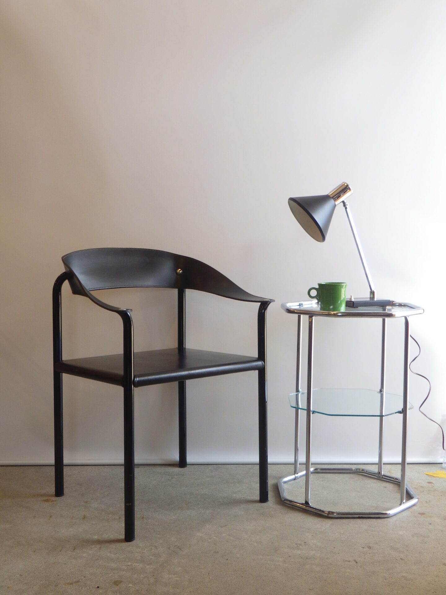 | ヨーロッパで買い付けました。 イタリア製のダイニングチェアです。 スチールフレーム、レザーともにブラックで、ひじ掛けにはクロムの金具がついています。 近年再評価されつつあるポストモダンデザイン。 ダイニングチェアとしてご使用いただくのはもちろんのこと、壁際に置いてこの時代ならではのデザインを空間のアクセントとして取り入れて頂くのもおすすめしています。 |