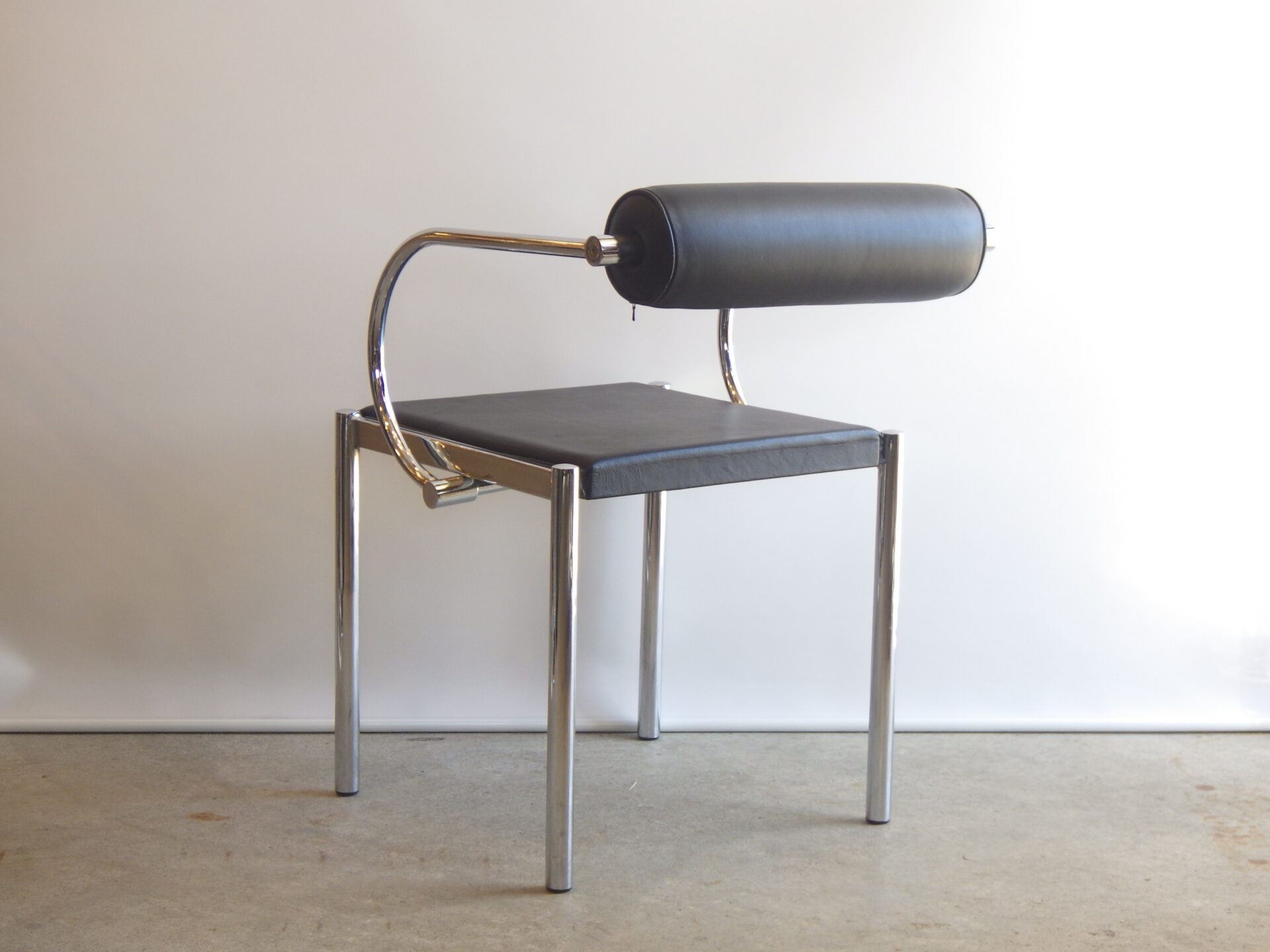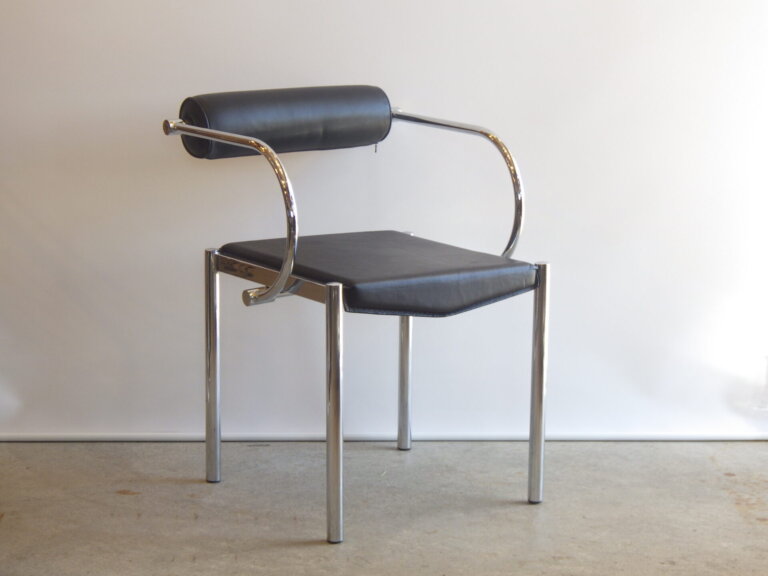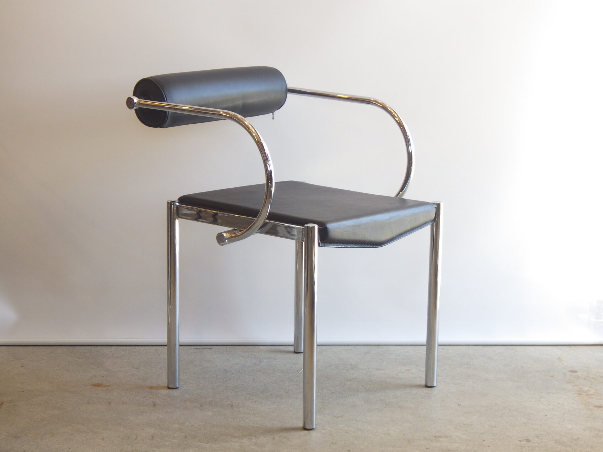 | イタリア人デザイナーPaolo PivaデザインのARCADIA CHAIRです。 クロームとレザーのモダンな雰囲気に、曲線が入ったポストモダンスタイルなチェアです。 ユニークなデザインですが、座面が深く、ゆったりとした座り心地です。 目を惹くデザインですので、店舗什器としてもおすすめしています。 |