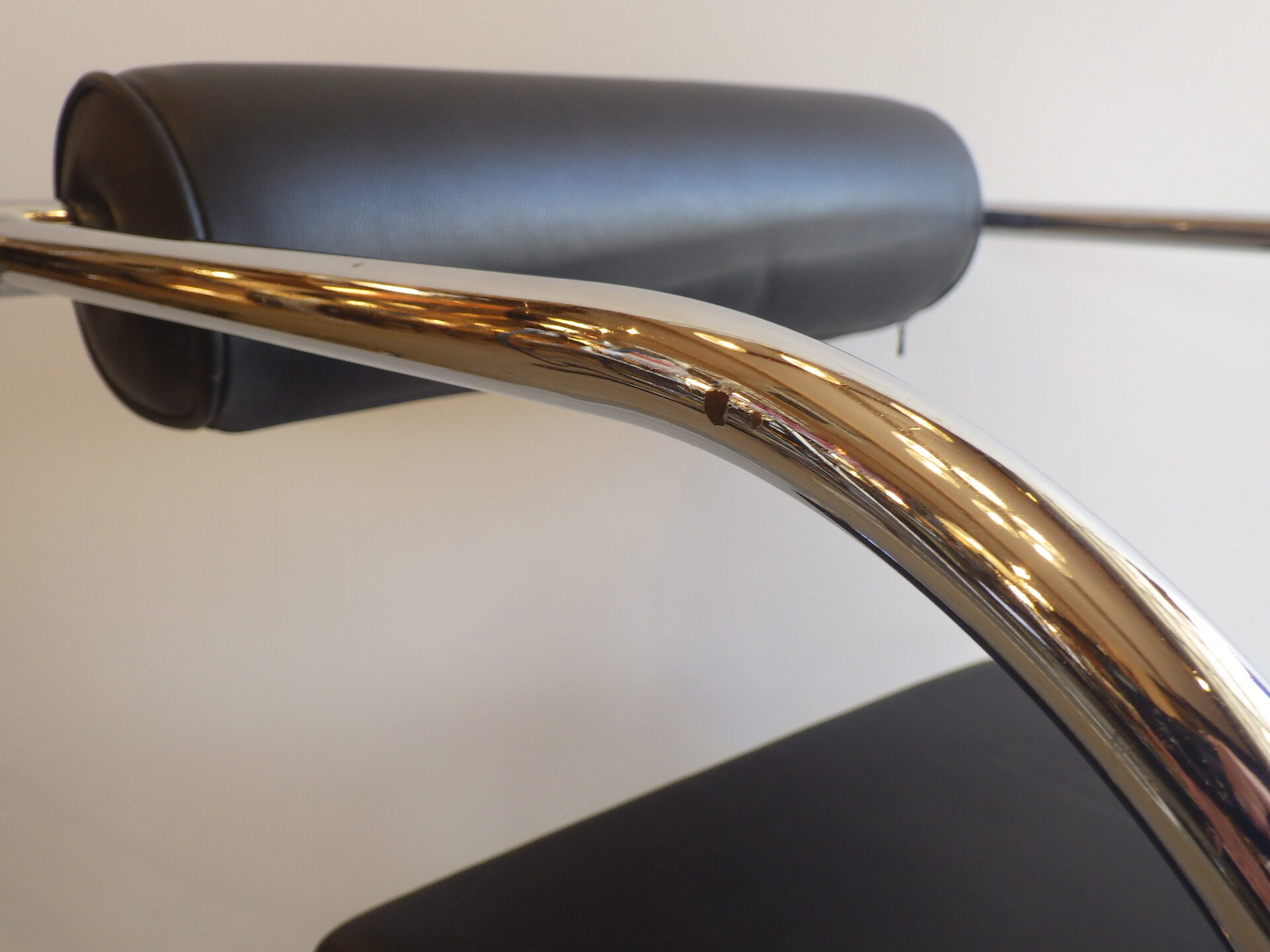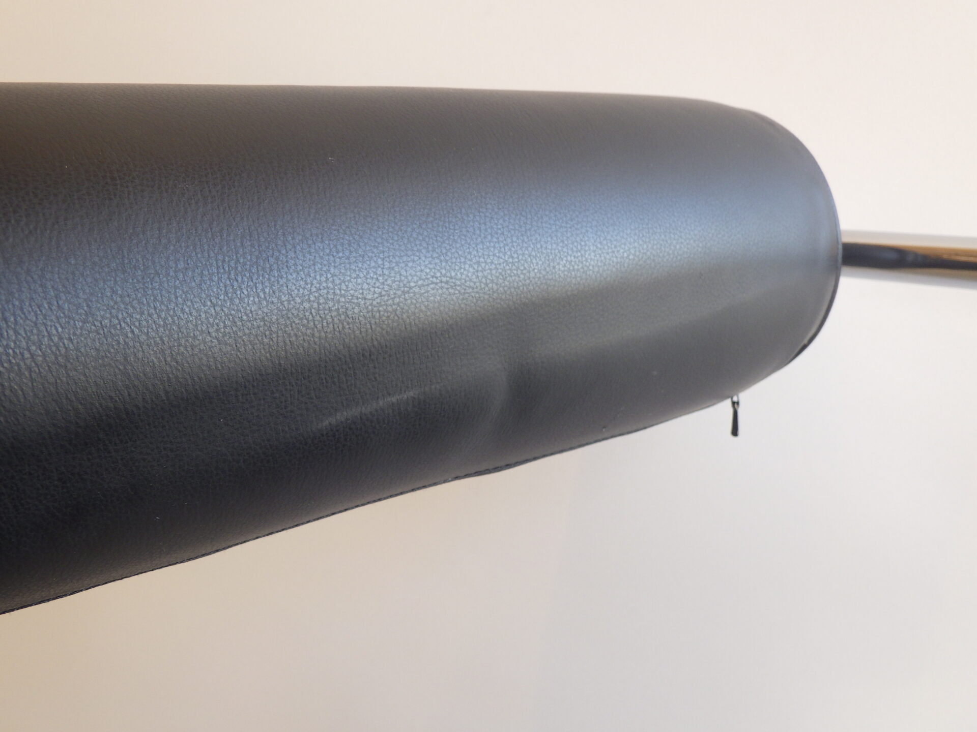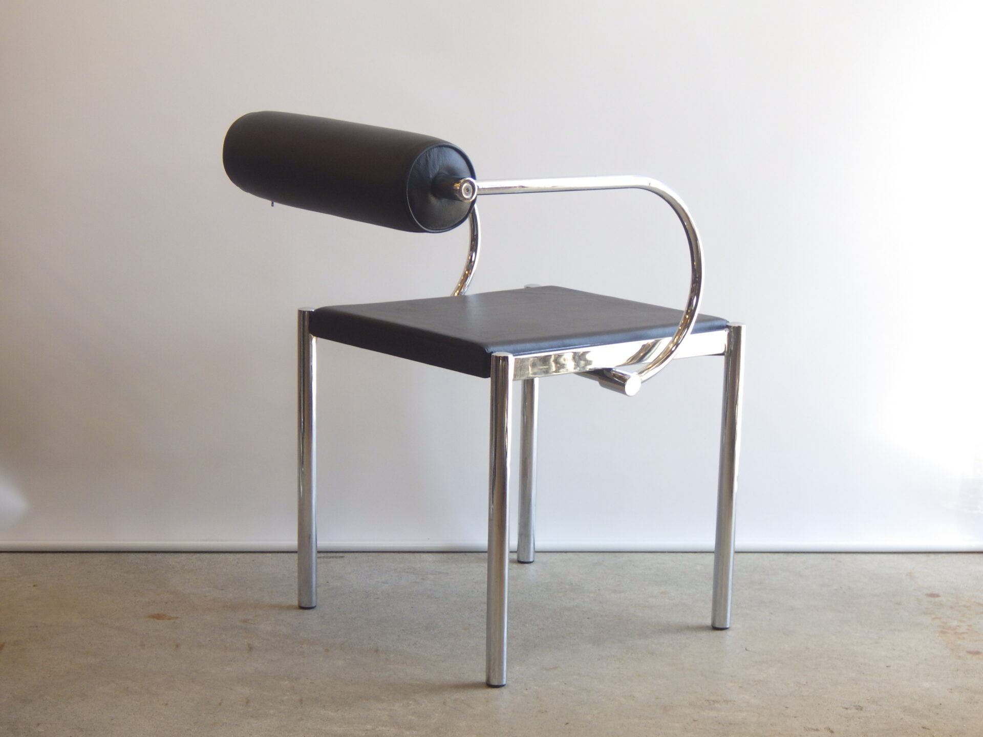 | イタリア人デザイナーPaolo PivaデザインのARCADIA CHAIRです。 クロームとレザーのモダンな雰囲気に、曲線が入ったポストモダンスタイルなチェアです。 ユニークなデザインですが、座面が深く、ゆったりとした座り心地です。 目を惹くデザインですので、店舗什器としてもおすすめしています。 |