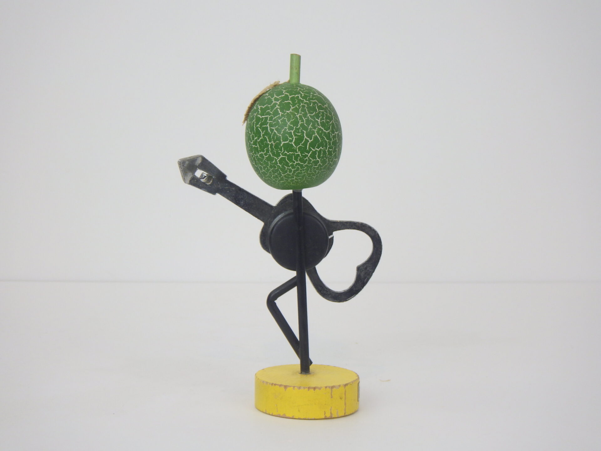 | アメリカで買い付けました。 MADE IN JAPANのビンテージのボトルオープナーです。 人形のおなか部分がマグネットになっており、ギター型の栓抜き(缶切り)を取り付けられるようになっています。 ポップでキュートな表情のメロンちゃんがキッチンに彩りを加えてくれそうです。 |