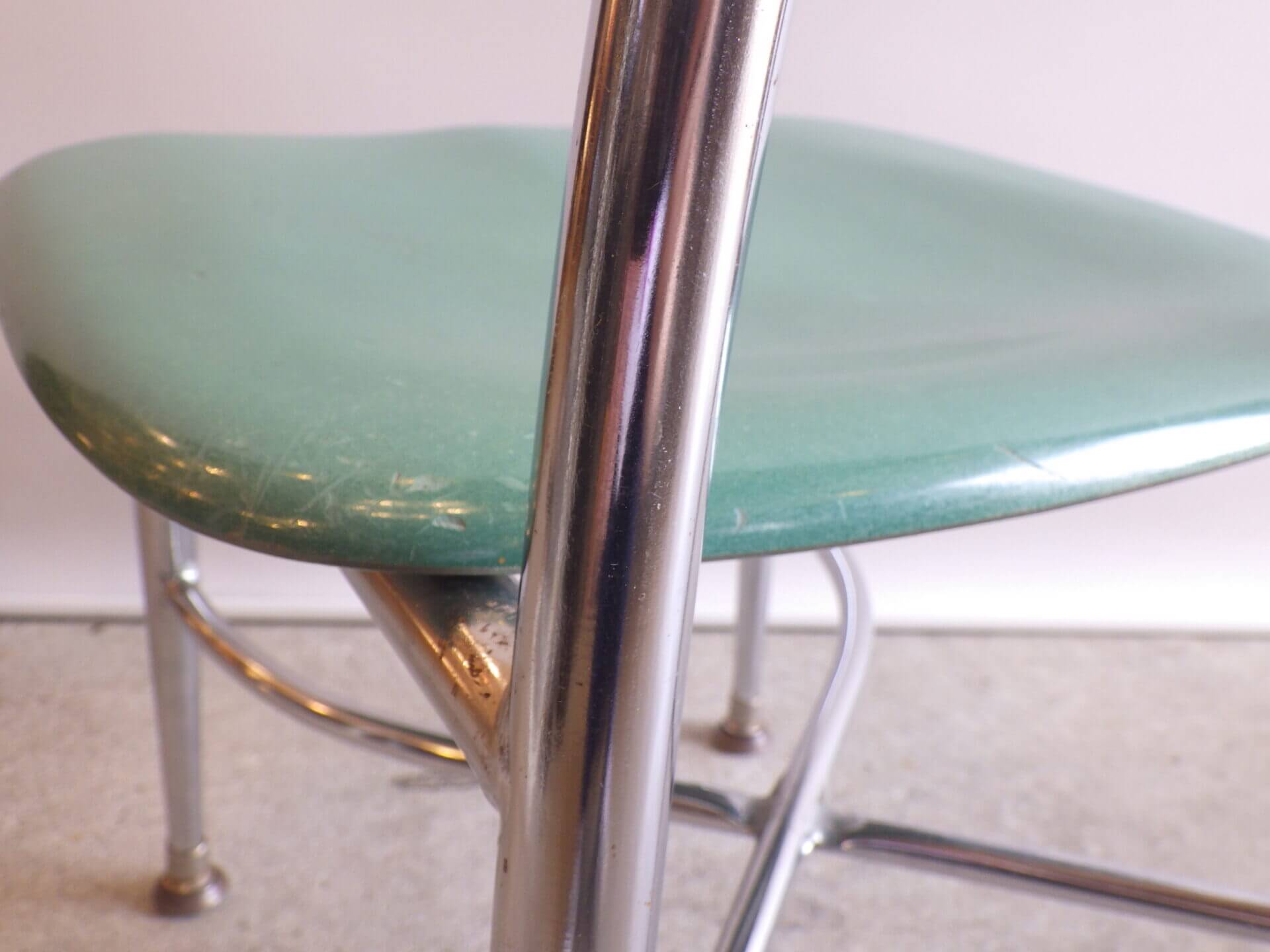 | アメリカで買い付けました。 "HEYWOOD-WAKEFIELD" Heywooditeのスクールチェアです。 ヘイウッドと言えばバーチ材の家具で有名ですが、こちらのチェアはファイバーグラスとスチール製です。 色使いが大変可愛く、ディスプレイとしてご使用いただくのにもおすすめです。 もちろん実際に座ってご使用いただけるコンディションですので、お子様用にお迎えいただくのにも良いと思います。 (現状大人が座っても問題ないコンディションです) |