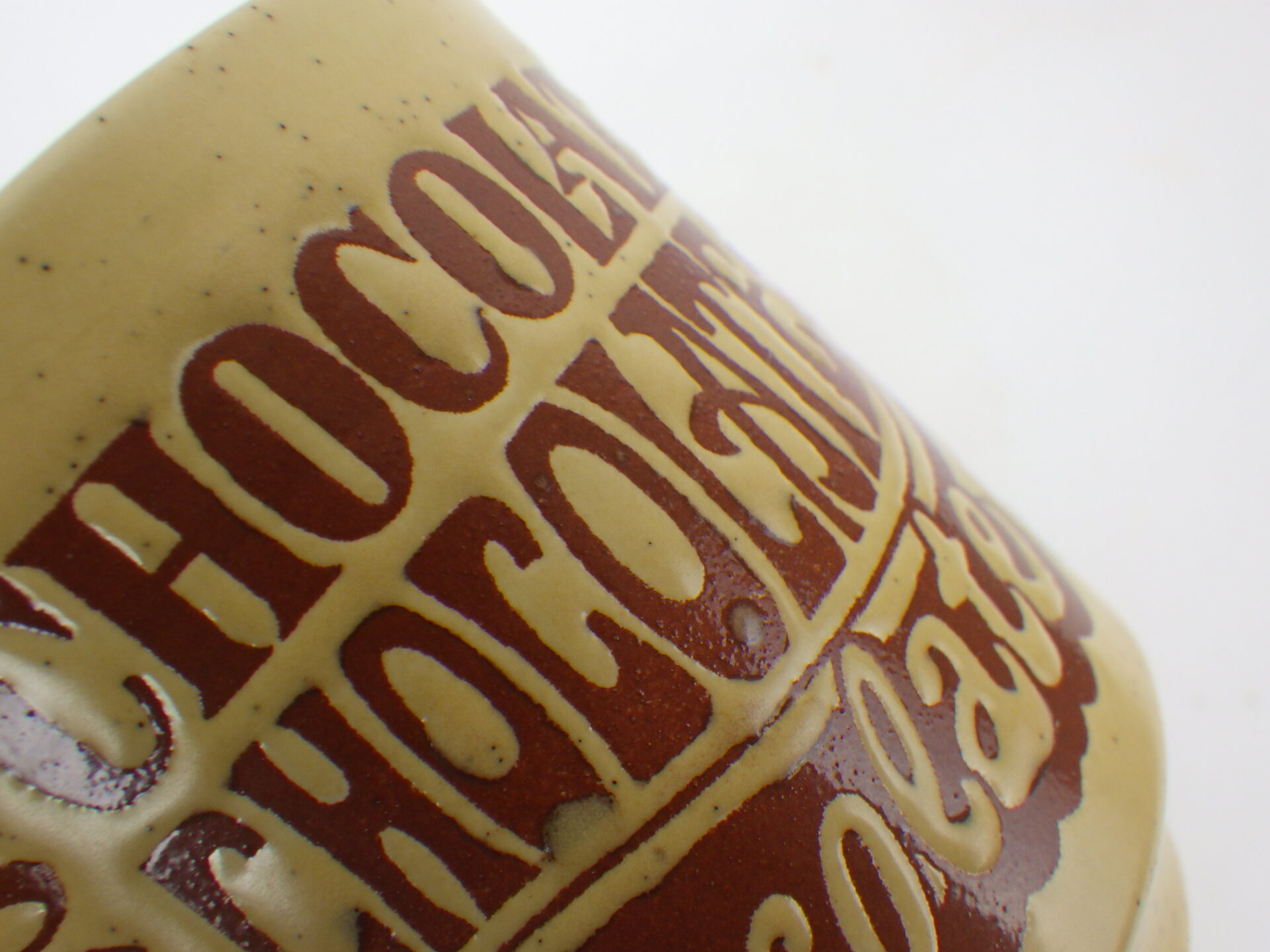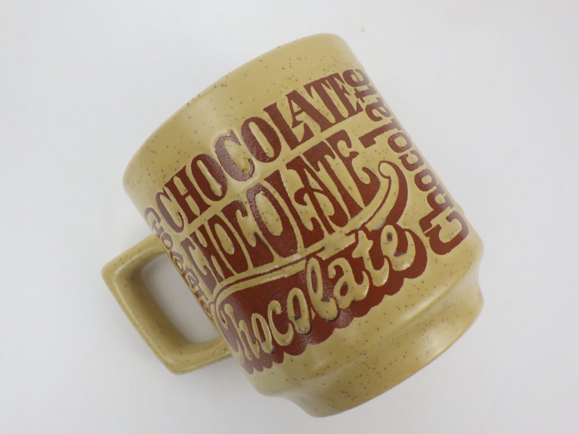 | アメリカで買い付けました。 「チョコレート」の文字が全面にデザインされた可愛い陶器のマグです。 裏面にJAPANの刻印がありますが、当時アメリカ向けに輸入品として製造されていたようです。 おうち時間のコーヒータイムやアウトドアのお供にいかがですか? |