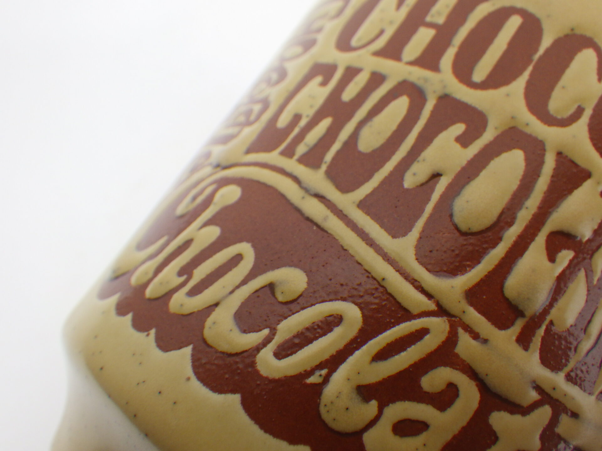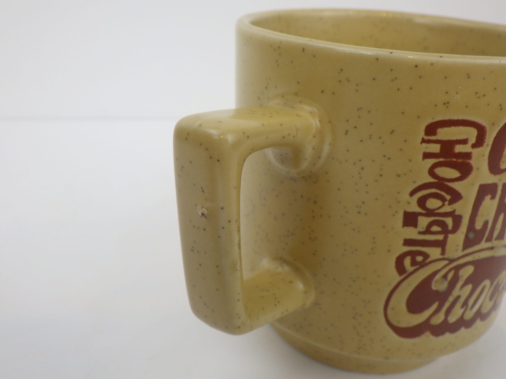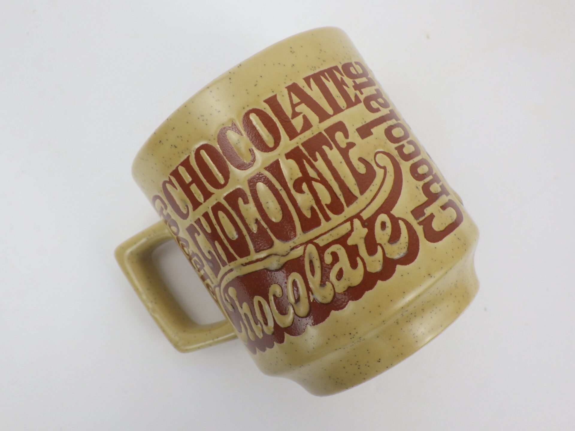 | アメリカで買い付けました。 「チョコレート」の文字が全面にデザインされた可愛い陶器のマグです。 裏面にJAPANの刻印がありますが、当時アメリカ向けに輸入品として製造されていたようです。 おうち時間のコーヒータイムやアウトドアのお供にいかがですか? |