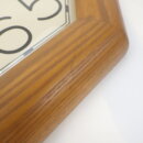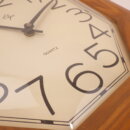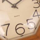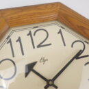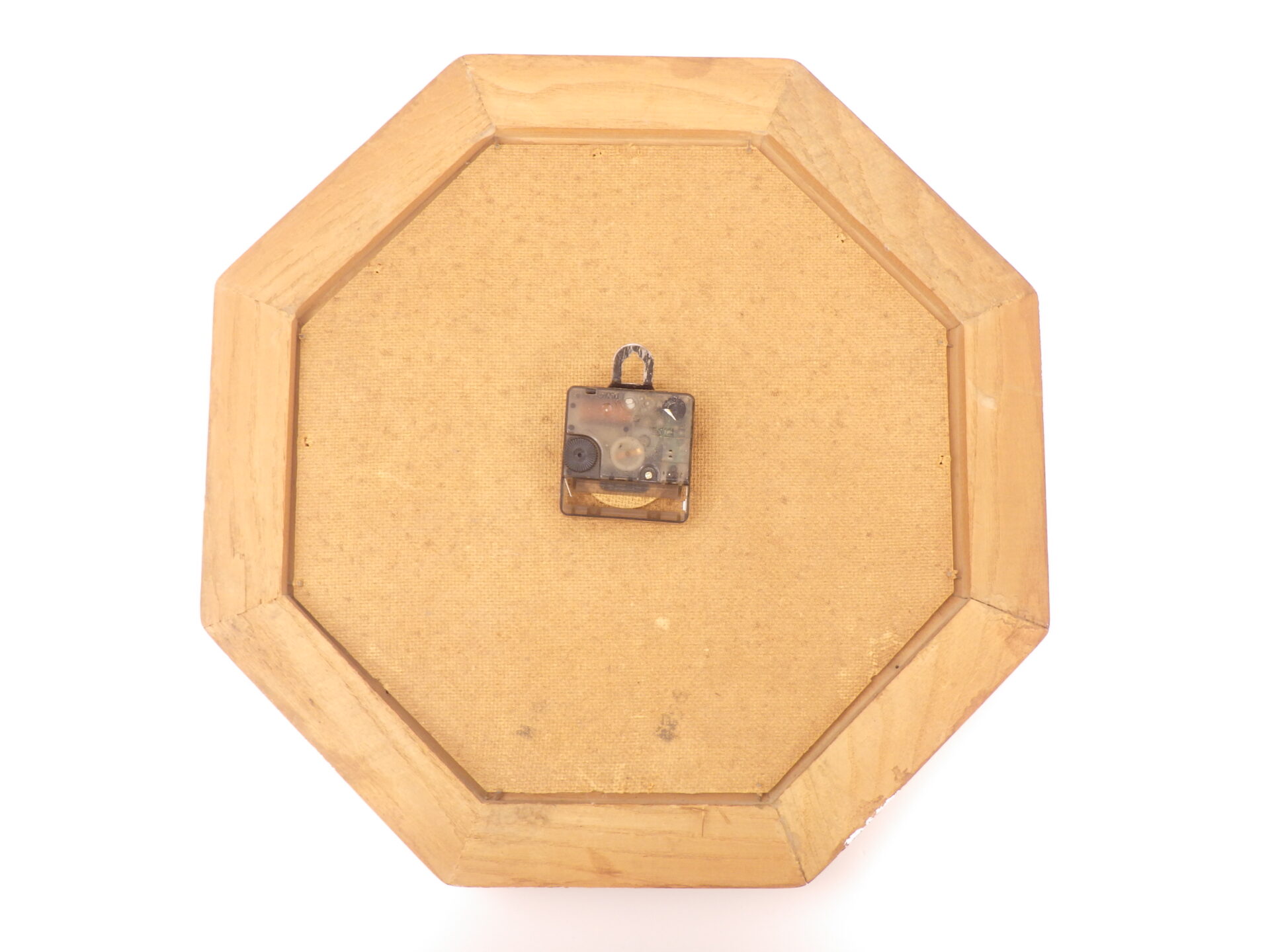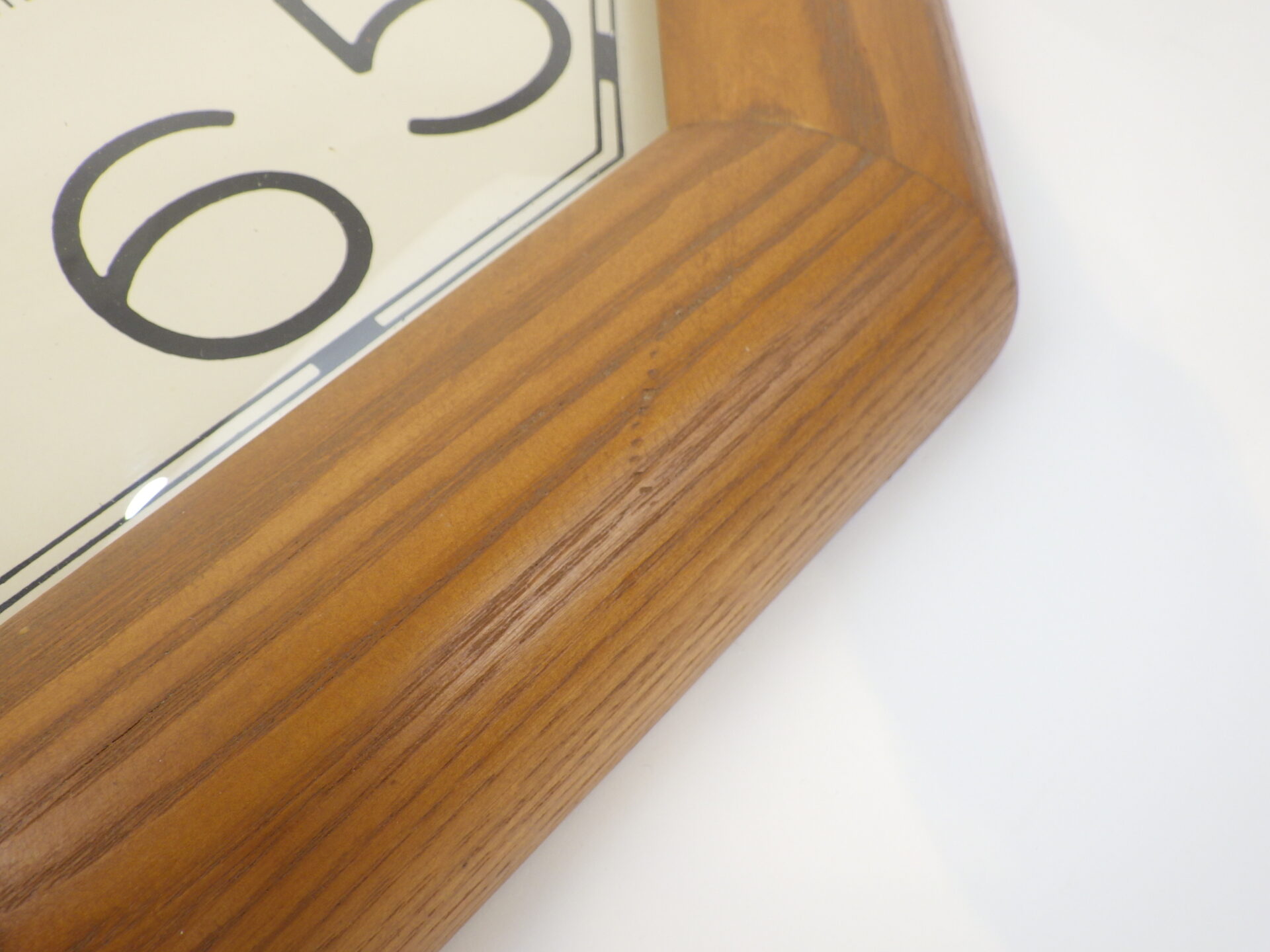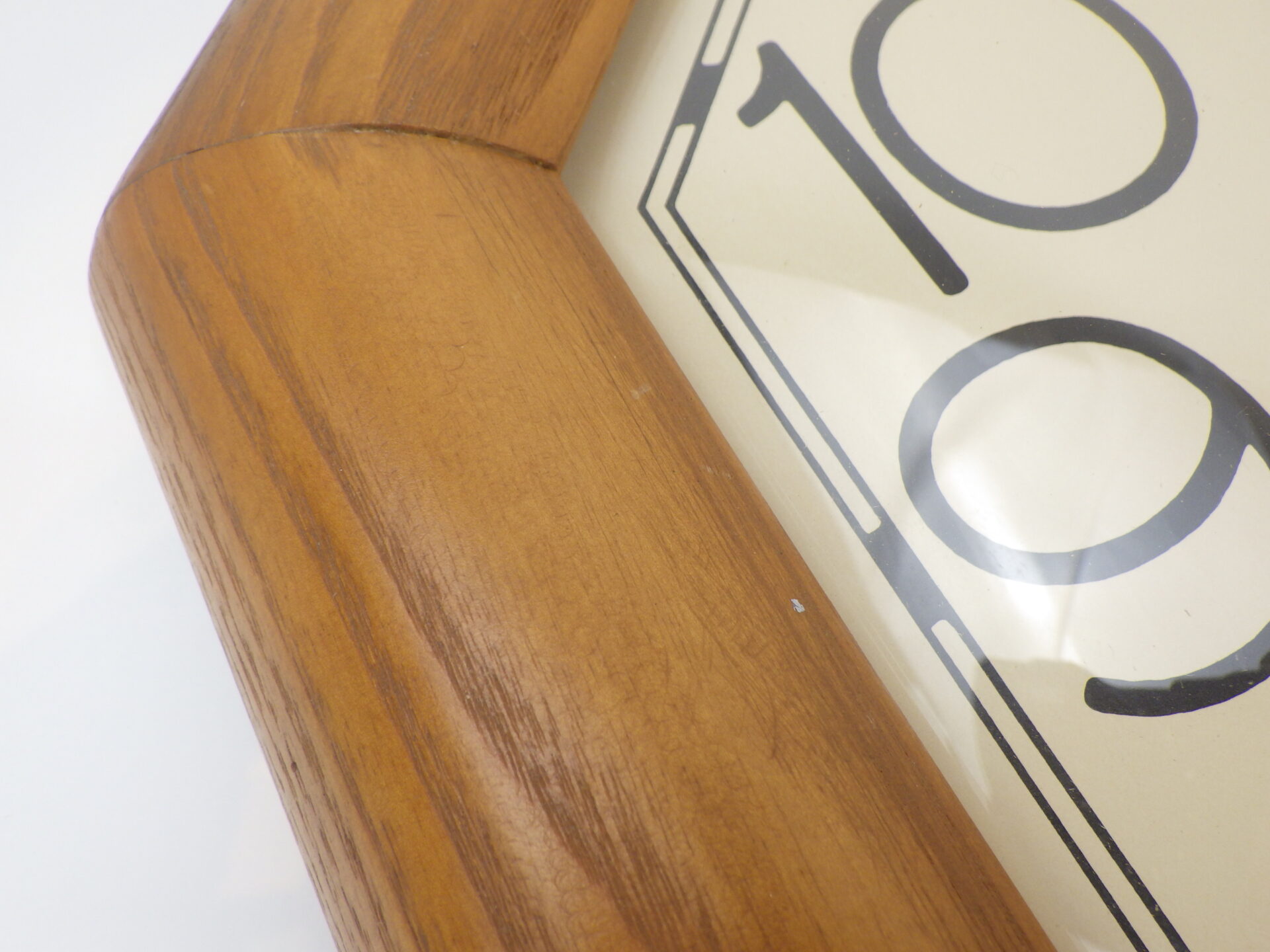 | アメリカで買い付けました。 Elgin社製、ビンテージウォールクロックです。 Elgin社は1950年代以前の最盛期には、アメリカを代表する懐中時計・腕時計メーカーの一つであり、高級腕時計のブランドに数えられる存在でした。 こちらのウォールクロックは、コロンとした大ぶりな文字と、大きな矢印を模した短針がアクセントになっています。 くっきりとした木目の六角形のウッドベースも、あたたかみがあって良い雰囲気ですね。 ボリューム感のあるサイズなので、リビングなどの広い空間でもご使用いただけます。 |