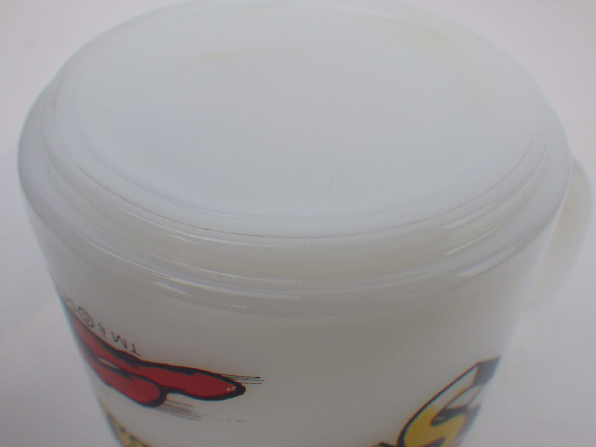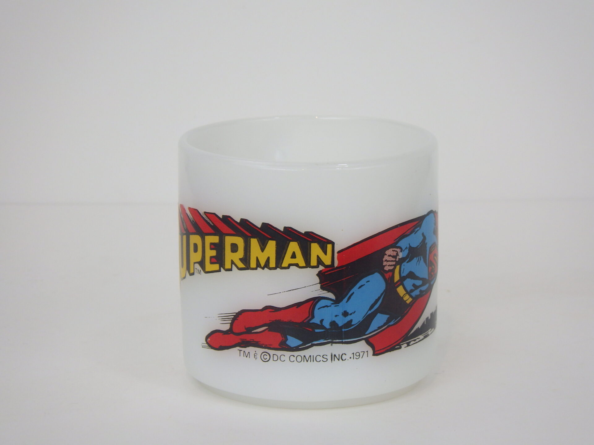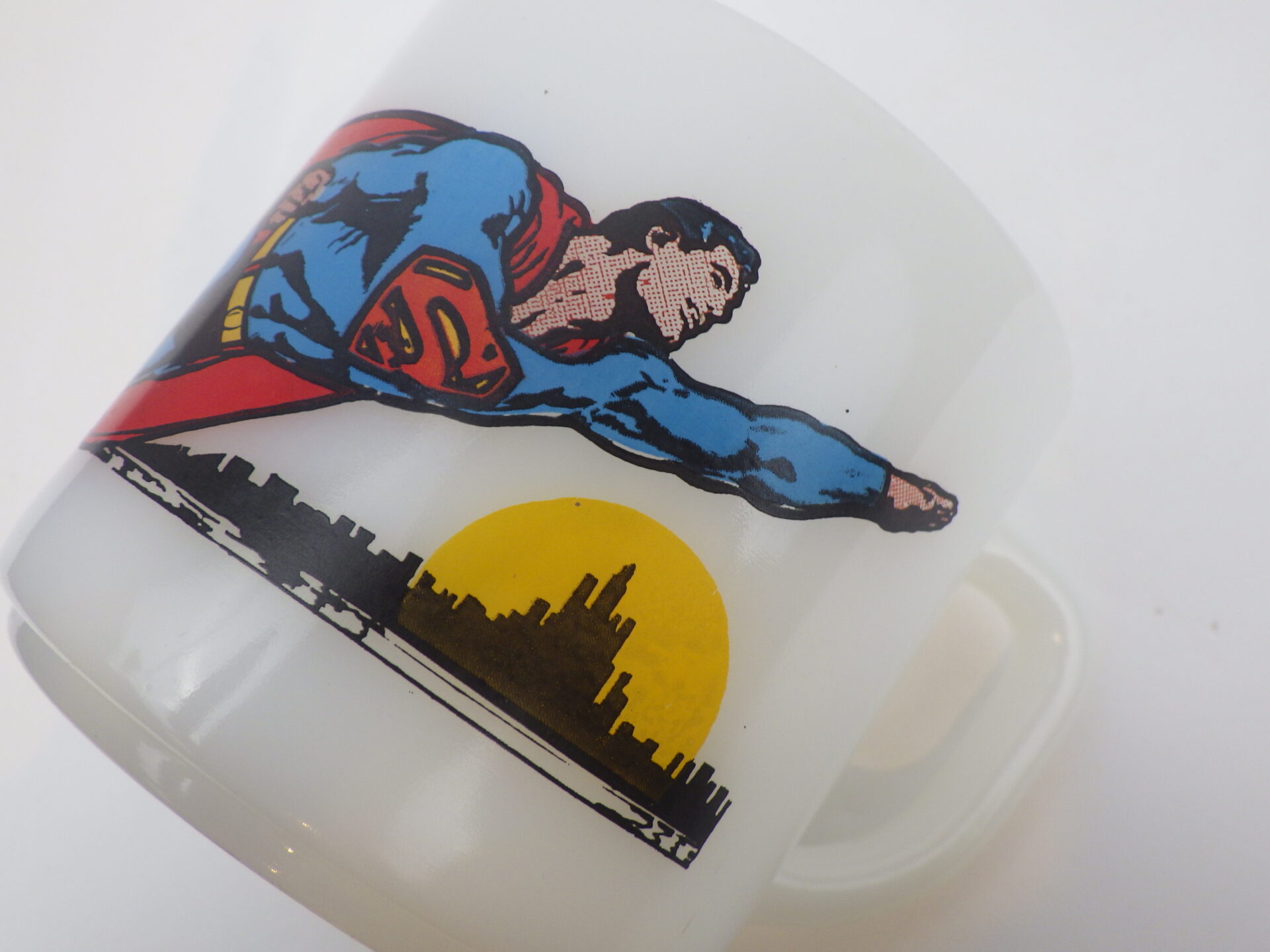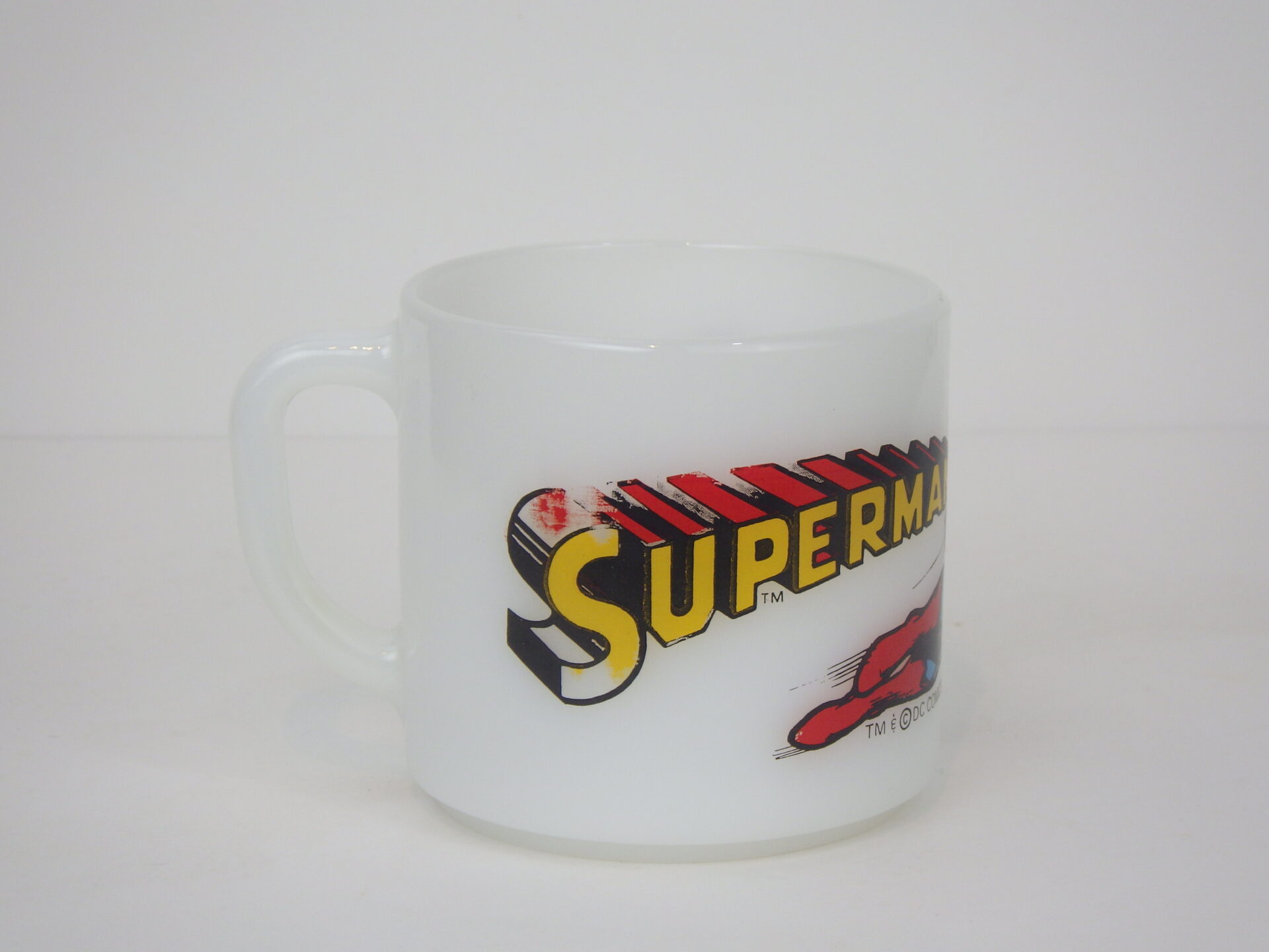 | アメリカで買い付けました。 日本でもお馴染み、アメコミのスーパーヒーロー「スーパーマン」のマグです。 1971年にプロモーションで製造されたものです。 スーパーマンが空飛ぶ姿がぐるりと一周ダイナミックにプリントされていて、迫力のある構図が目を惹きますね。 |