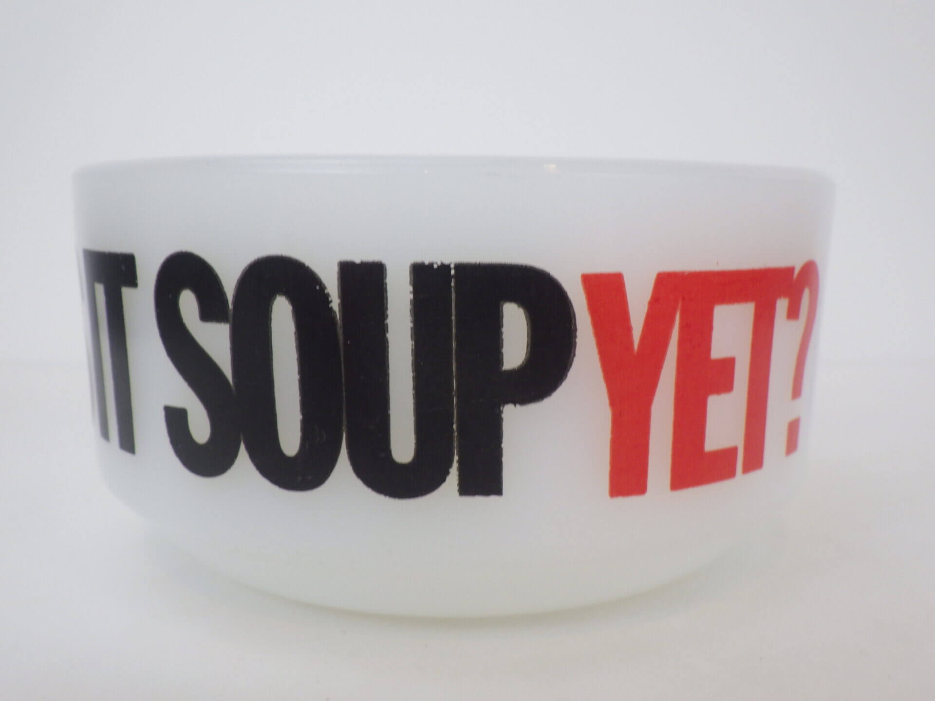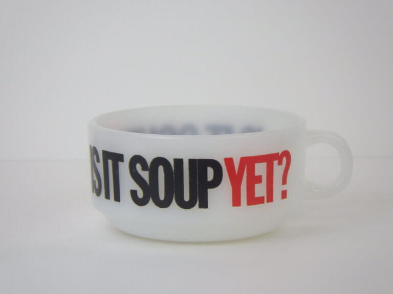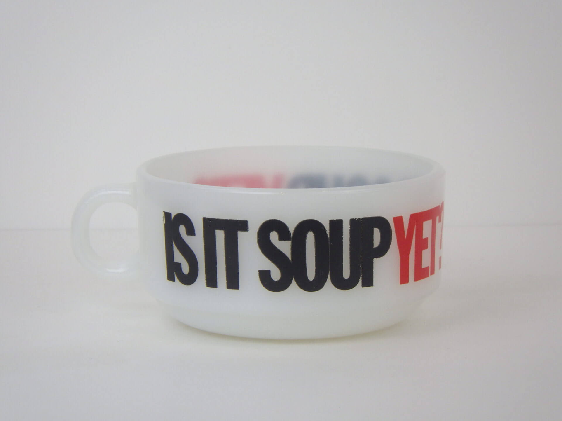 | アメリカで買い付けました。 リプトン社が販売していたインスタントスープのCMで使われていた「IS IT SOUP YET?」(スープはまだ?)というキャッチフレーズがプリントされたスープカップです。 ハンドル付きでたっぷり容量なので、ポトフやシチューなど具材の大きな料理も盛り付けられます。 サラダや惣菜などを盛り付けても使いやすいサイズなので、おすすめしています。 |