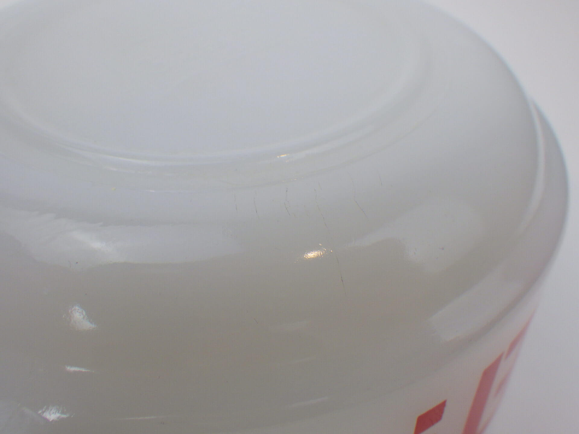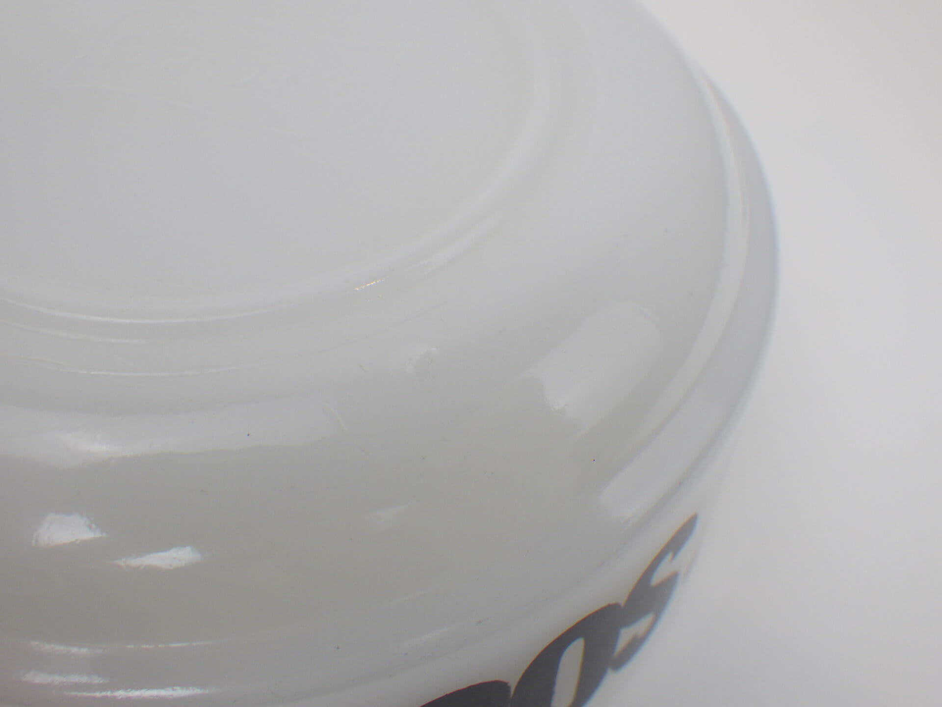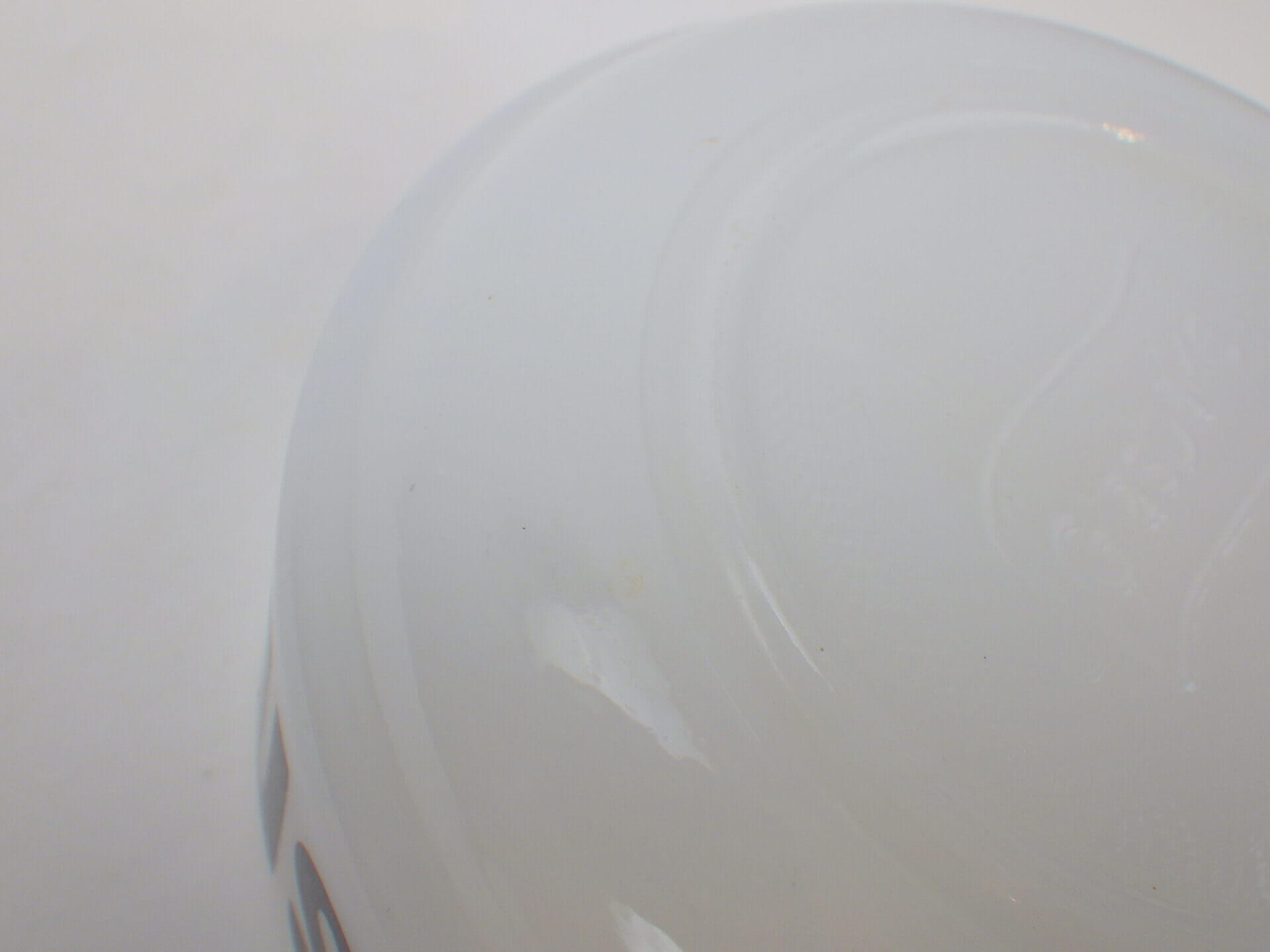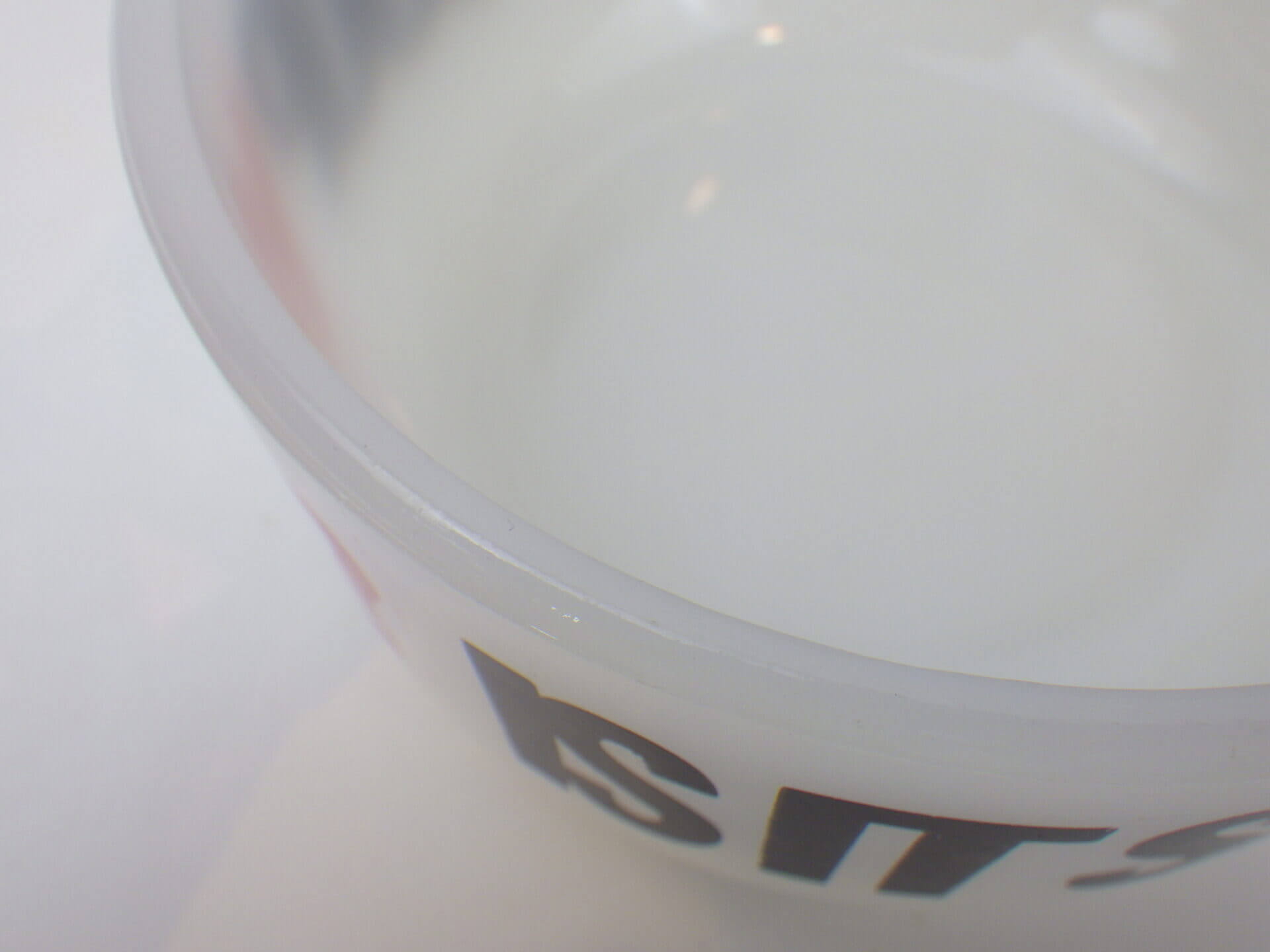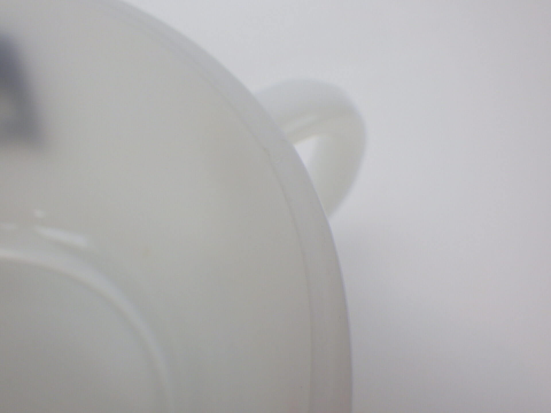 | condition | リム内側に小さなチップがあります。 リム、ボトムにわずかなスレがみられます。 ボトムにぶつかり痕がありますが、ご使用に影響はありません。 内部、ボトム、ハンドルに薄い着色があります。 製造時よりの気泡痕、劣化線、ヘアラインなどありますが、ミルクガラス特有のもので、ご使用に影響はありません。 全体的にツヤがあり、ビンテージらしい良い雰囲気です。 |