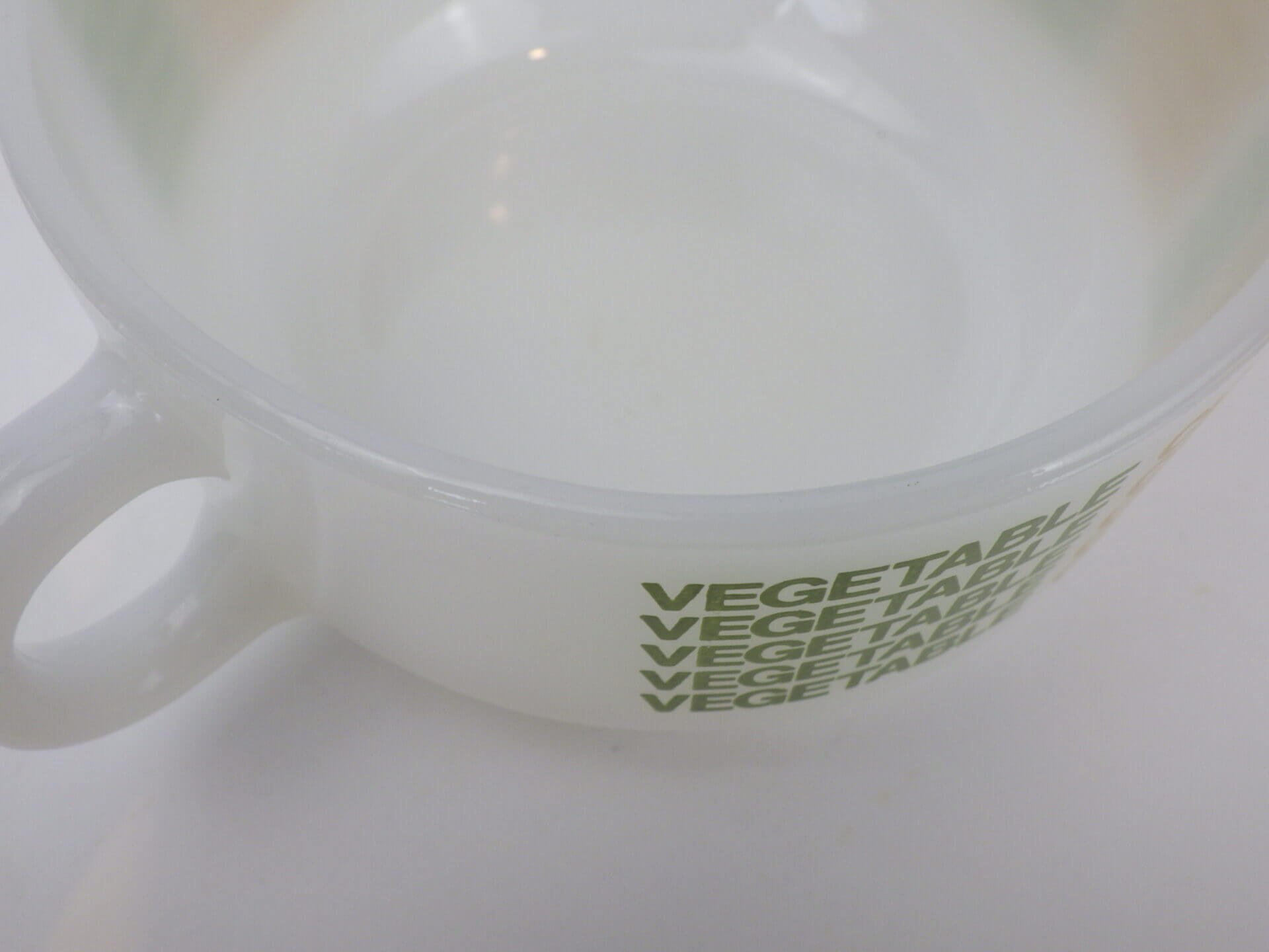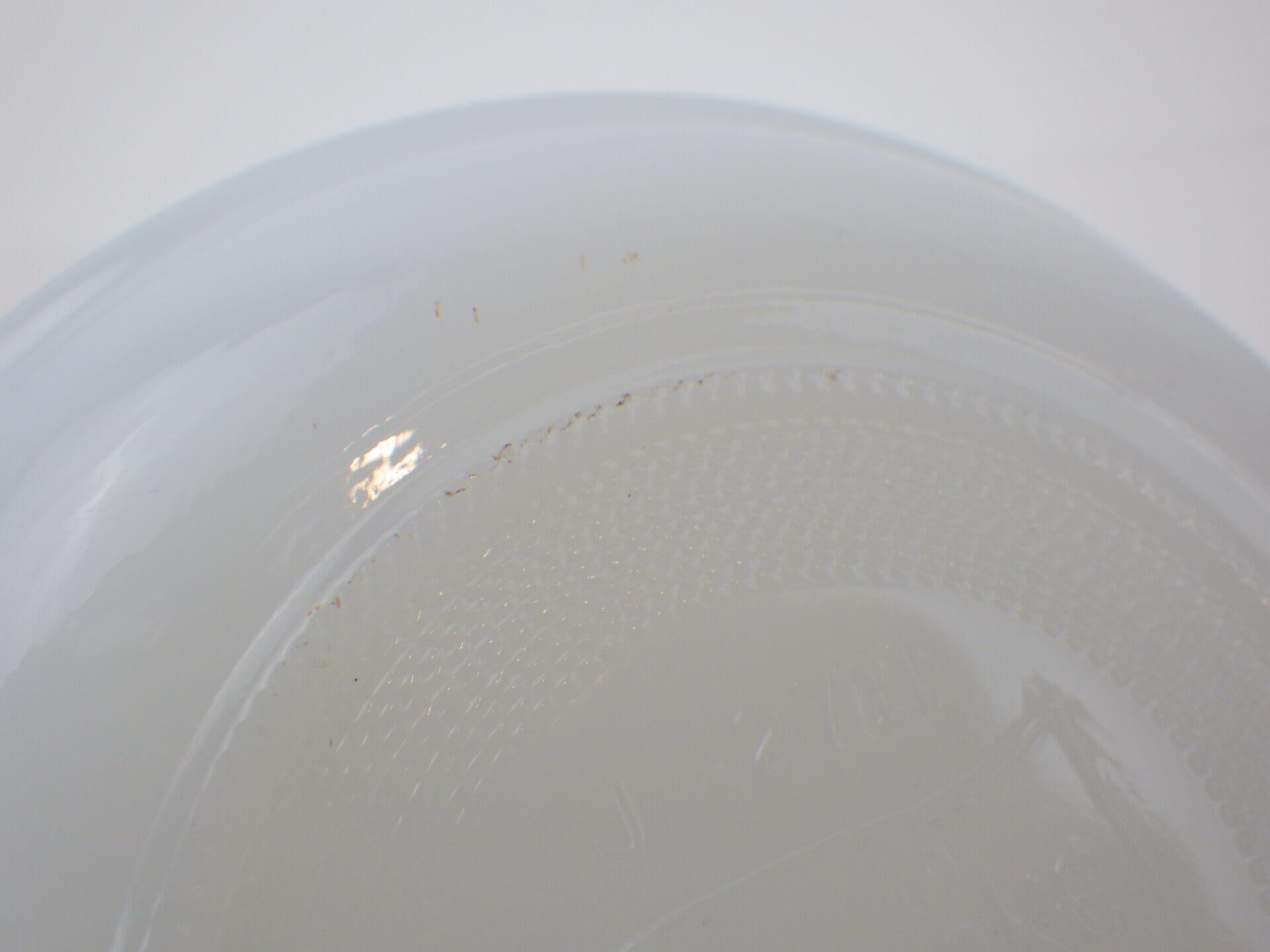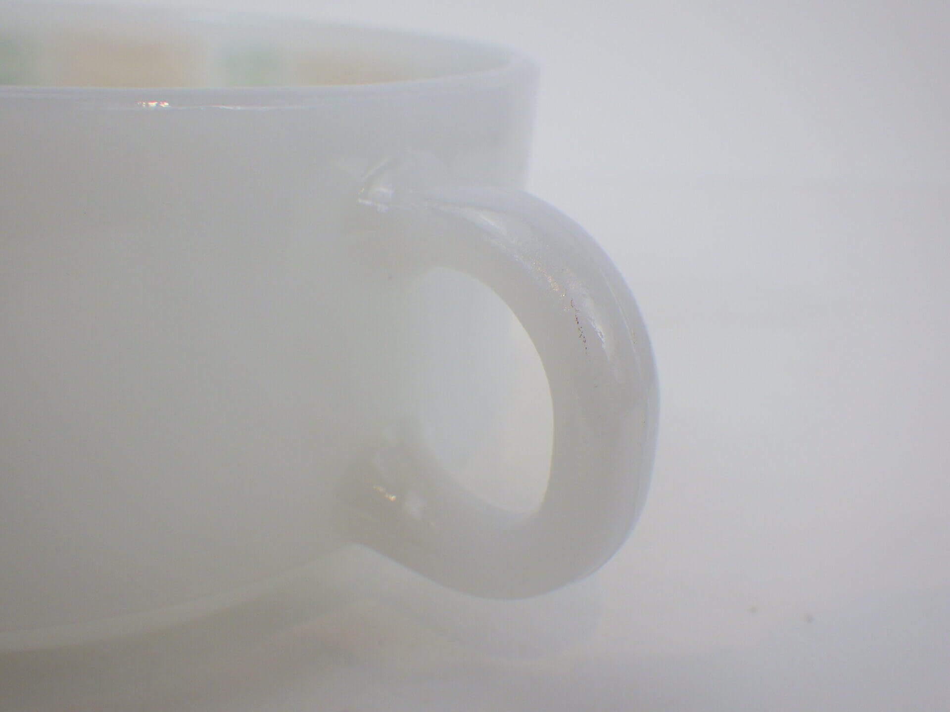 | condition | ボトム、ハンドルにわずかなインク着色があります。 製造時よりのガラスのヨレ、劣化線、ヘアラインなどありますが、ミルクガラス特有のもので、ご使用には影響ありません。 全体的にツヤがあり、綺麗な状態です。 |