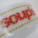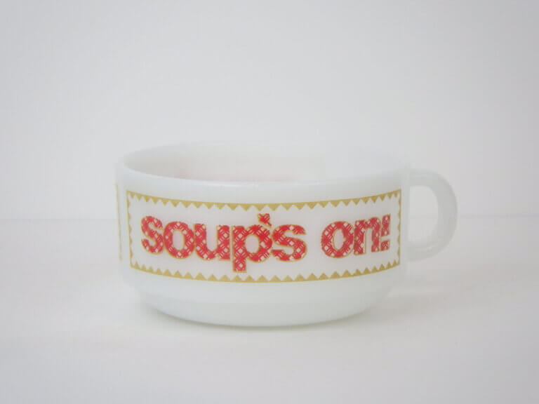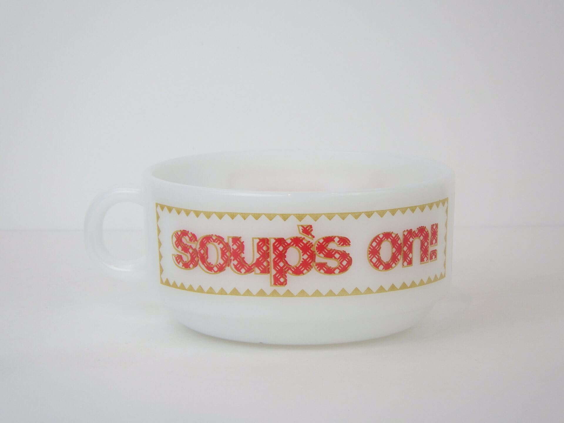| アメリカで買い付けました。 グラスベイクのスープカップです。 「Soup's on!」(スープができました!)とプリントされています。 ハンドル付きでたっぷり容量なので、ポトフやシチューなど具材の大きな料理も盛り付けられます。 サラダや惣菜などを盛り付けても使いやすいサイズなので、おすすめしています。 |