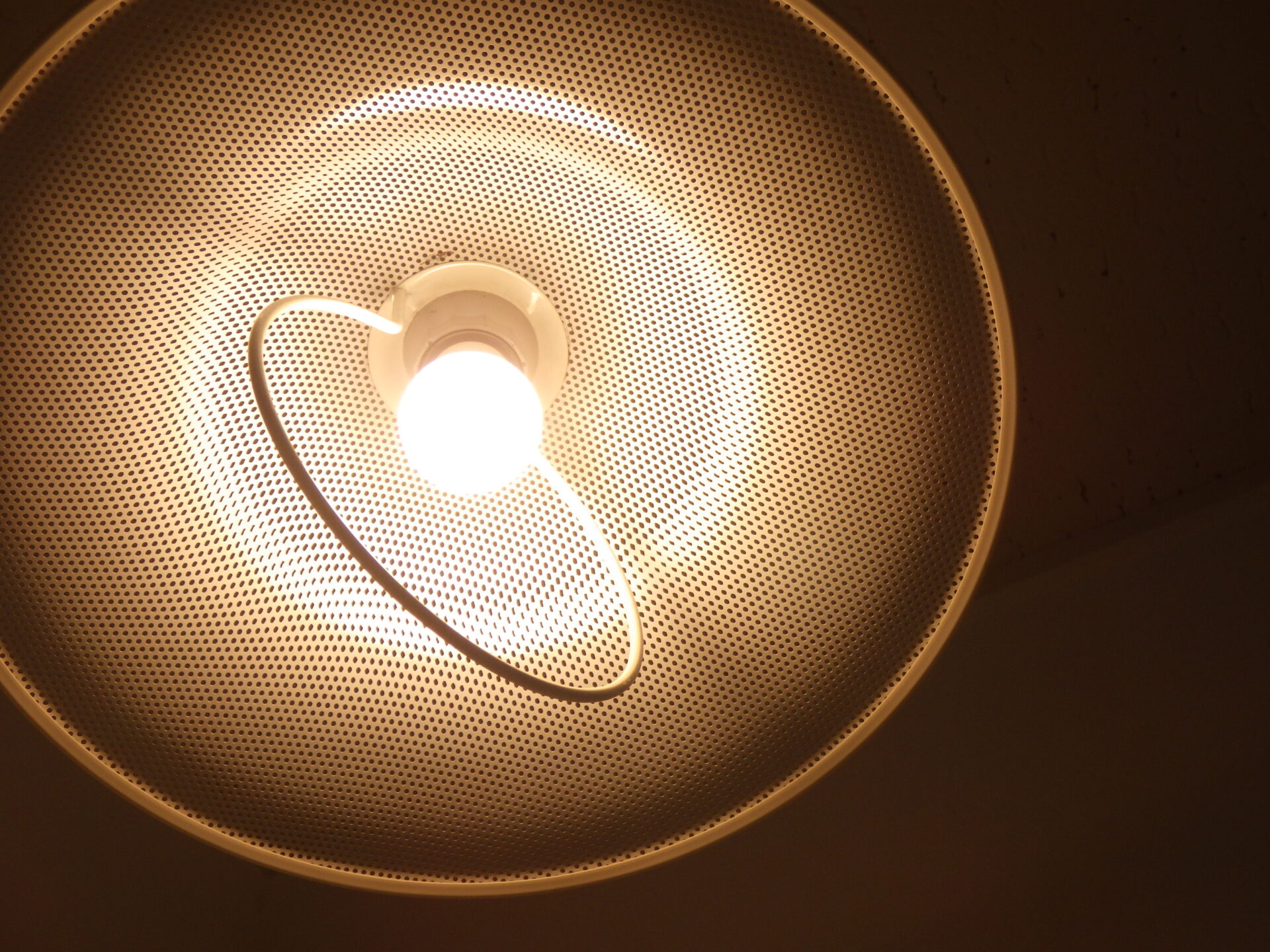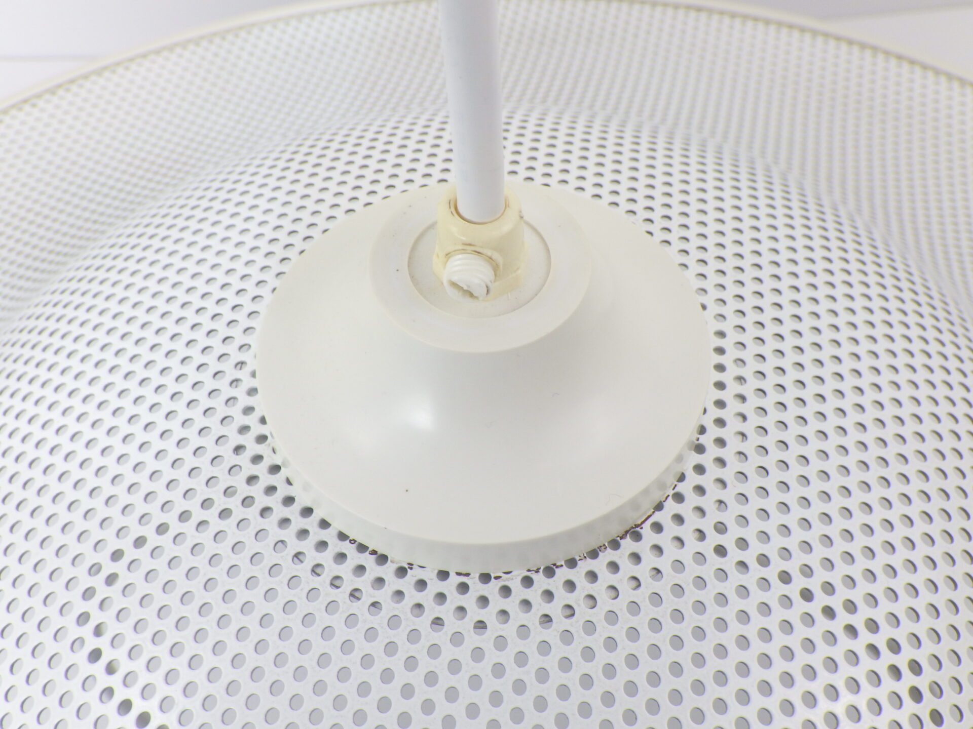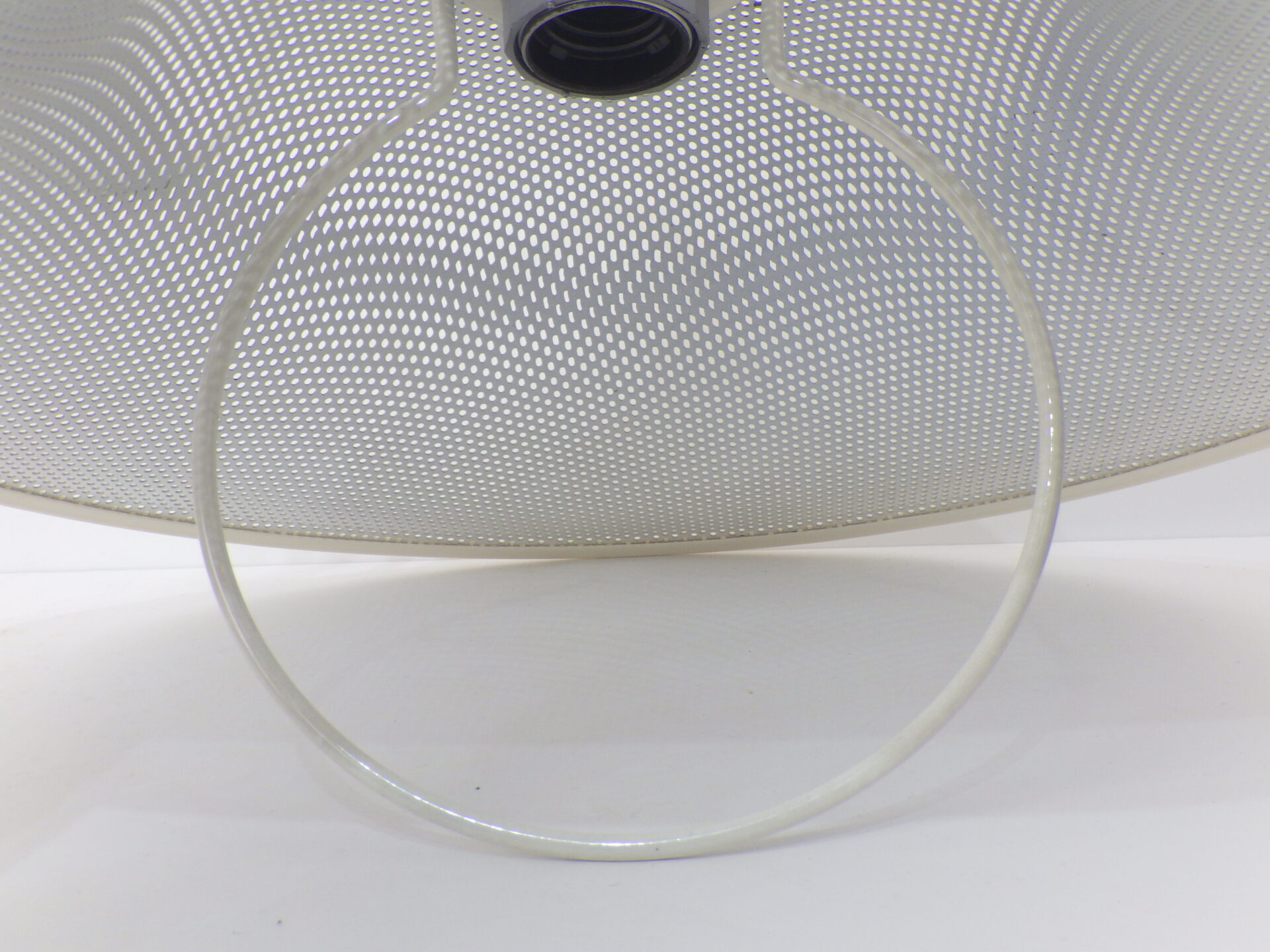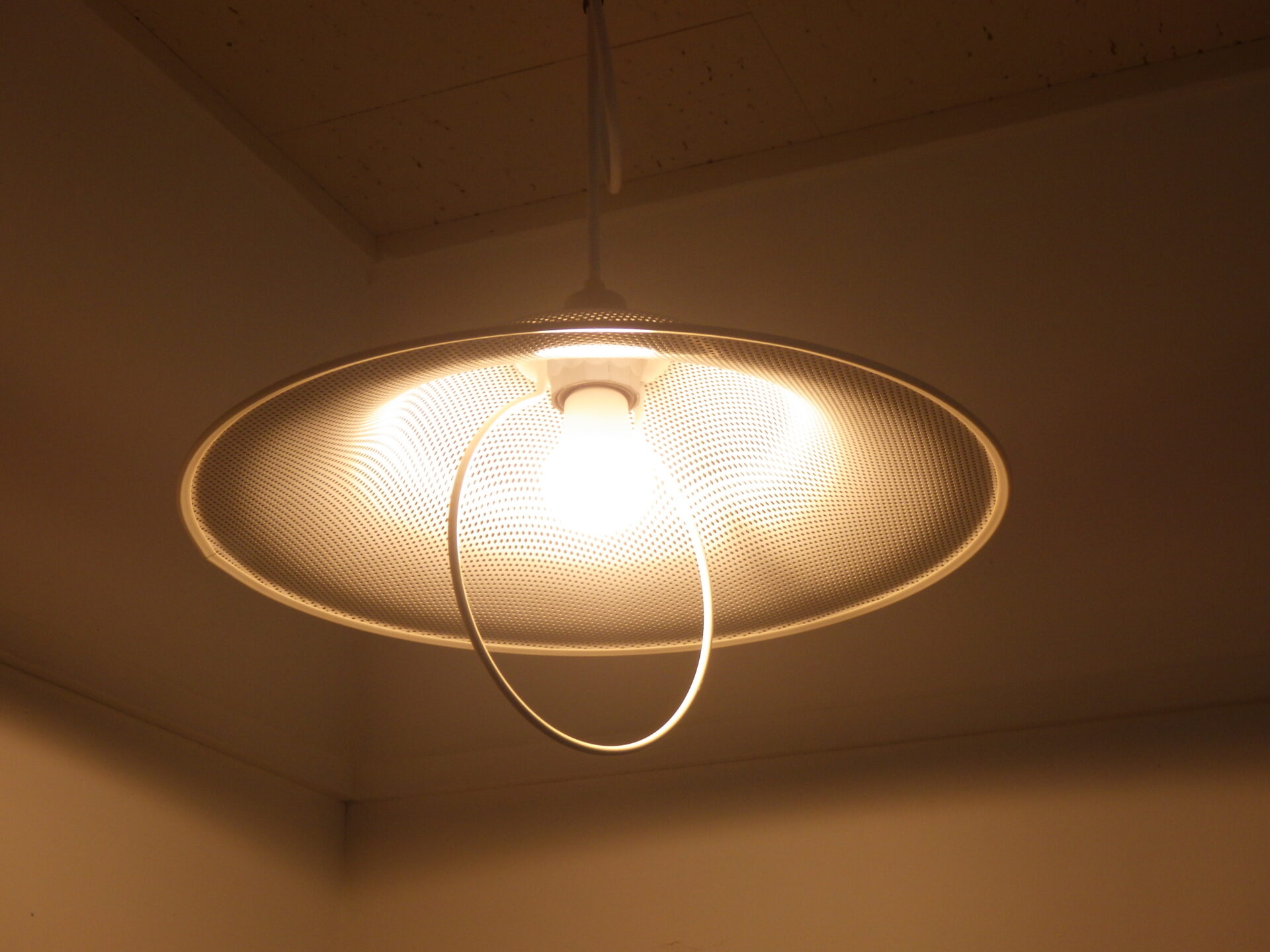 | メッシュ(パンチング)シェードと丸いハンドルが印象的な、ビンテージペンダントランプです。 元々は昇降式のため、ハンドルが付いたデザインとなっています。(コードのメンテナンスに伴い、通常のコードで作り変えています) ホワイトのシェードは灯りが綺麗に反射して広がるので、ダイニングテーブルや作業スペースなどに合わせてご使用いただくのに良さそう。 また、パンチングの穴から天井方向へも光が広がるため、この手のランプの中では明るさがしっかり保てるタイプです。 面白味のあるデザインのランプをお探しの方にもおすすめです。 |