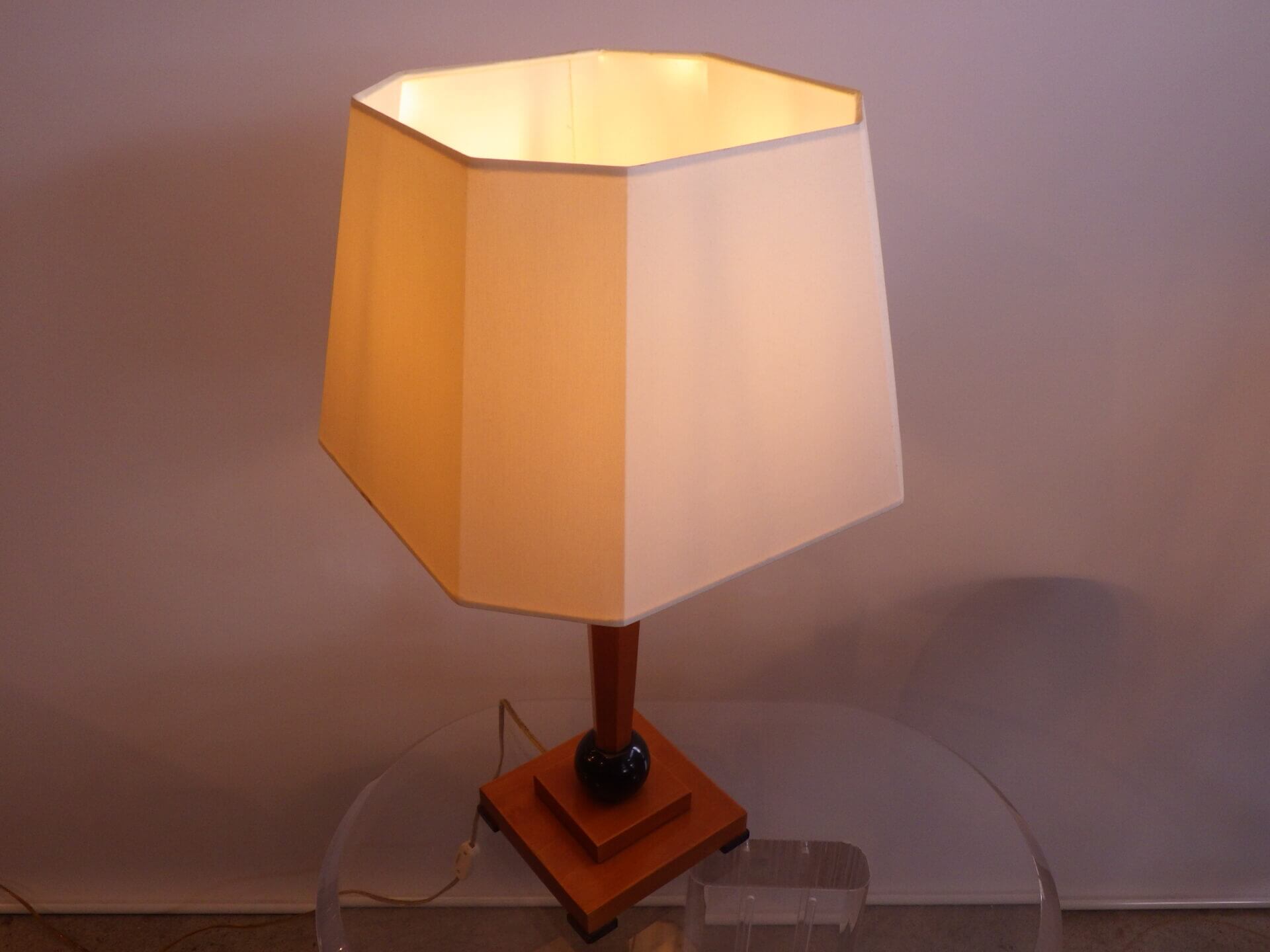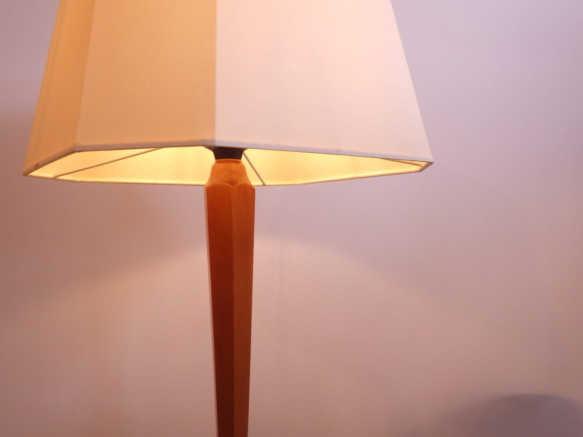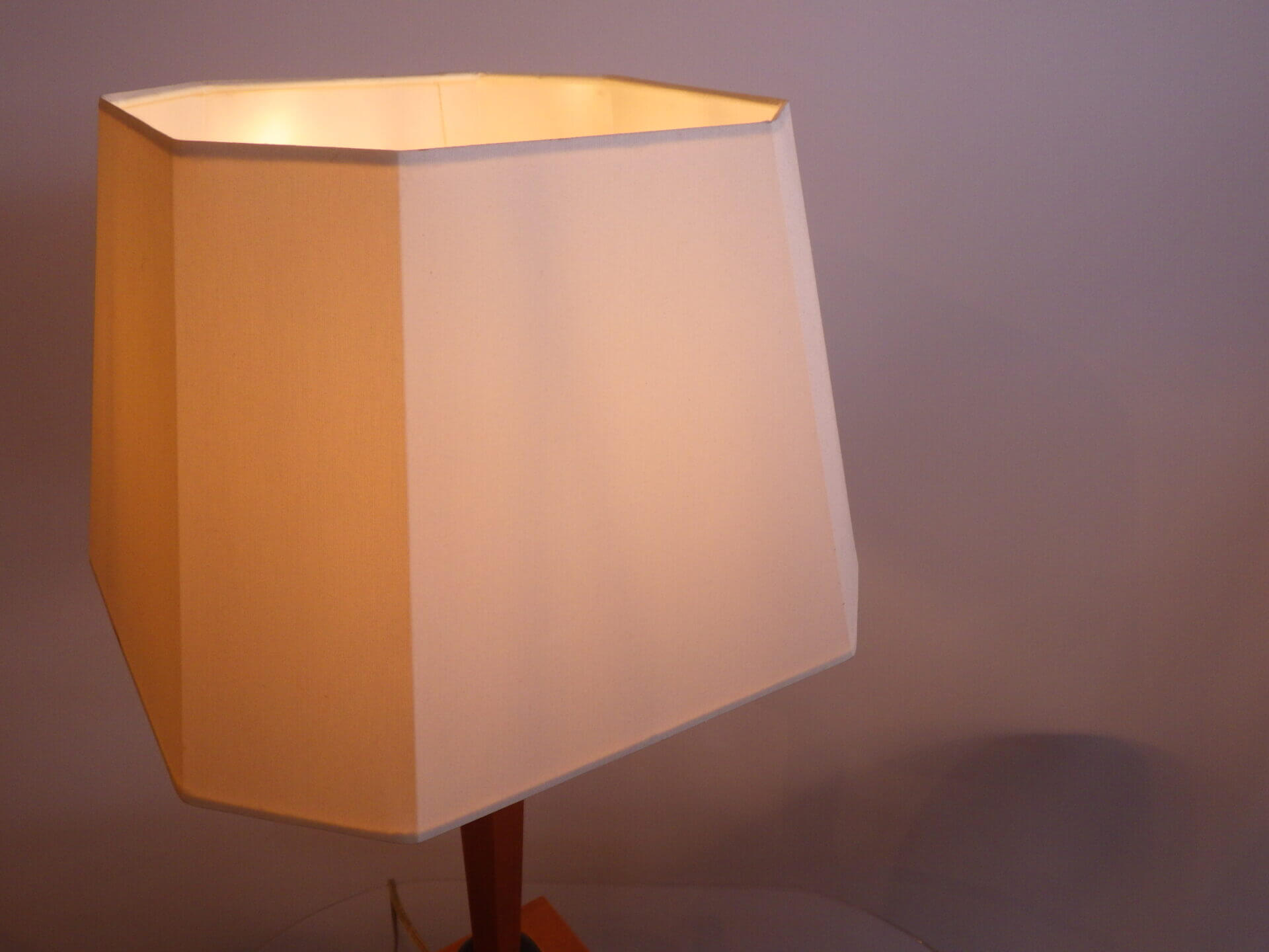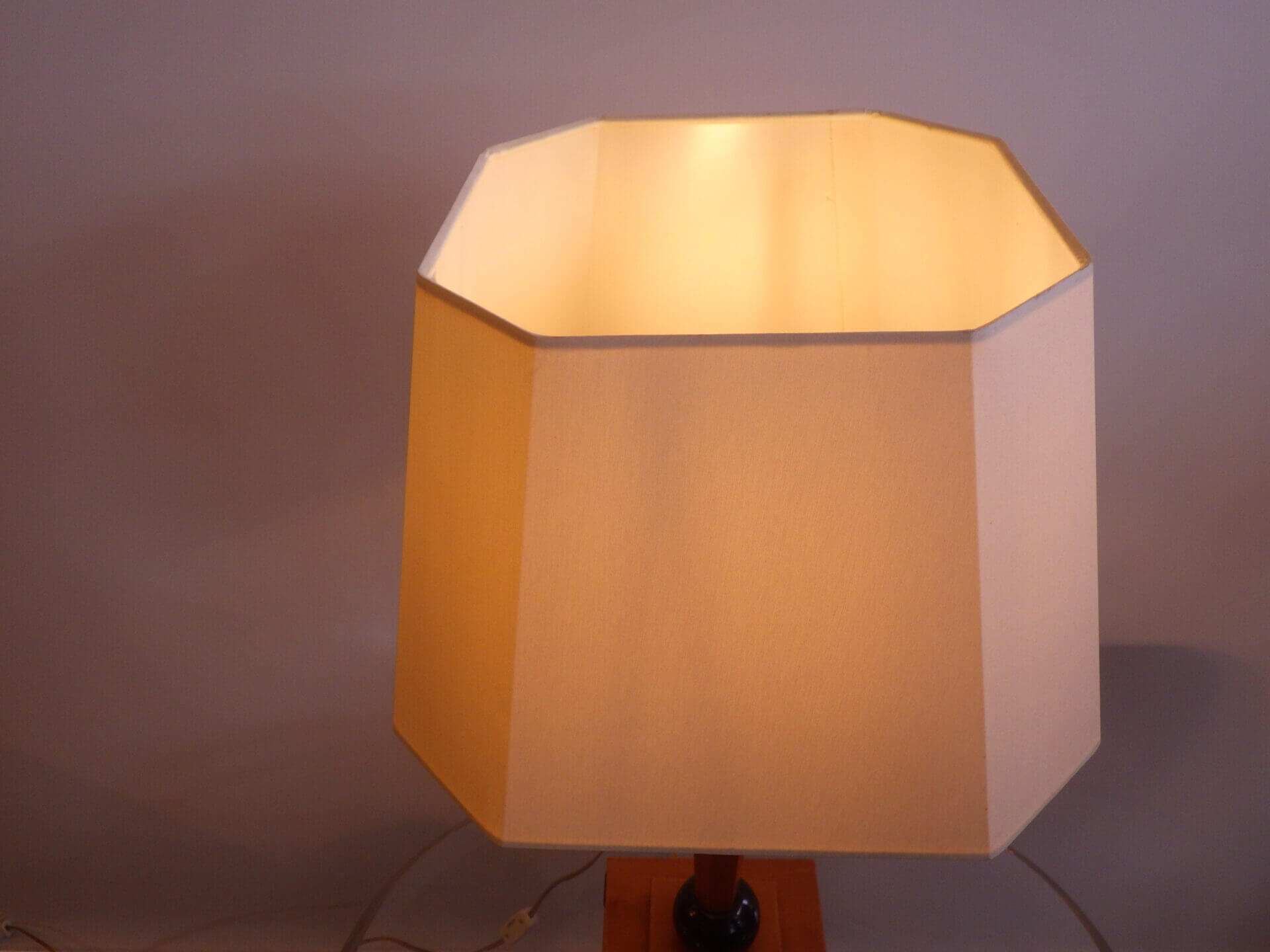 | アメリカで買い付けました。 ウッドベースのテーブルランプです。 六角形のシェードはオリジナルと思われます。 落ち着いた雰囲気なので、ミッドセンチュリーモダン、北欧スタイル、ジャパンディなど、様々な空間にマッチしそう。 サイドボードやナイトスタンドなどに置いて、柔らかな灯りをお楽しみ下さい。 コードのスイッチでON/OFFが切り替えられます。 (電球の口金サイズ:E26 LED対応) |