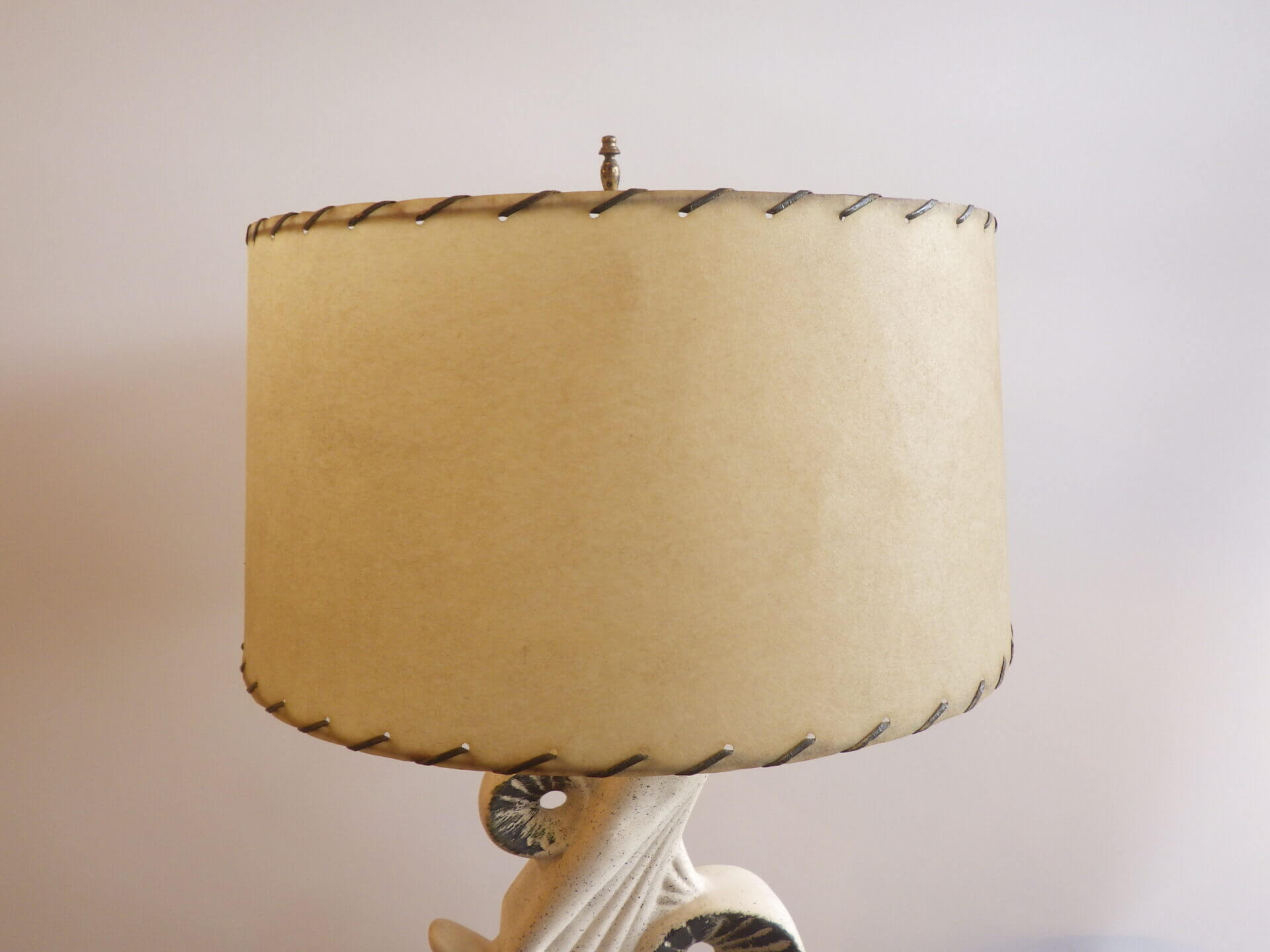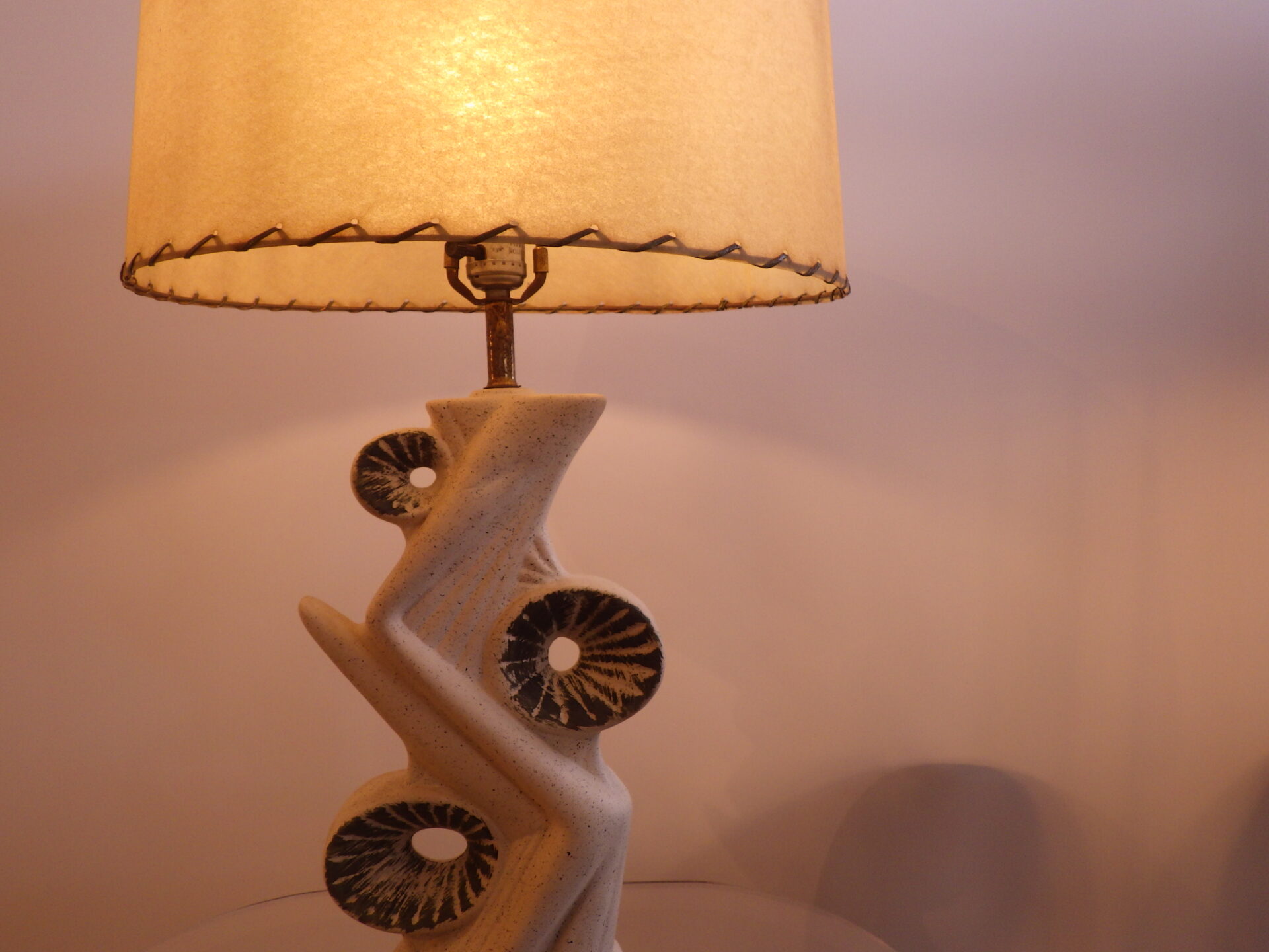 | アメリカで買い付けました。 陶器ベースのテーブルランプです。 ずっしりと重厚感のある陶器のベースが、まさにミッドセンチュリーらしい大人な雰囲気で、空間を上質なものに変えてくれそう。 ナイトスタンドやサイドテーブルなどに置いて、柔らかく温かな光の演出をお楽しみいただけるランプです。 ソケット部分のスイッチでON/OFFが切り替えられます。 (電球の口金サイズ:E26 LED対応) |