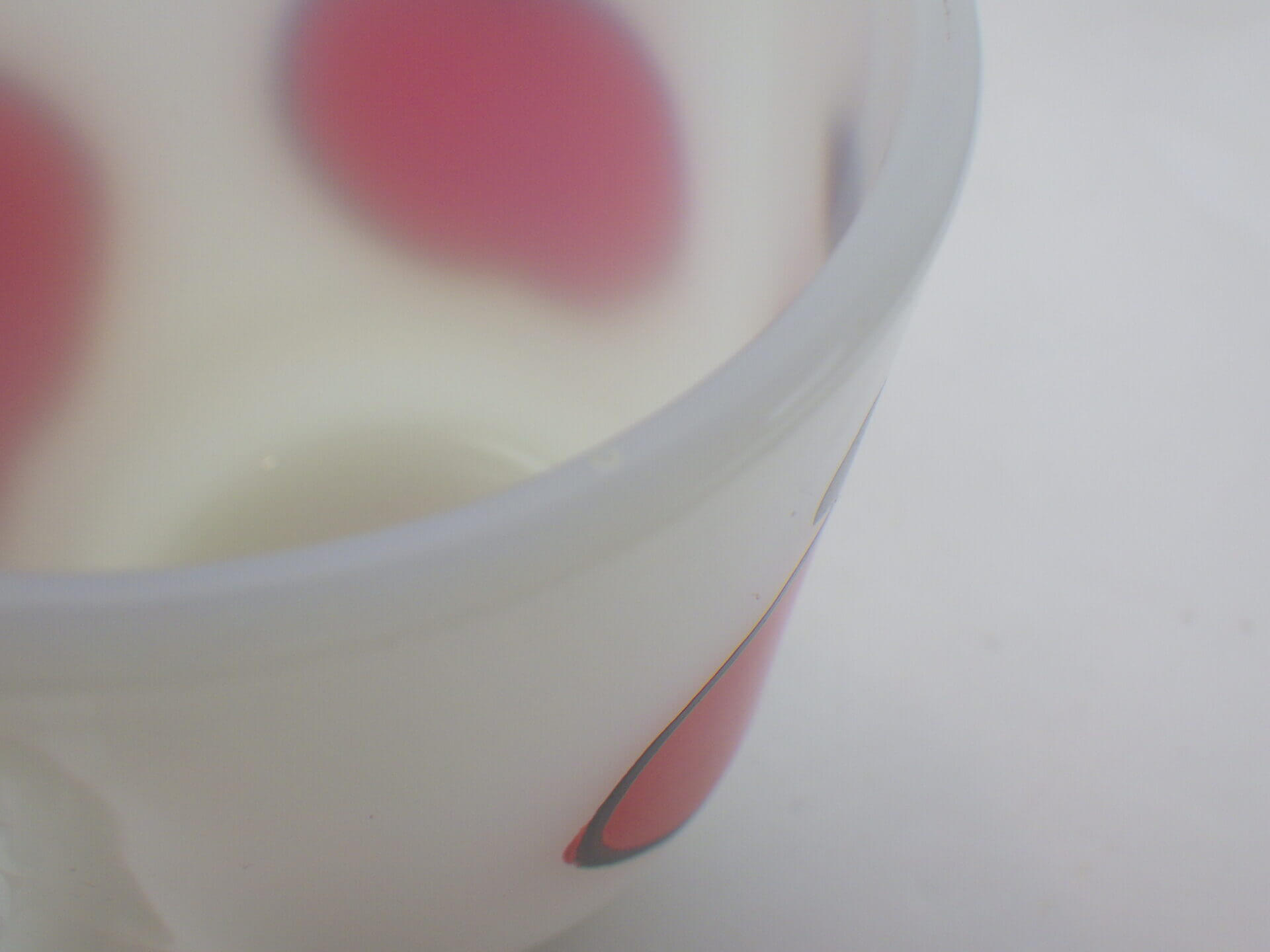 | condition | リム、ボトムにわずかな着色、金属痕がみられます。 製造時よりの劣化線、ヘアライン、練りジワなどみられますが、ミルクガラス特有のもので、ご使用には影響ありません。 その他ワレ、カケなく、ツヤもあり綺麗な状態です。 |