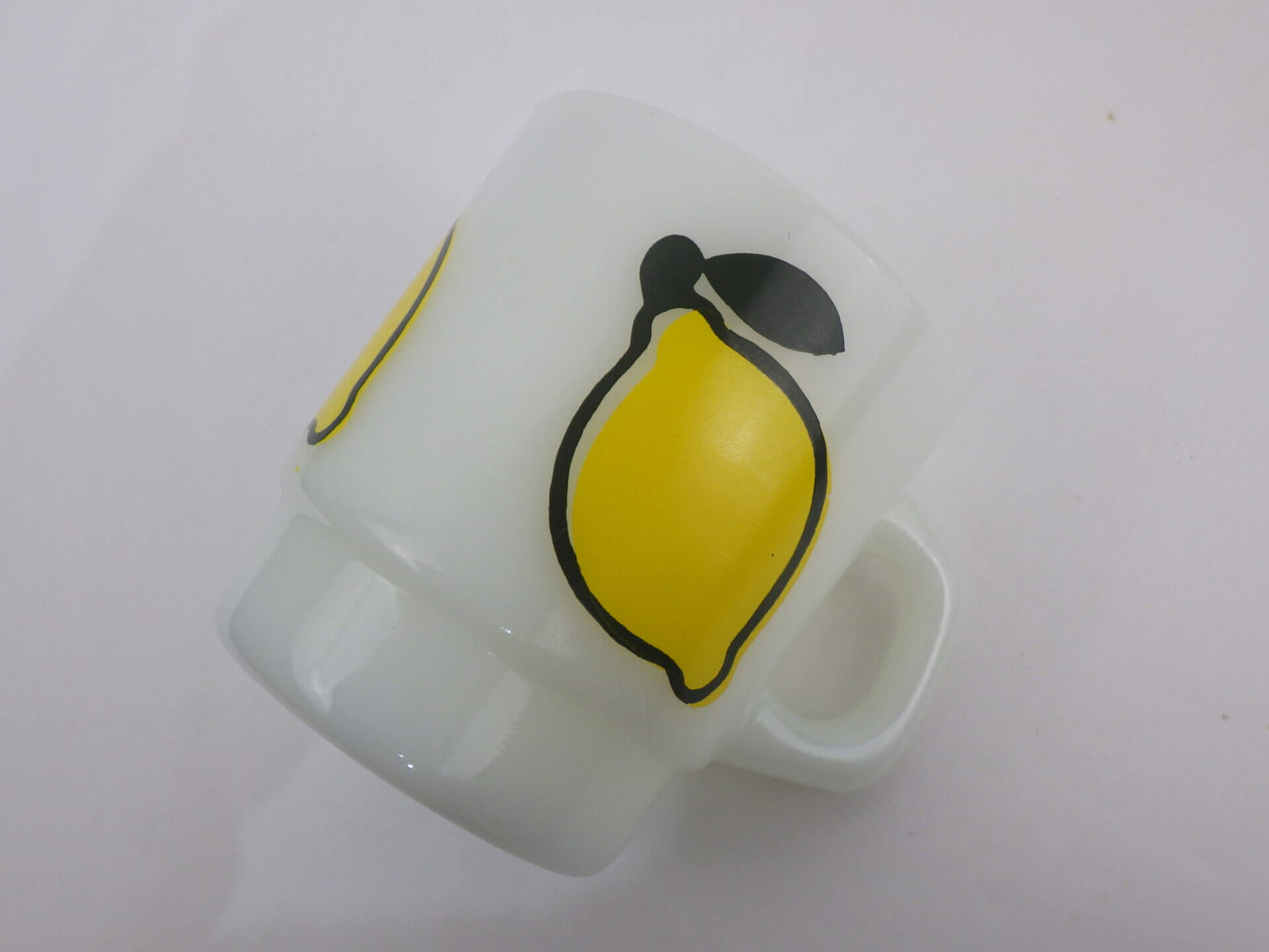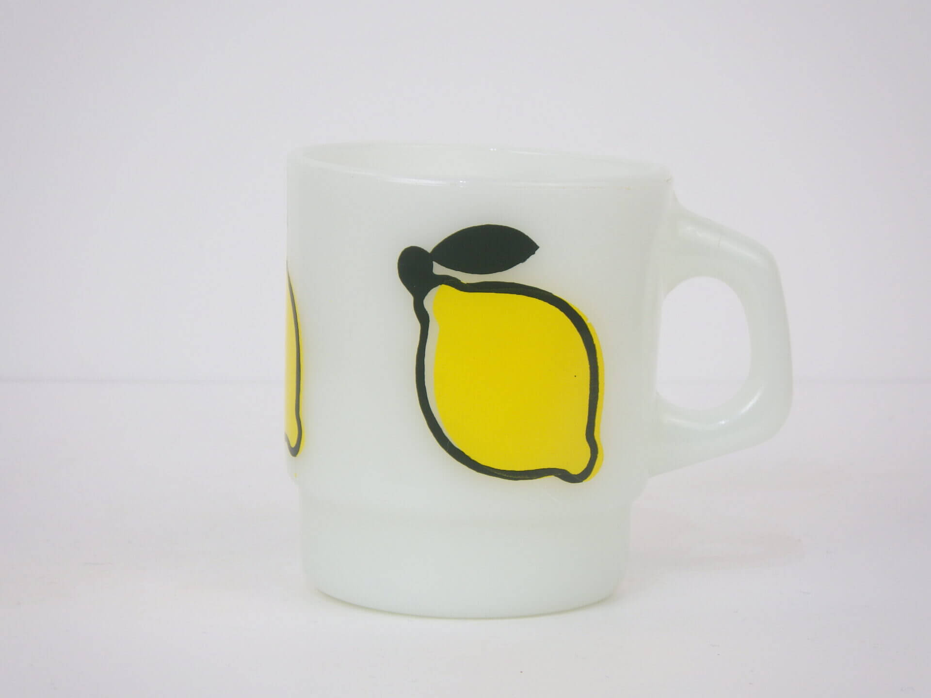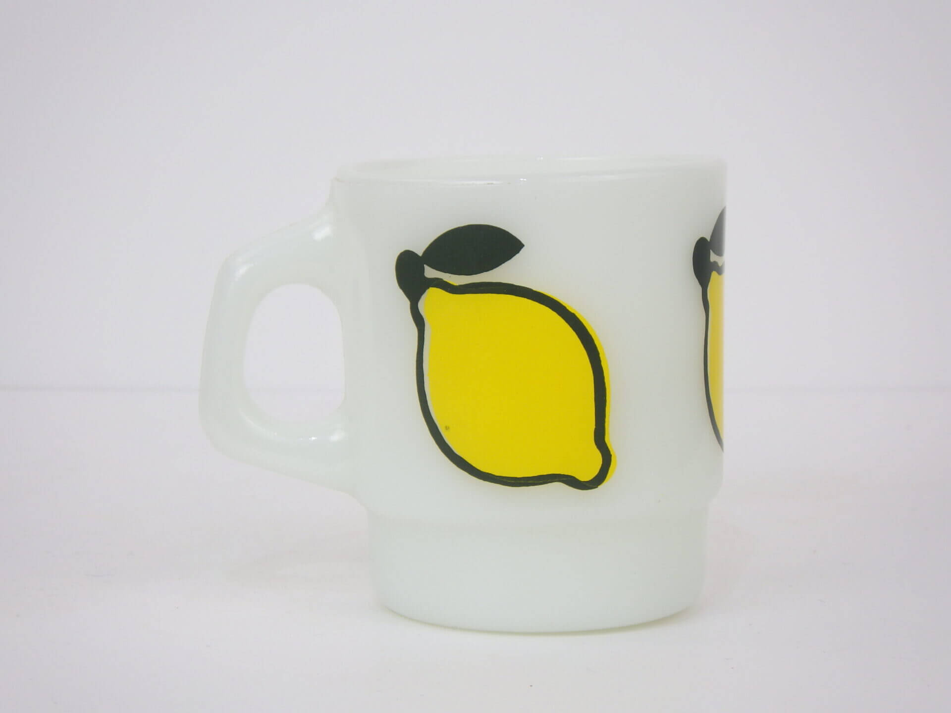 | アメリカで買い付けました。 ファイヤーキングのモチーフマグの中でも定番人気の「スーパーフルーツ」シリーズのレモンマグです。 全四種類存在します。(アップル、レモン、オレンジ、ペアー) 四つ並べて飾りたくなる可愛さです。 是非揃えてみて下さい。 |