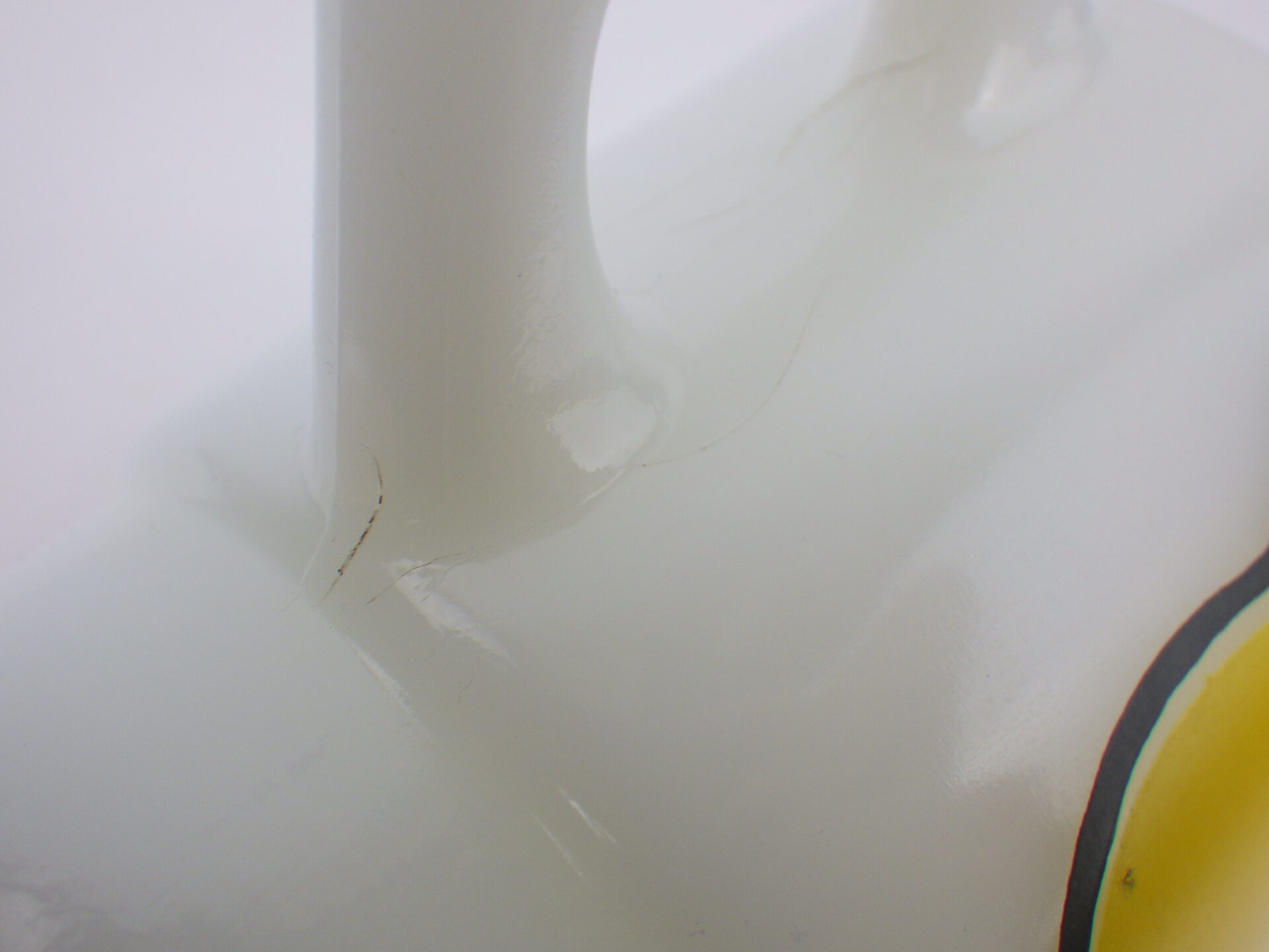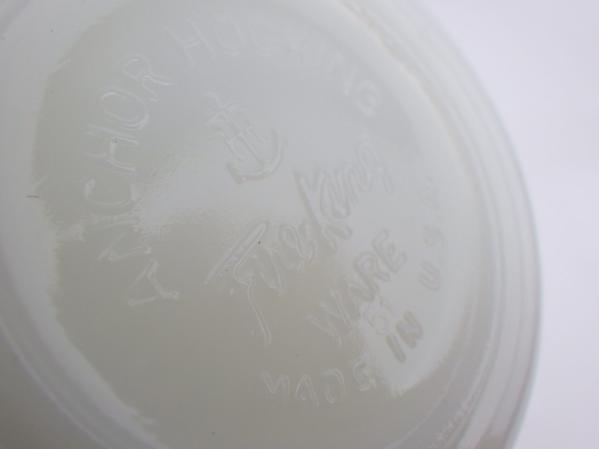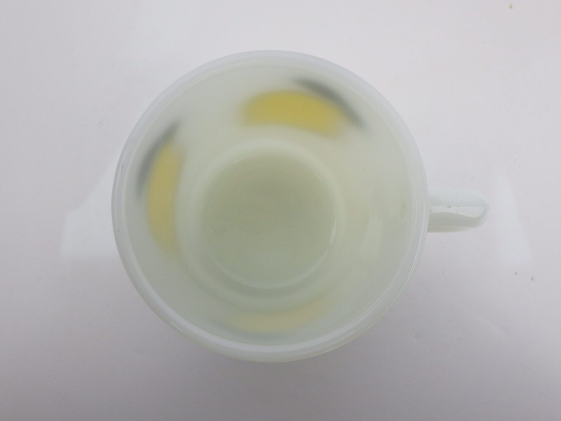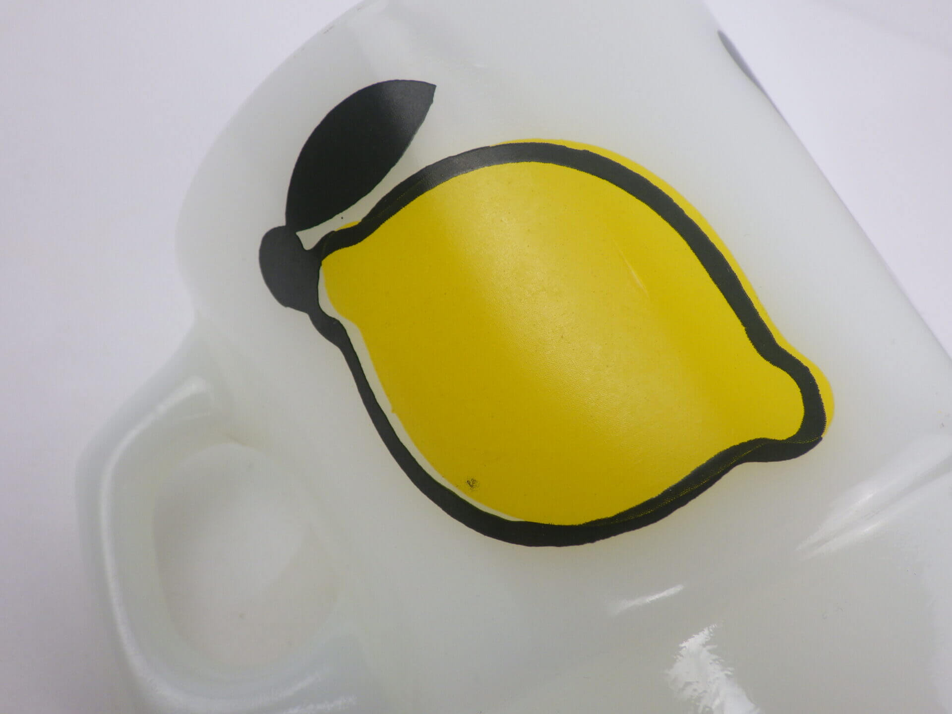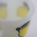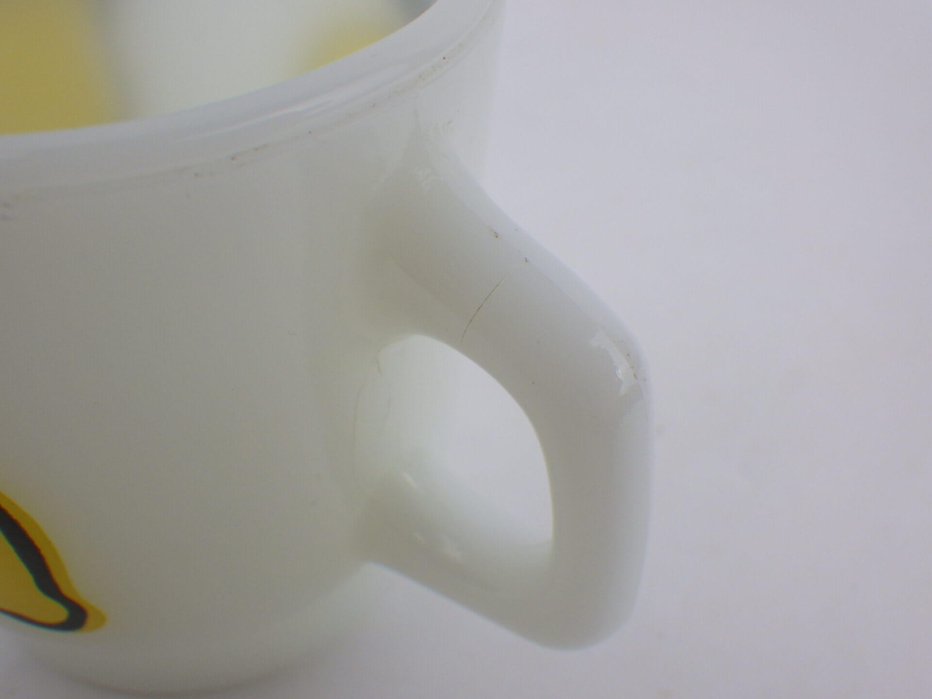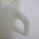 | condition | リムに製造時よりのわずかなフリーバイト(がたつき)があります。 リム、ボトムにわずかな着色があります。 ハンドル付近に複数劣化線がみられます。 その他製造時よりのヘアライン、練りジワ、劣化線などみられますが、ミルクガラス特有のもので、ご使用には影響ありません。 |