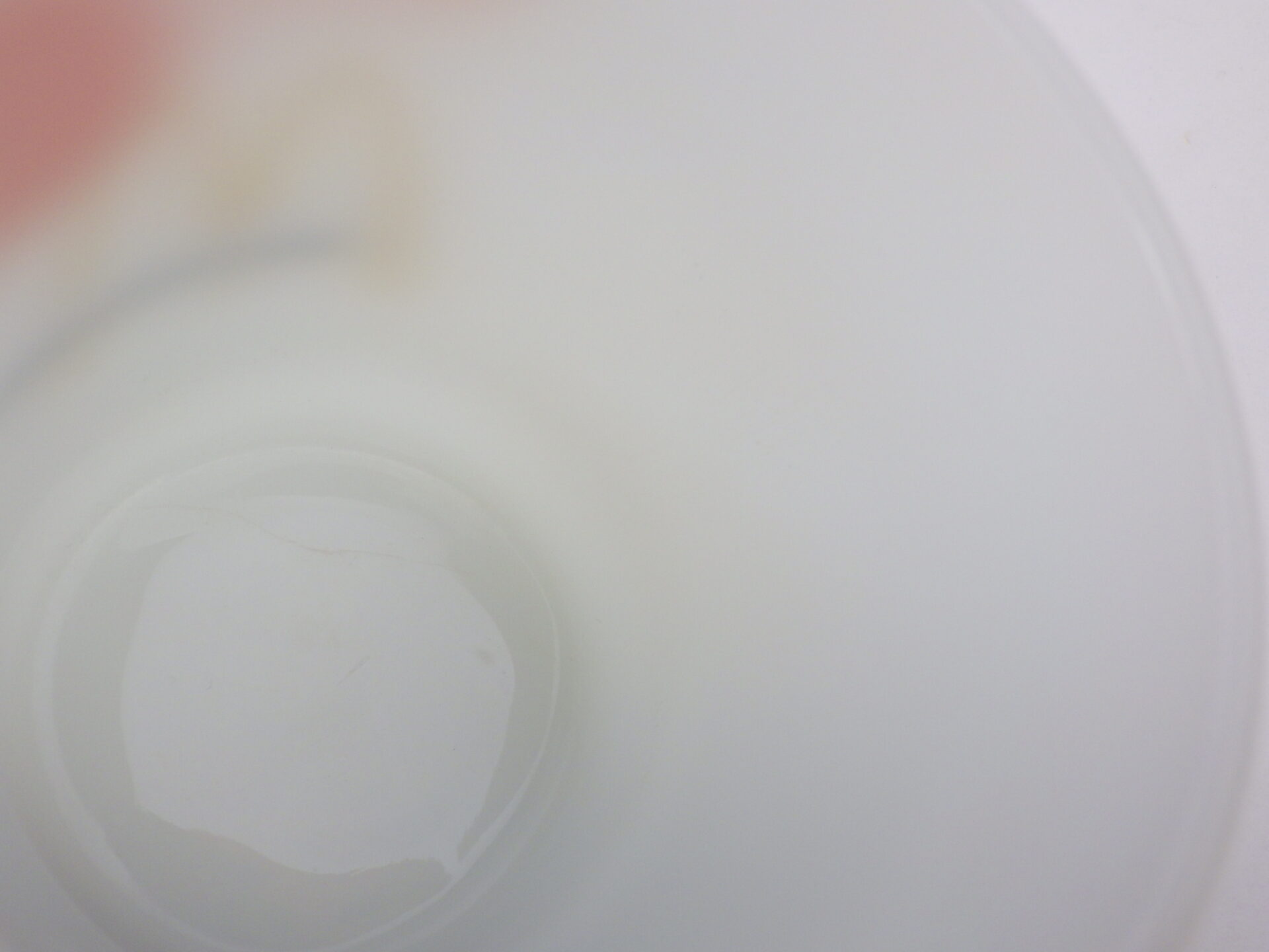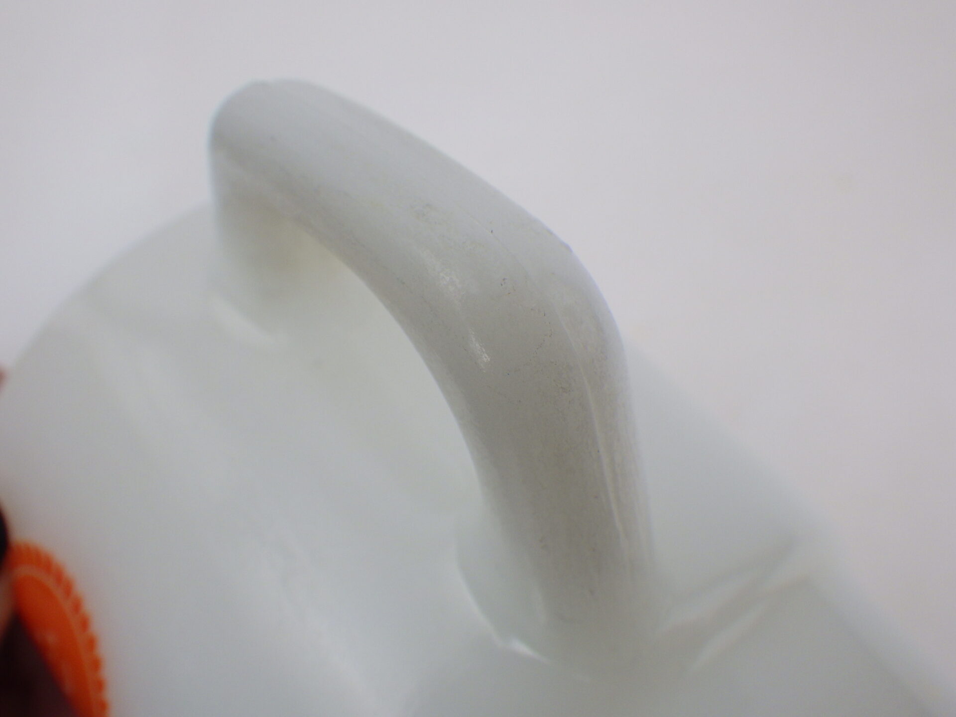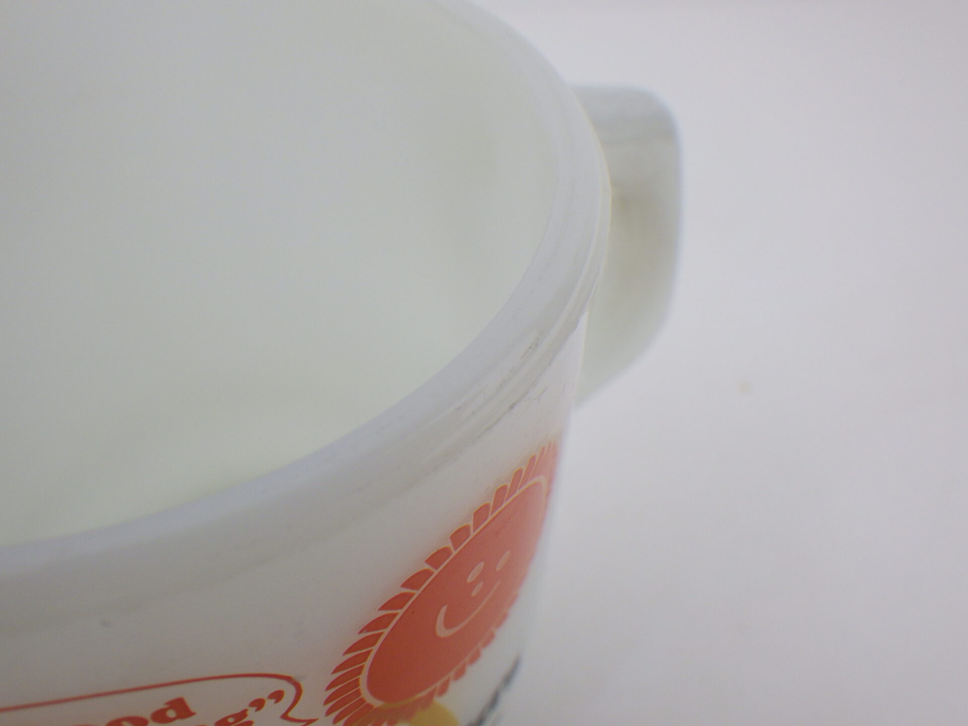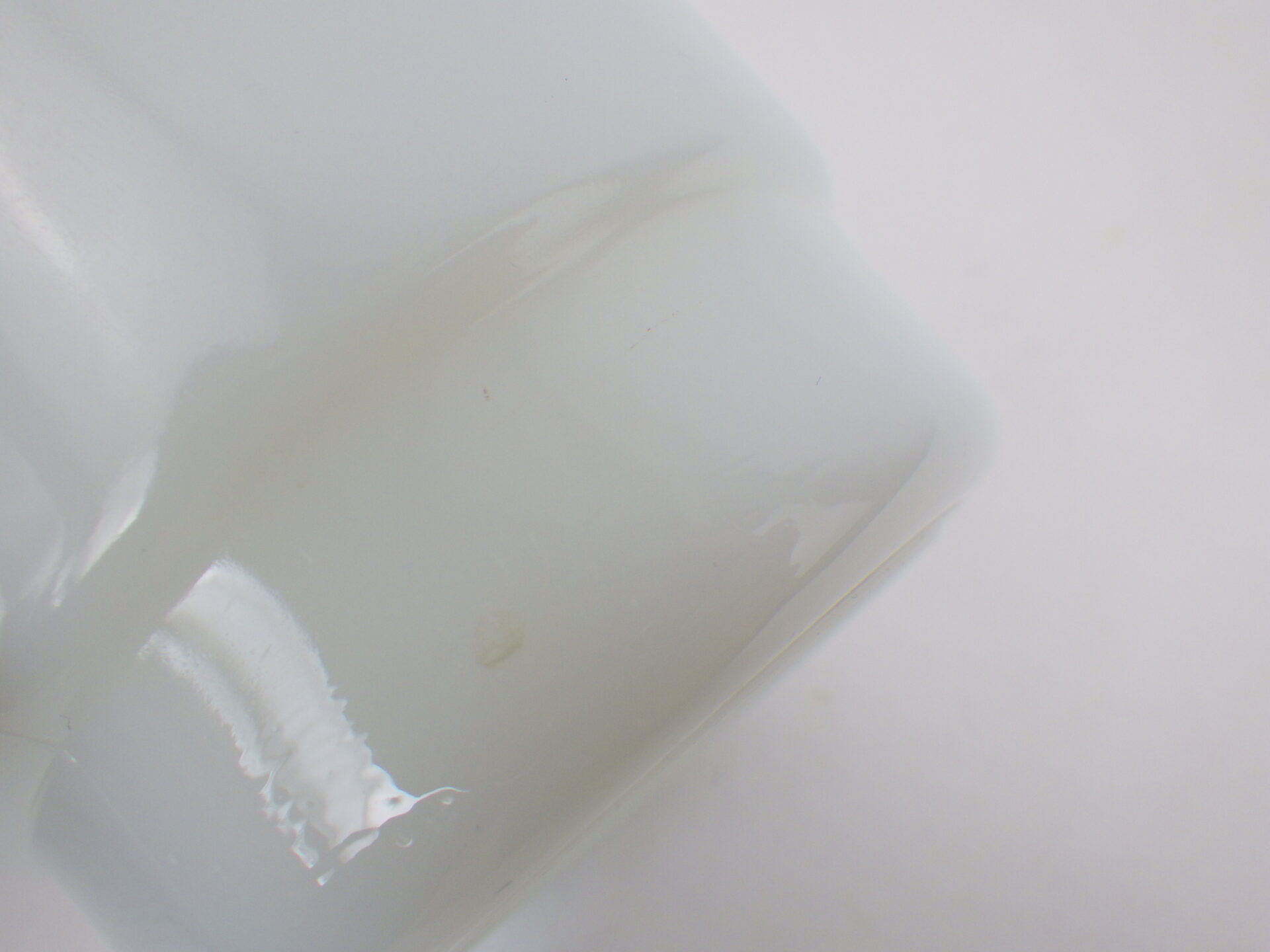 | condition | リム付近、ボトム、ハンドル、側面に薄い着色、金属痕があります。 側面に製造時よりのヘアライン、劣化線、凹凸がありますが、ミルクガラス特有のもので、ご使用に影響はありません。 その他ワレ、カケなどはなく、ビンテージらしい良い雰囲気です。 |