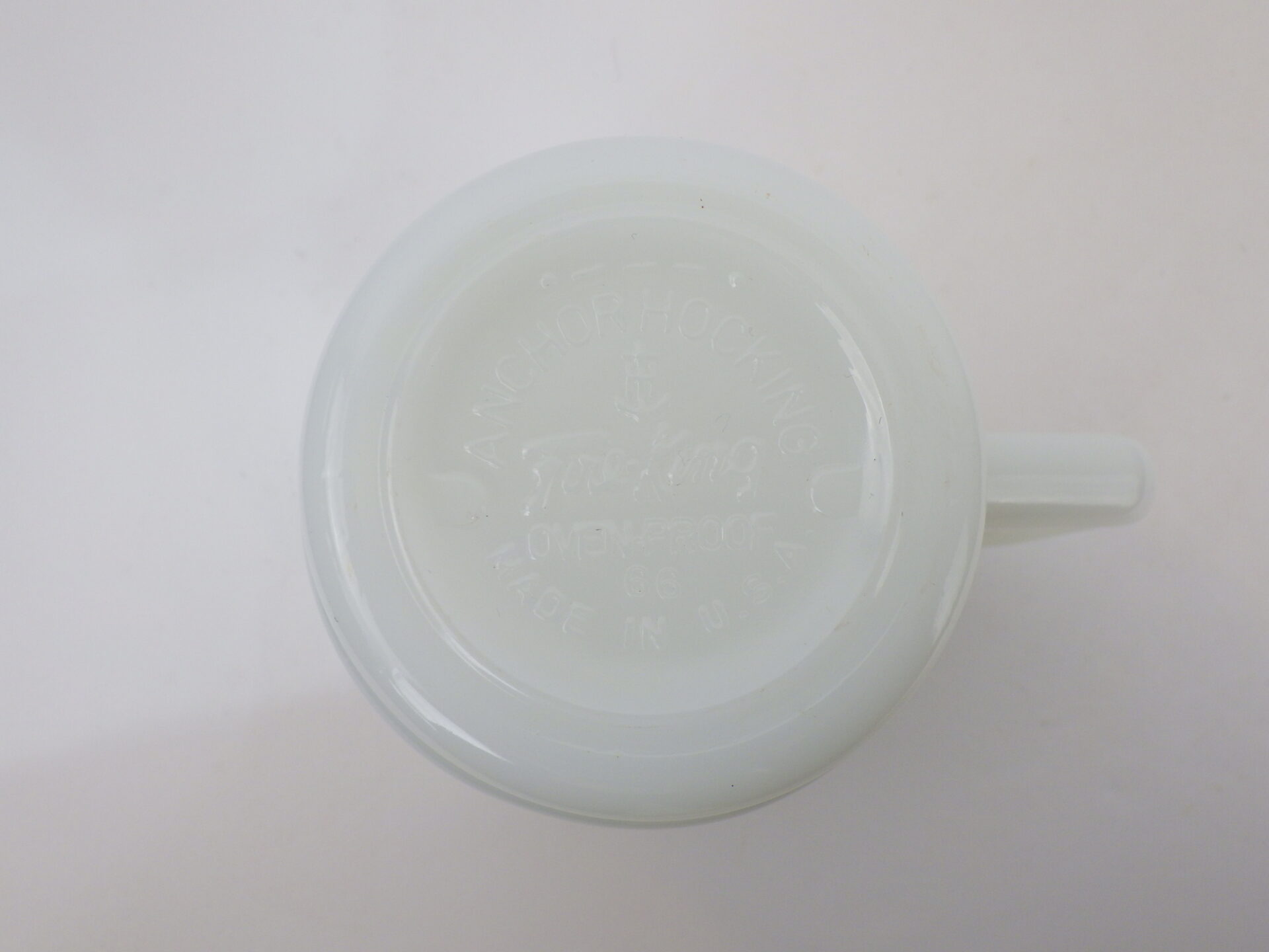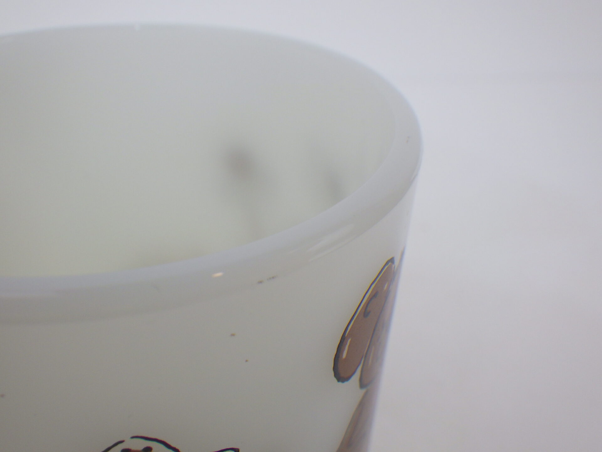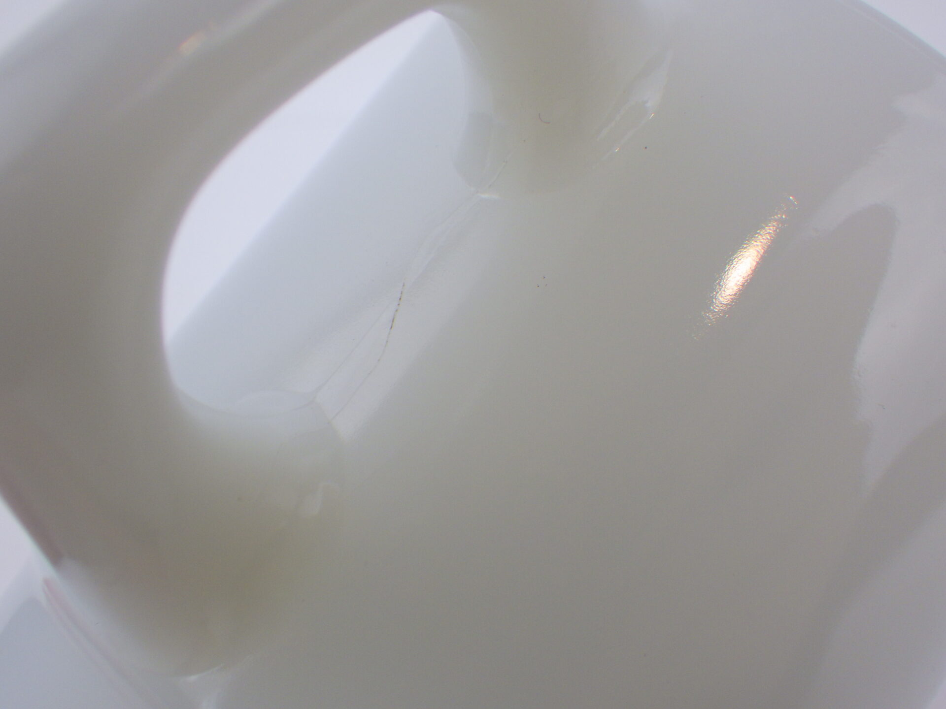 | condition | ハンドル、ボトム、内部にわずかな着色があります。 ハンドル付近に製造時よりの劣化線があります。 その他、製造時よりのヘアライン、劣化線、凹凸などありますが、ミルクガラス特有のものです。 |