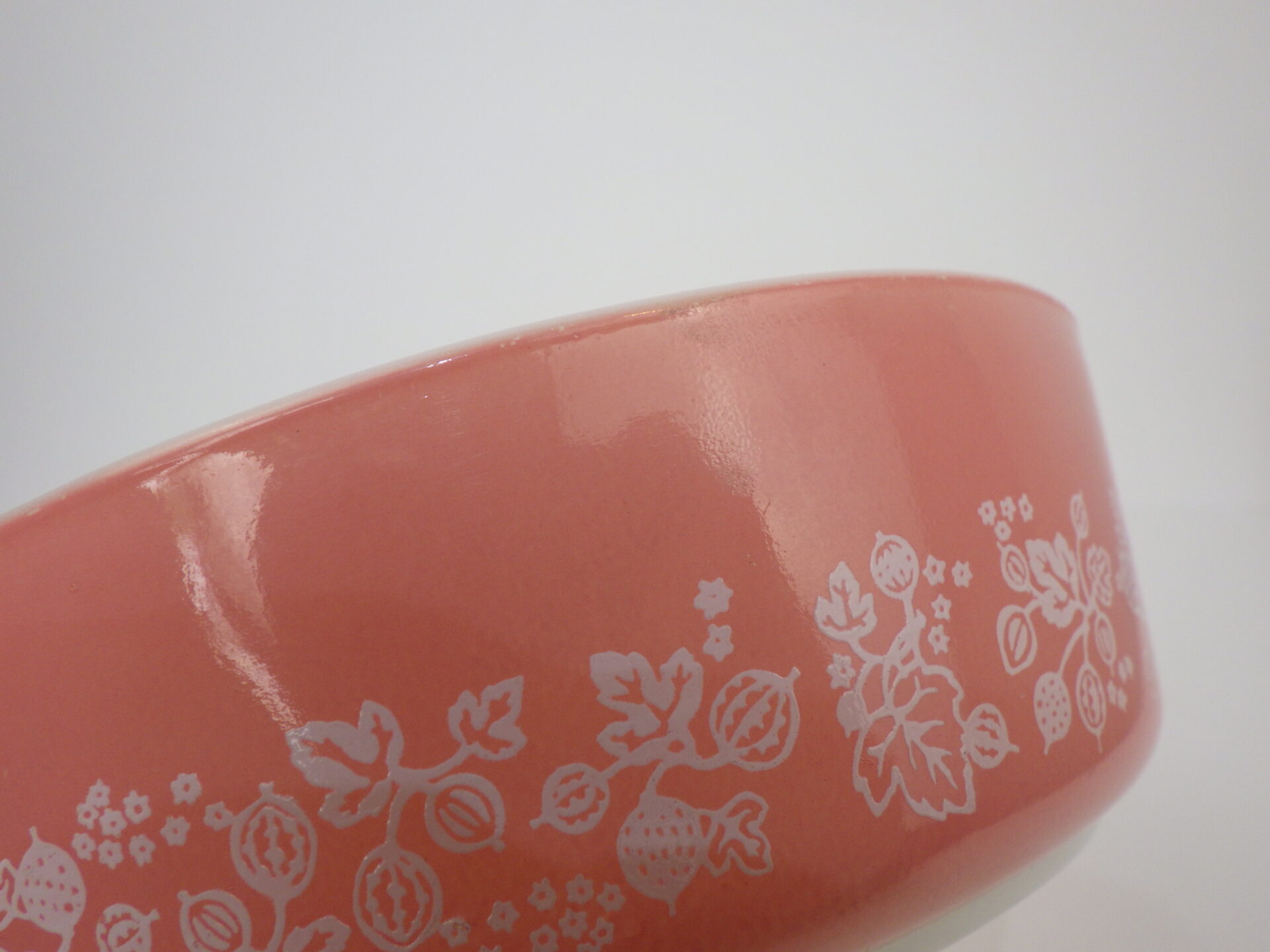 | アメリカで買い付けました。 オールドパイレックスのグーズベリー、キャセロールです。 正式名称は「シンデレラベイクサーブ&ストア」と言い、オーブン料理をそのまま食卓へ並べられる、便利でおしゃれなアイテムです。 グーズベリーは50年代を代表するシリーズで、ユキノシタ科『スグリ』という果実がモチーフになっています。 |