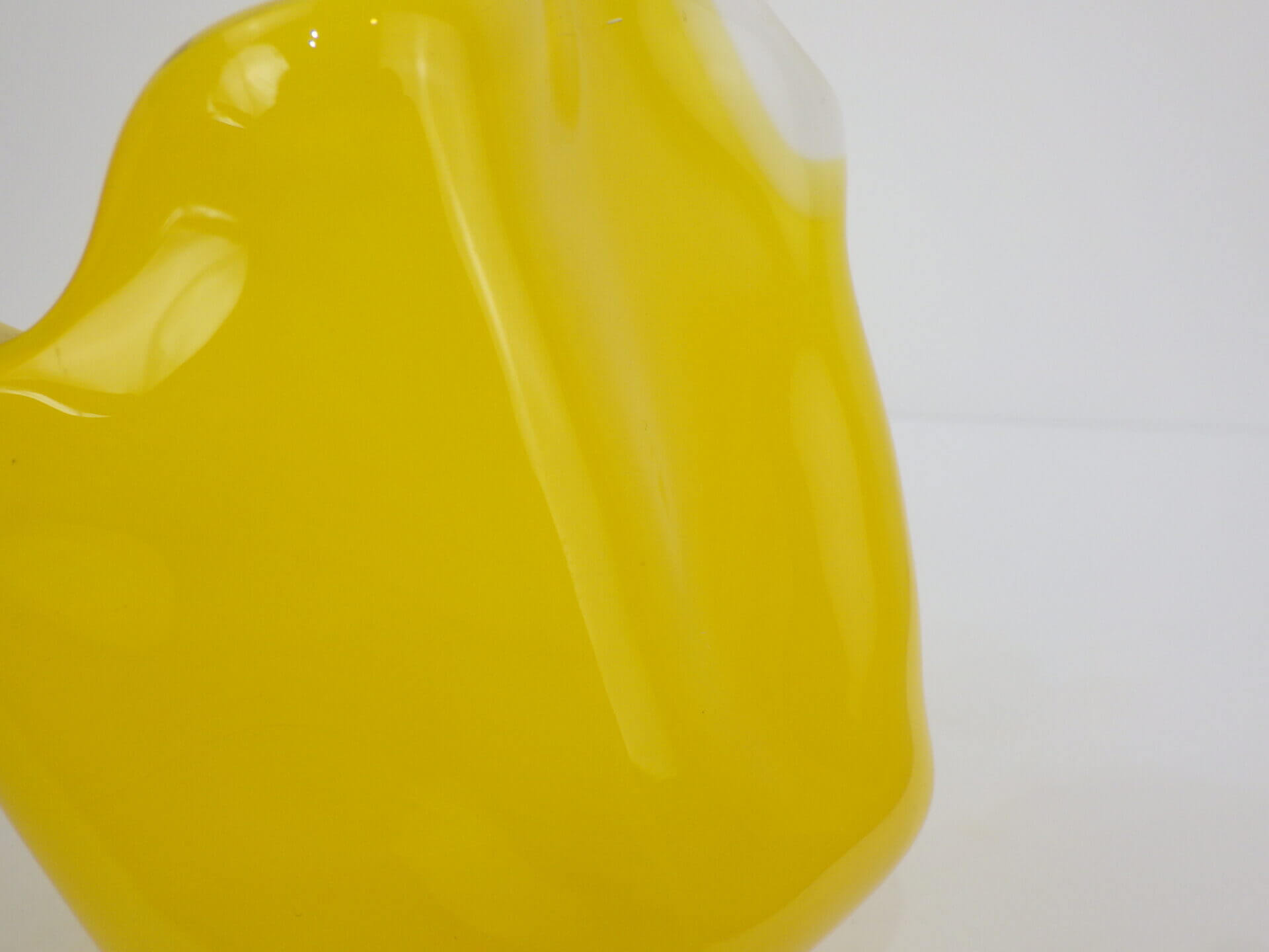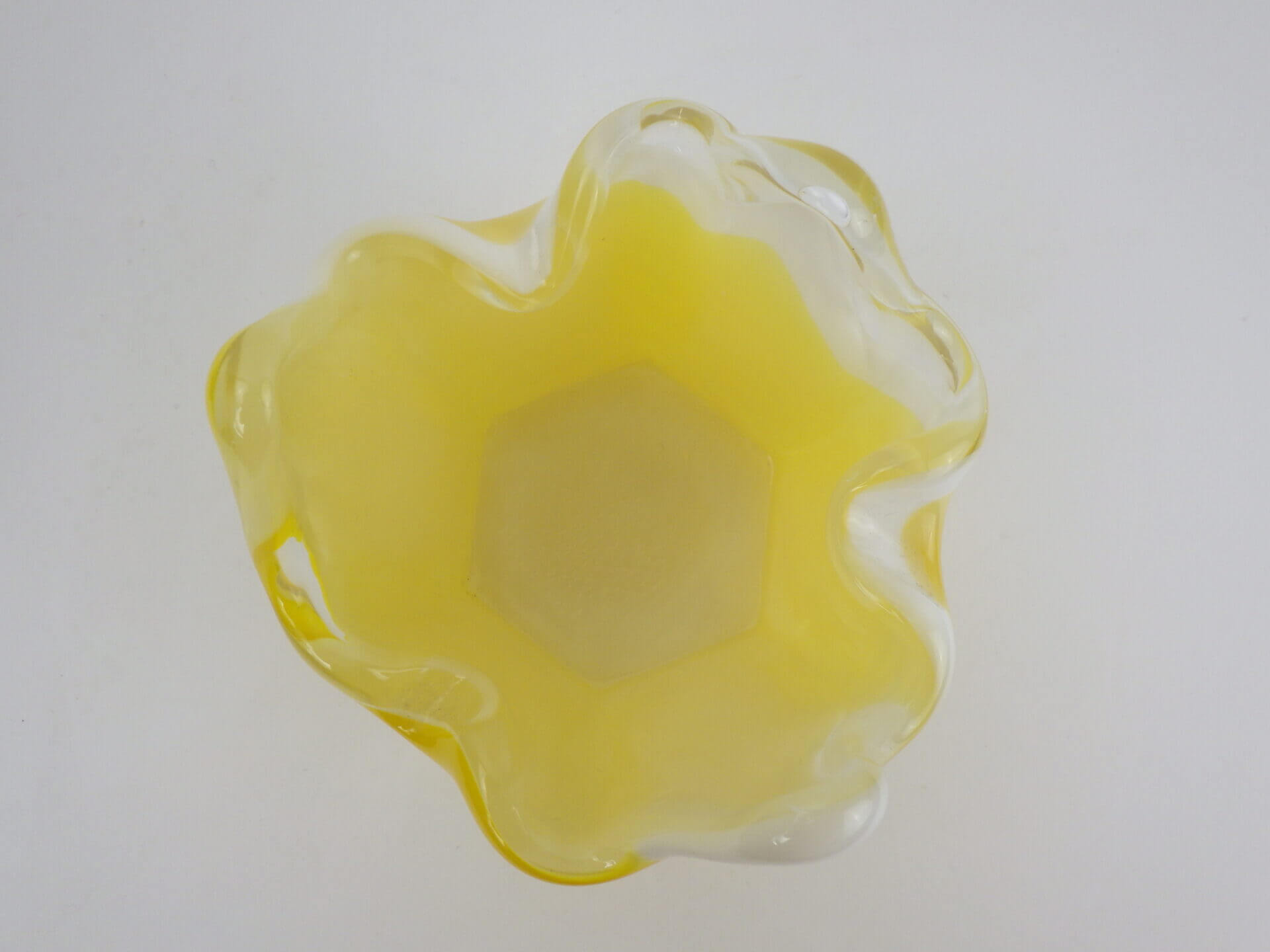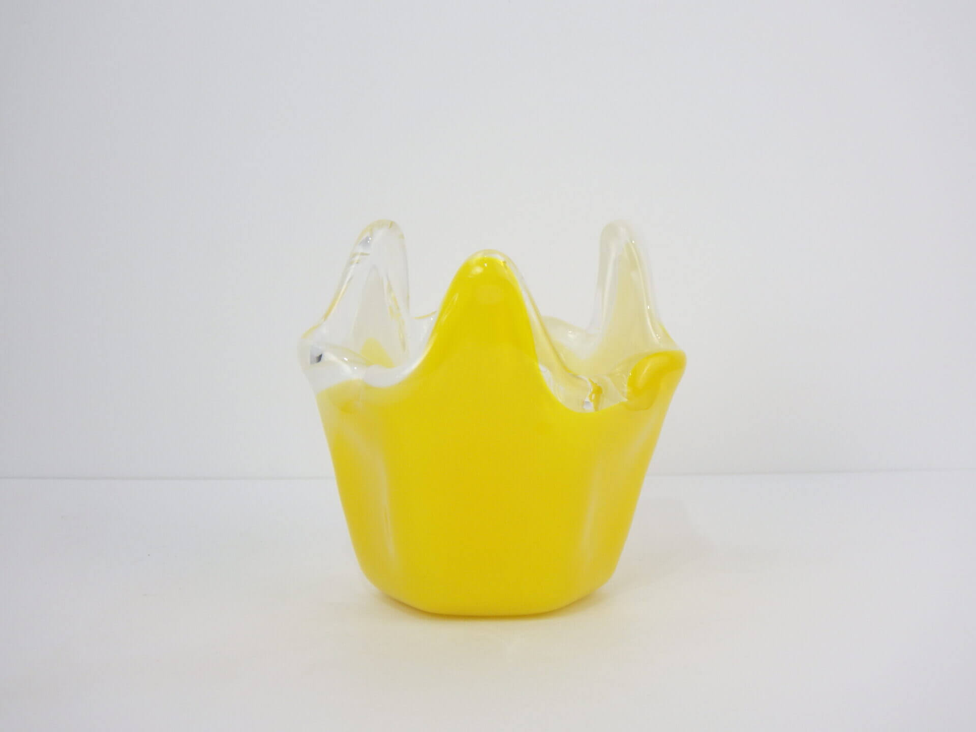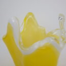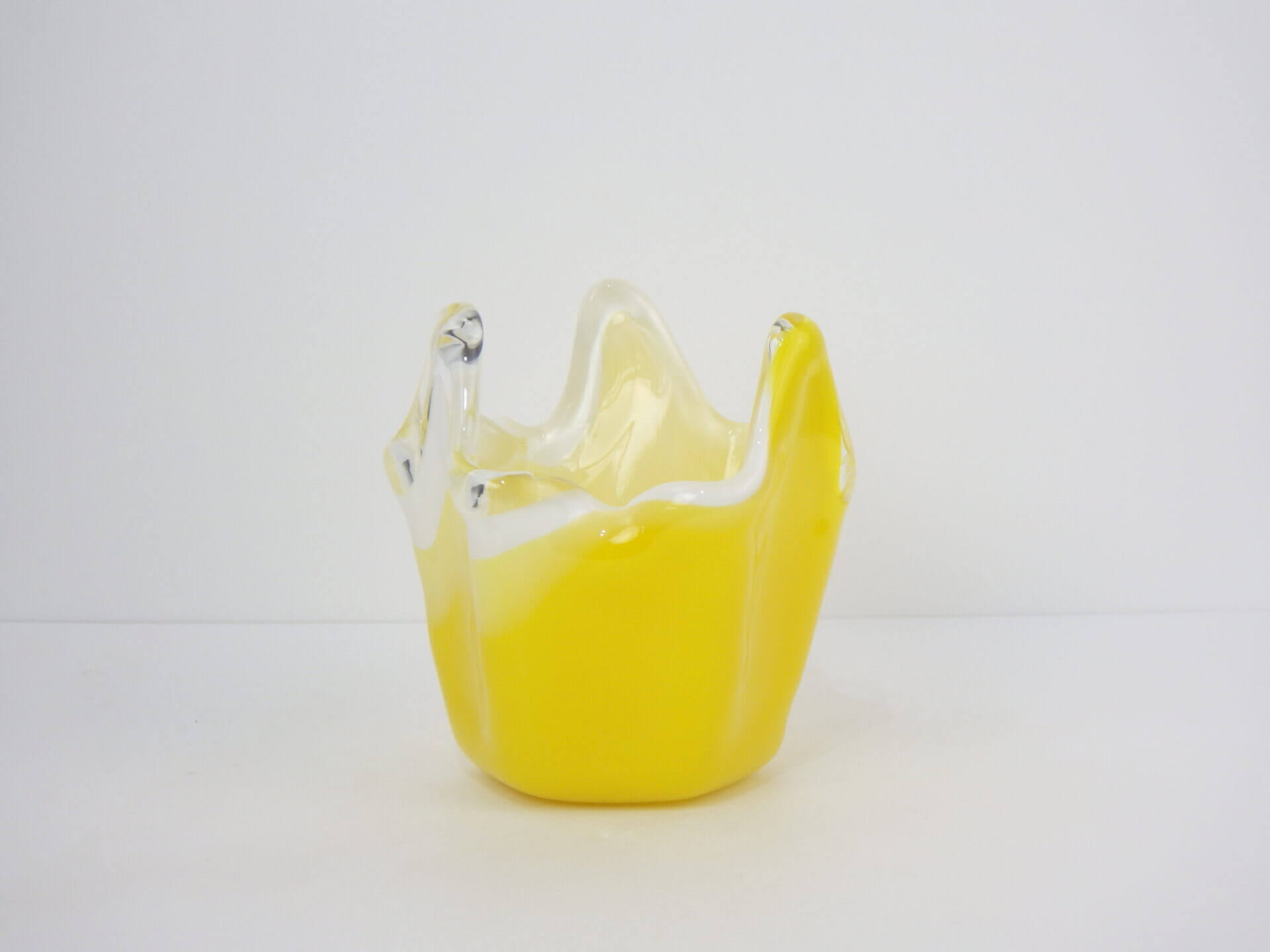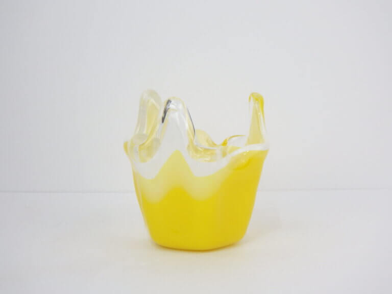 | アメリカで買い付けました。 ガラスのフラワーベースです。 Norleans Japanは元は名古屋の陶器メーカーだったようで、陶器の置物や食器などがアメリカのコレクターの間でよく取引されていたそう。 こちらはガラス製のフラワーベースです。 波打つような縁取りと、鮮やかなイエローが、置いているだけで気持ちを明るくしてくれる、そんな雰囲気です。 |