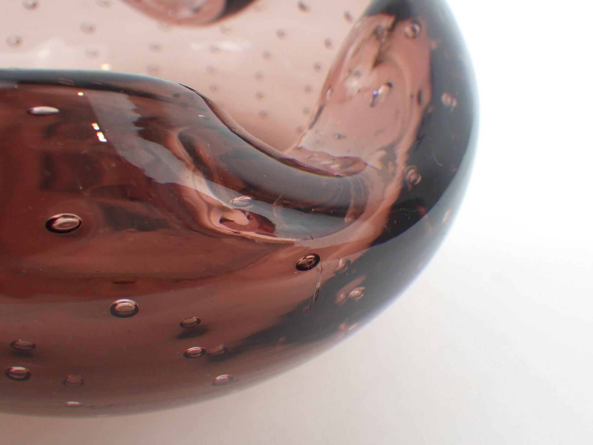 | アメリカで買い付けました。 ガラス製の灰皿です。 薄いスモークパープルの絶妙な色加減と、全体的に入っている小さな気泡が、光を当てるときらきらと輝いて綺麗です。 ちょっとしたアクセサリーを入れたり、お香やキャンドルを焚く際のトレーとしてご使用いただくのも良さそうです。 |