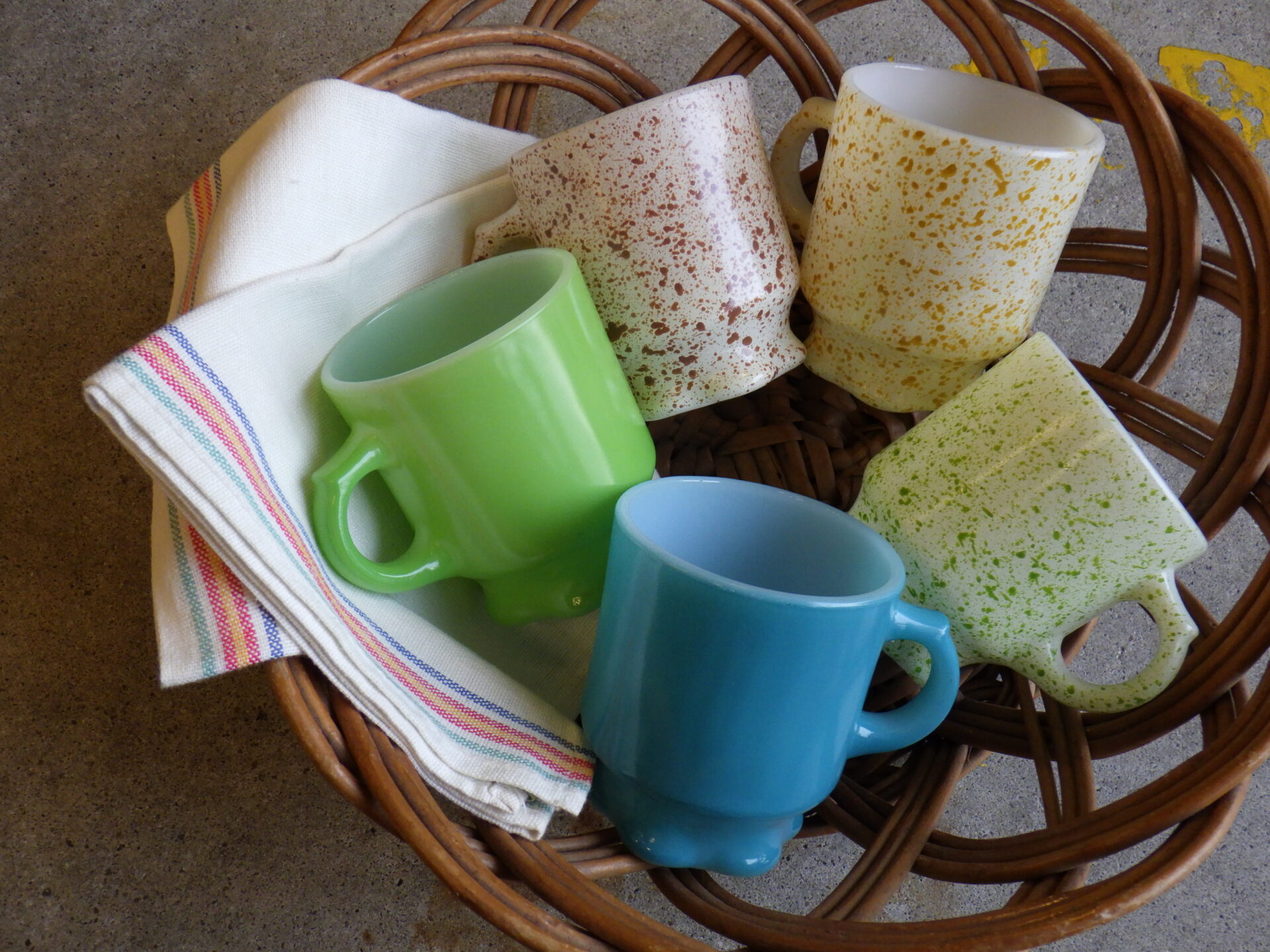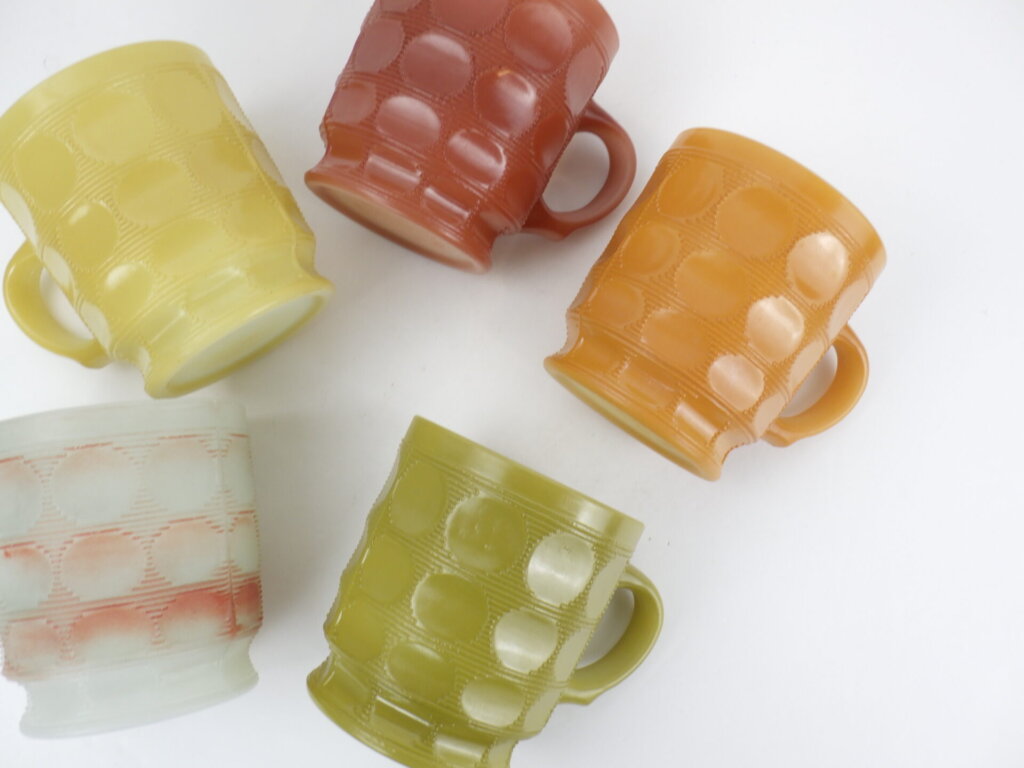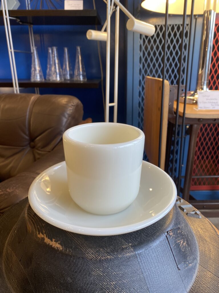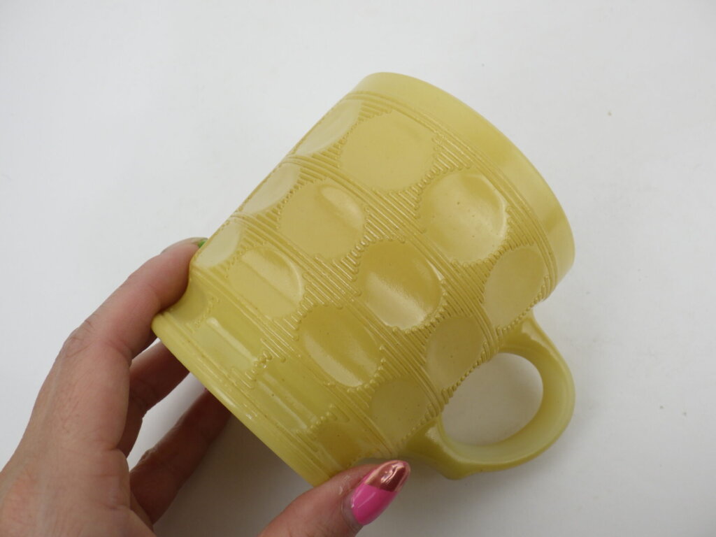 エンボス加工のマグはミルクガラスの中でも種類が少ないので、余計に目を惹きます。