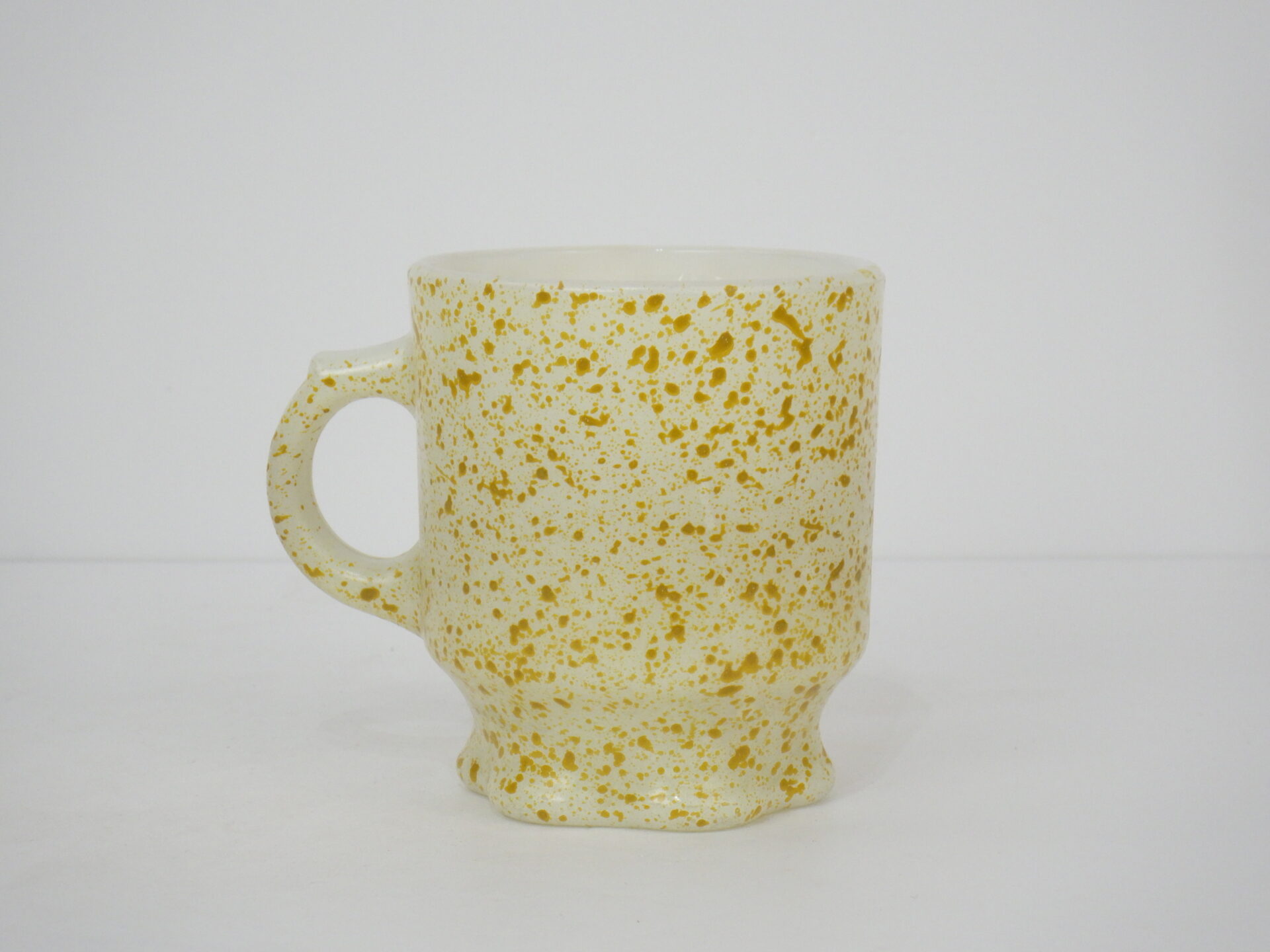 | アメリカで買い付けました。 ファイヤーキングのコンコードマグです。 ホタテのような形のボトムが特徴的なマグ。 ハンドル上部に親指を引掛けられるようになっています。 容量は約230cc。 カラバリも沢山なので、集めて並べるとさらに可愛さが増すシリーズです。 |