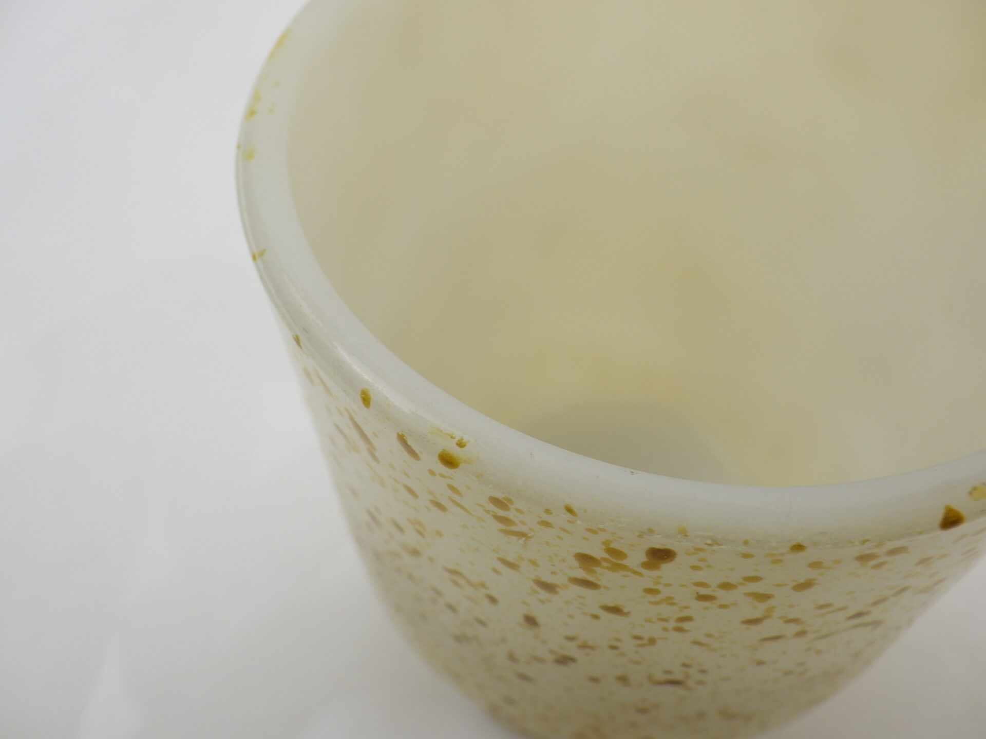 | condition | リムに製造時よりの凹凸があります。 リム、ボトムに薄い着色があります。 ミルクガラス特有の、製造時よりのヘアライン、劣化線などがあります。 |