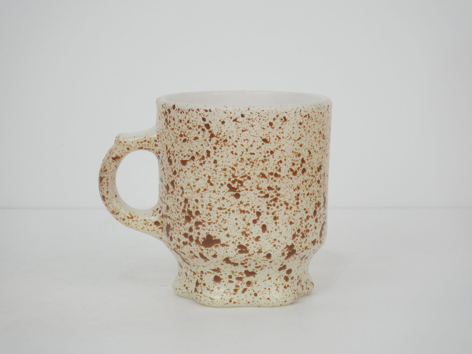 | アメリカで買い付けました。 ファイヤーキングのコンコードマグです。 ホタテのような形のボトムが特徴的なマグ。 ハンドル上部に親指を引掛けられるようになっています。 容量は約230cc。 カラバリも沢山なので、集めて並べるとさらに可愛さが増すシリーズです。 |