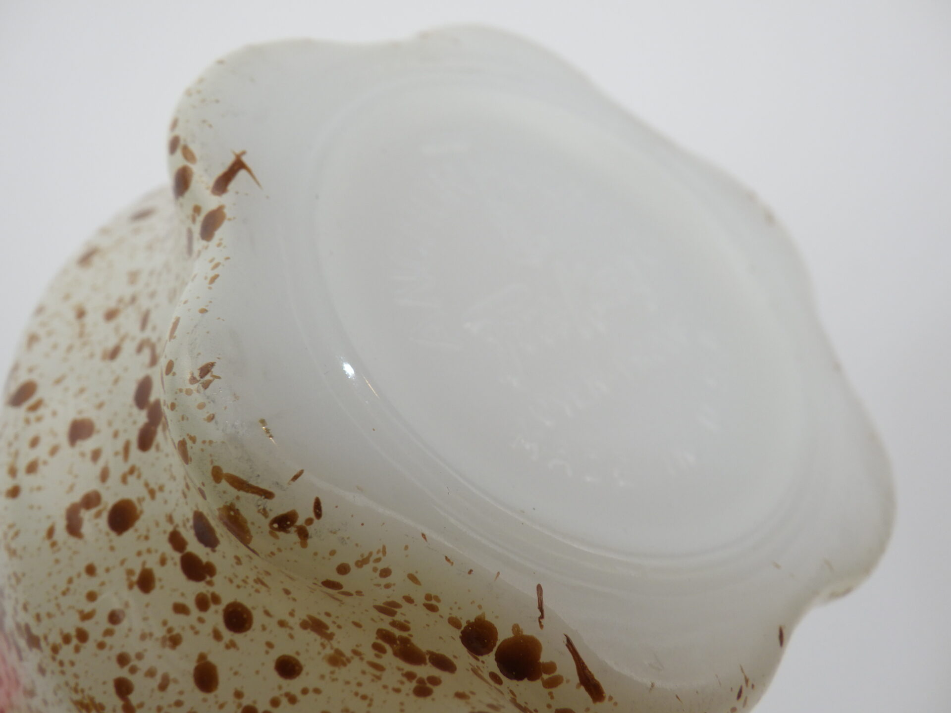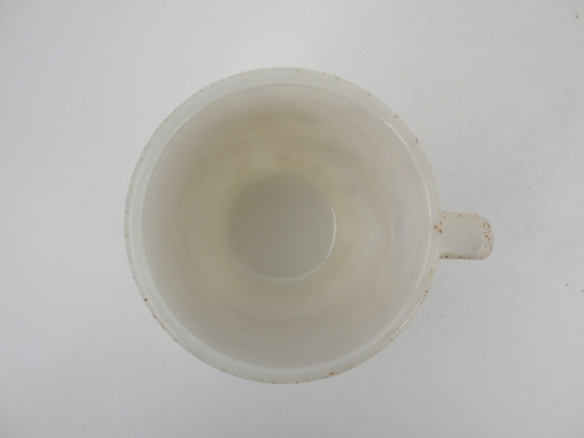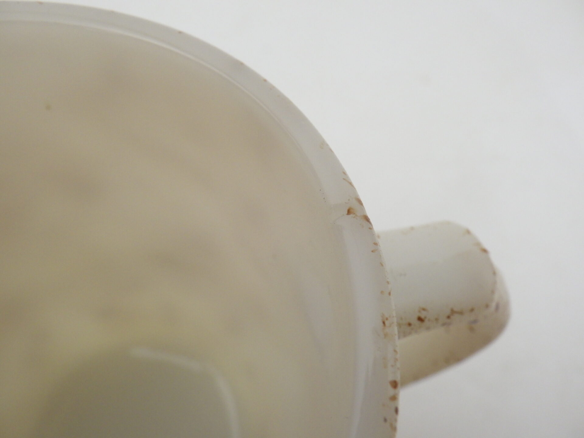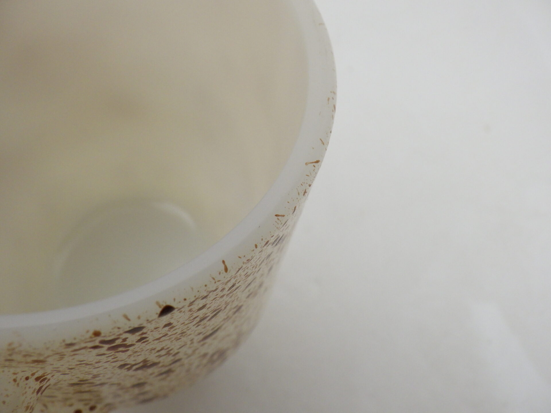| condition | リムに製造時よりの凹凸があります。 ボトムにわずかな着色があります。 ミルクガラス特有の、製造時よりのヘアライン、劣化線などがあります。 |