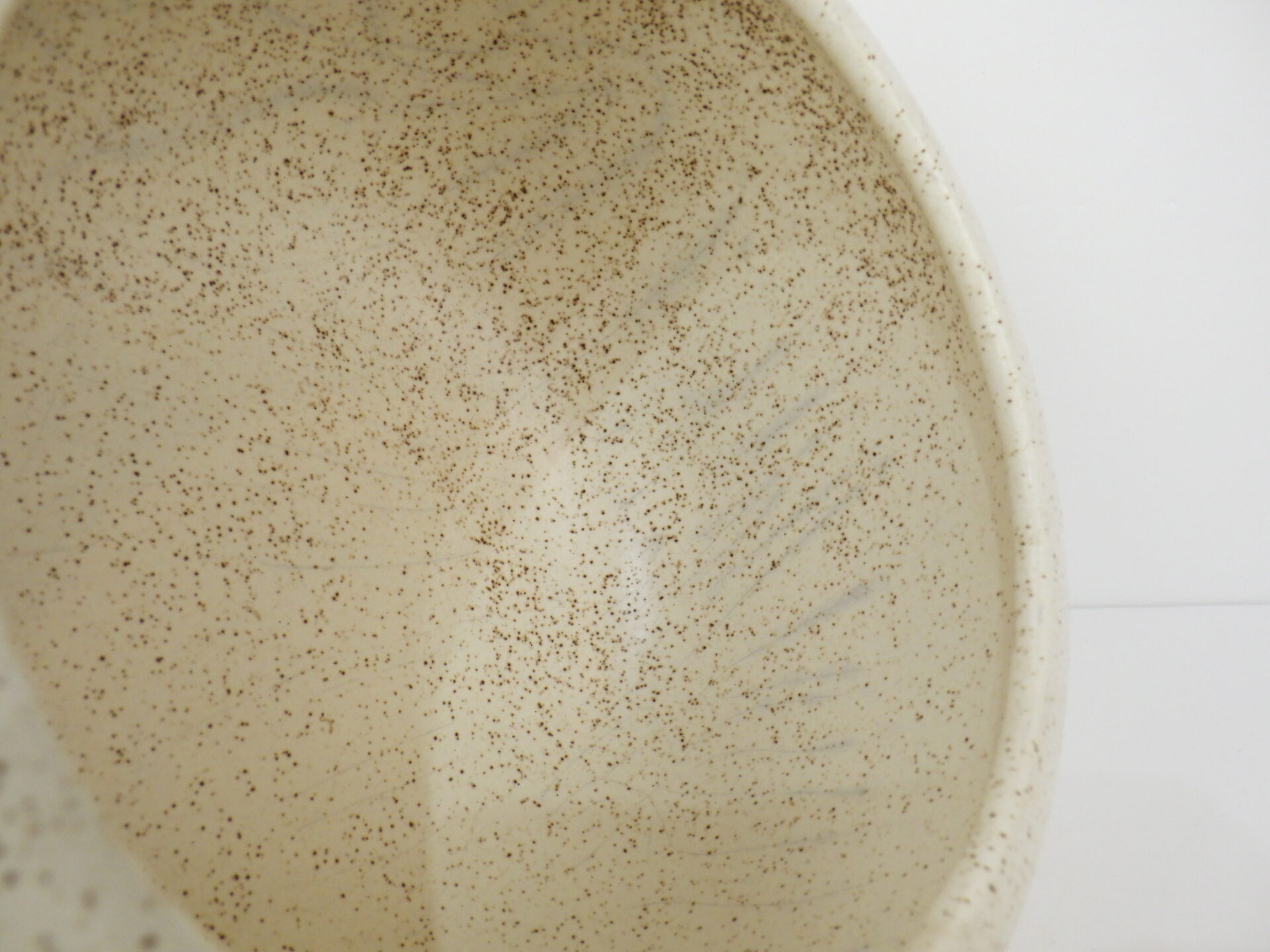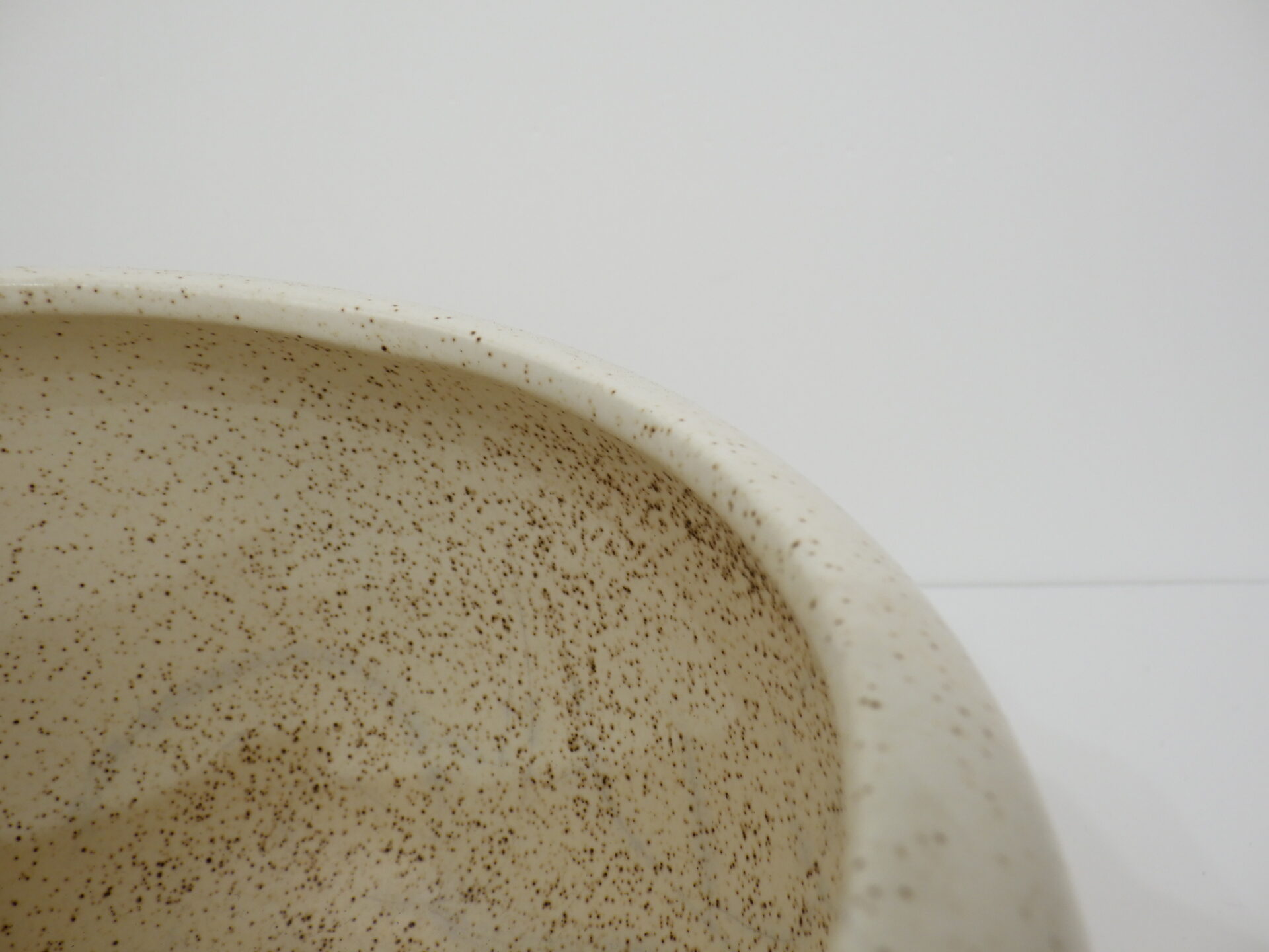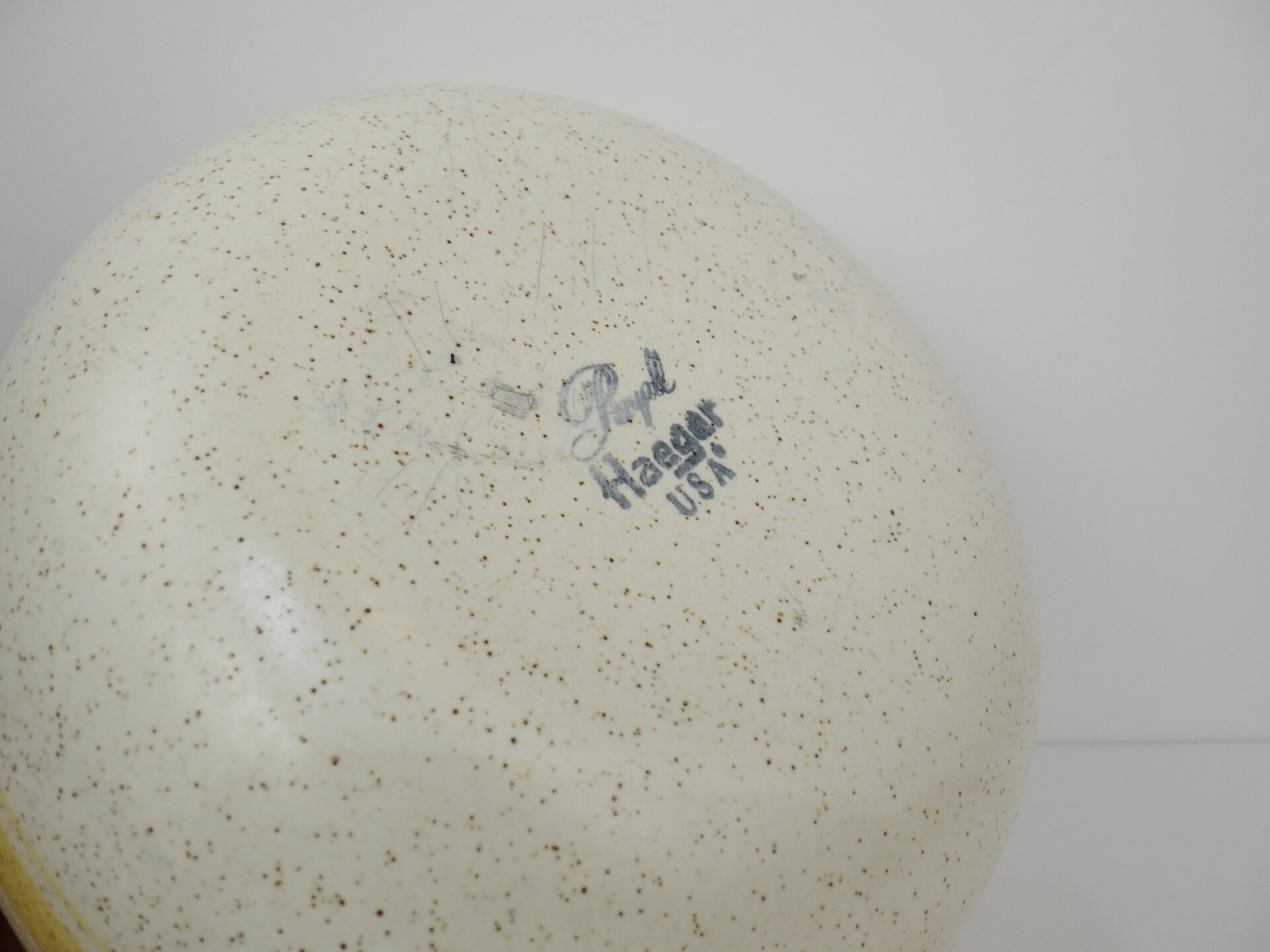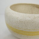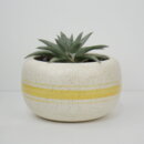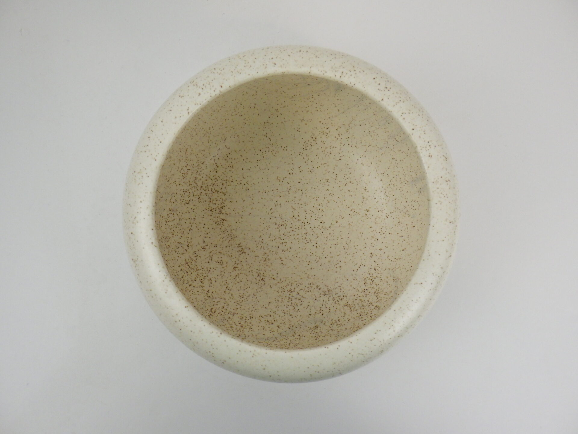 | アメリカで買い付けました。 "Haeger"社製、陶器のプランターです。 Haegerは1800年代中期にイリノイ州でレンガ工場として創業した陶磁器メーカーです。 薄いクリームホワイトのカラーの地に、ライトイエローのラインと斑点が印象的なアイテム。 底穴は空いていませんので、鉢カバーとしてご使用いただくか、フラワーフロッグを使ってお花を生けるのもおすすめです。 |