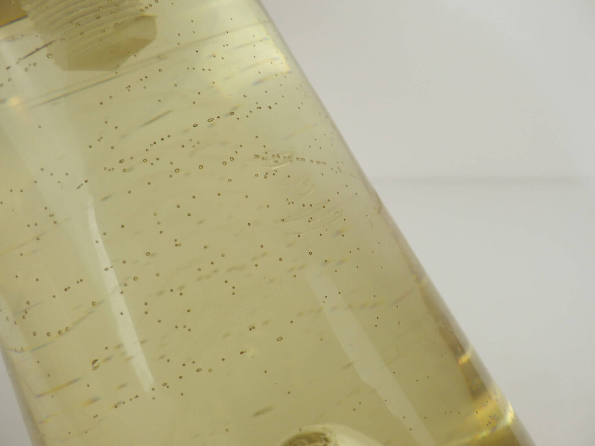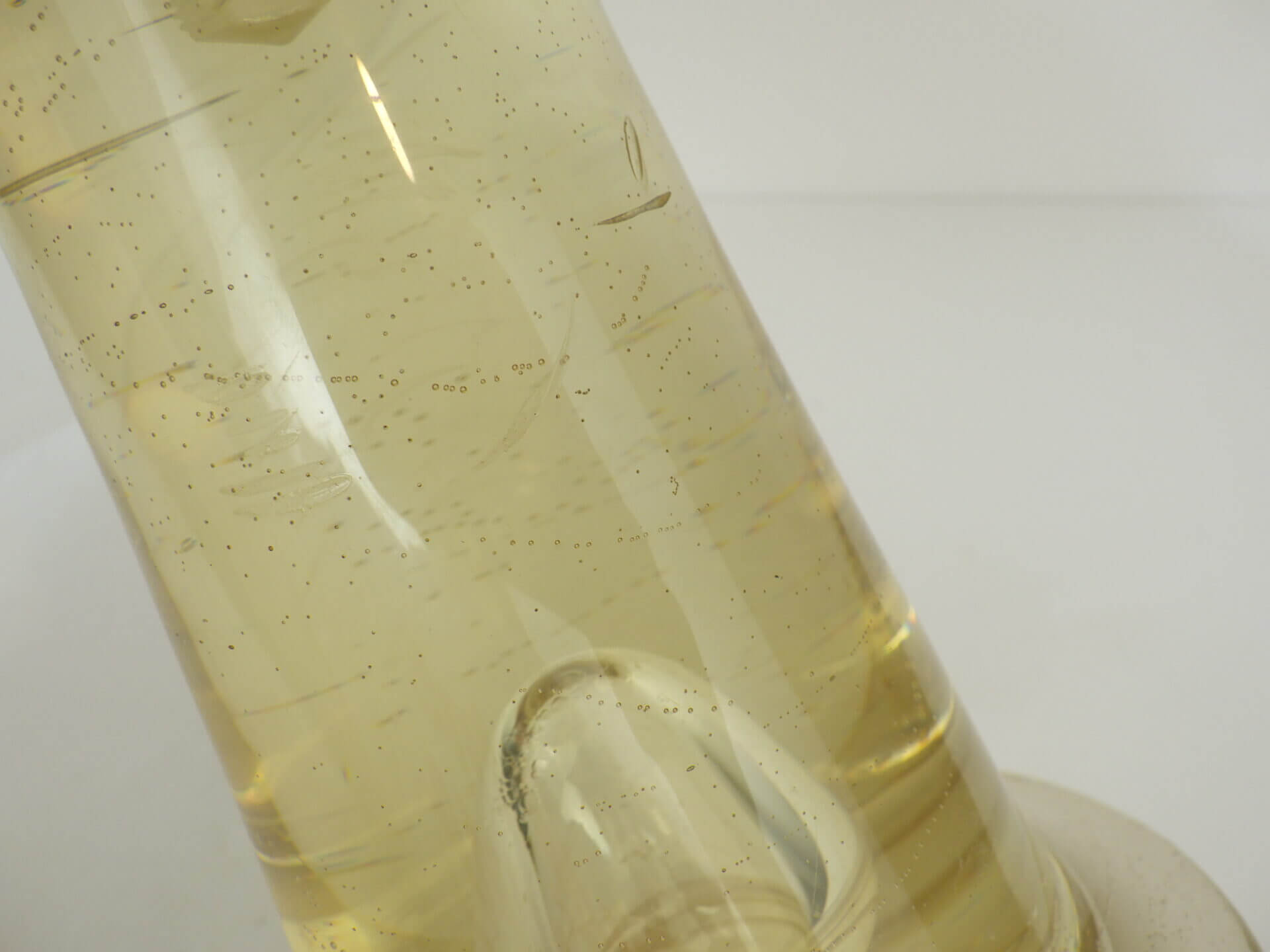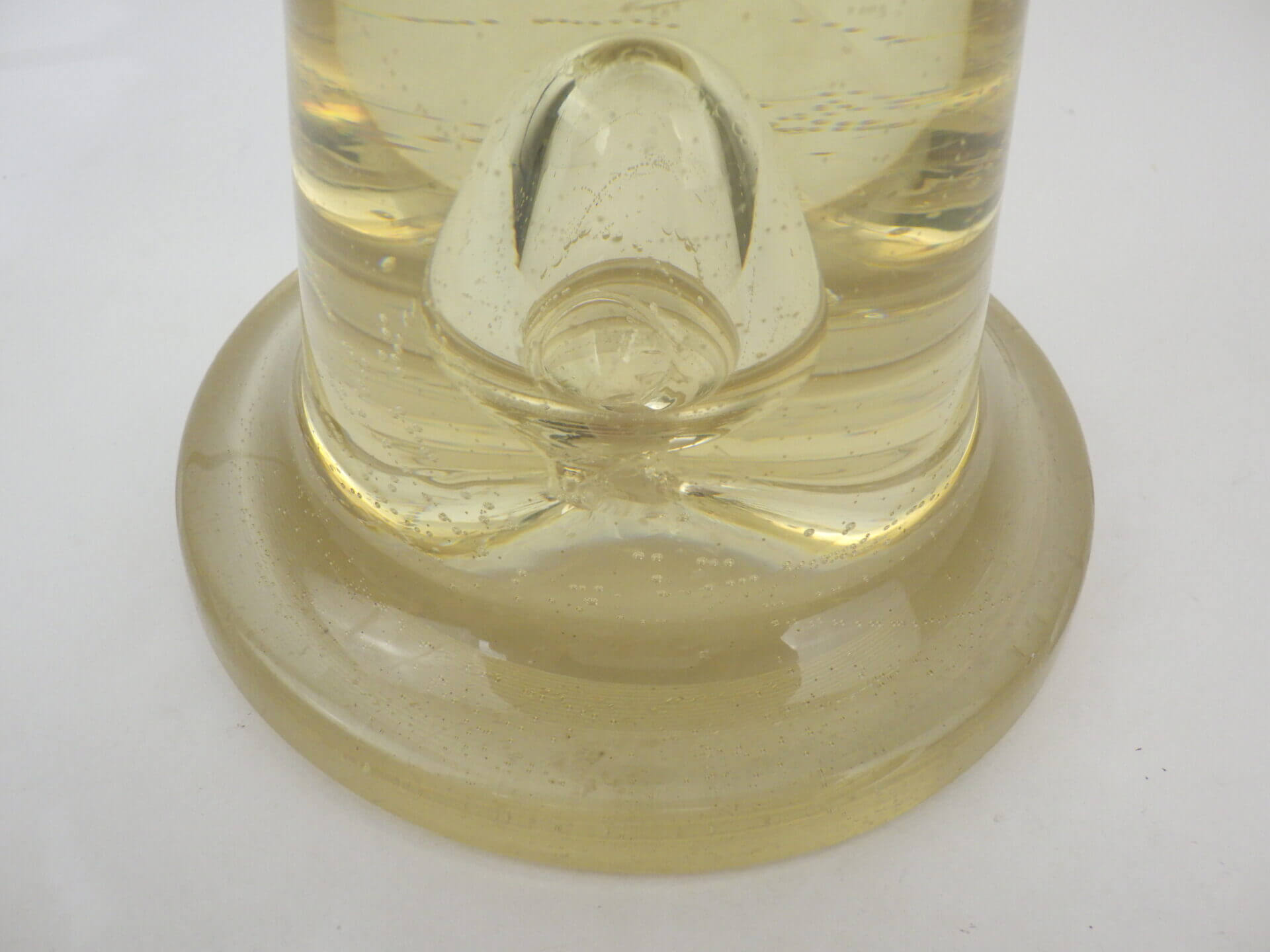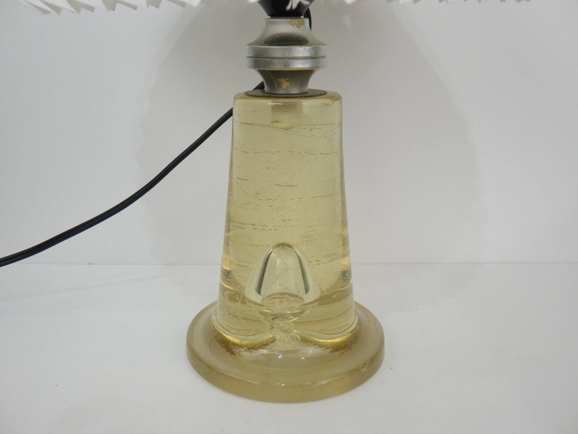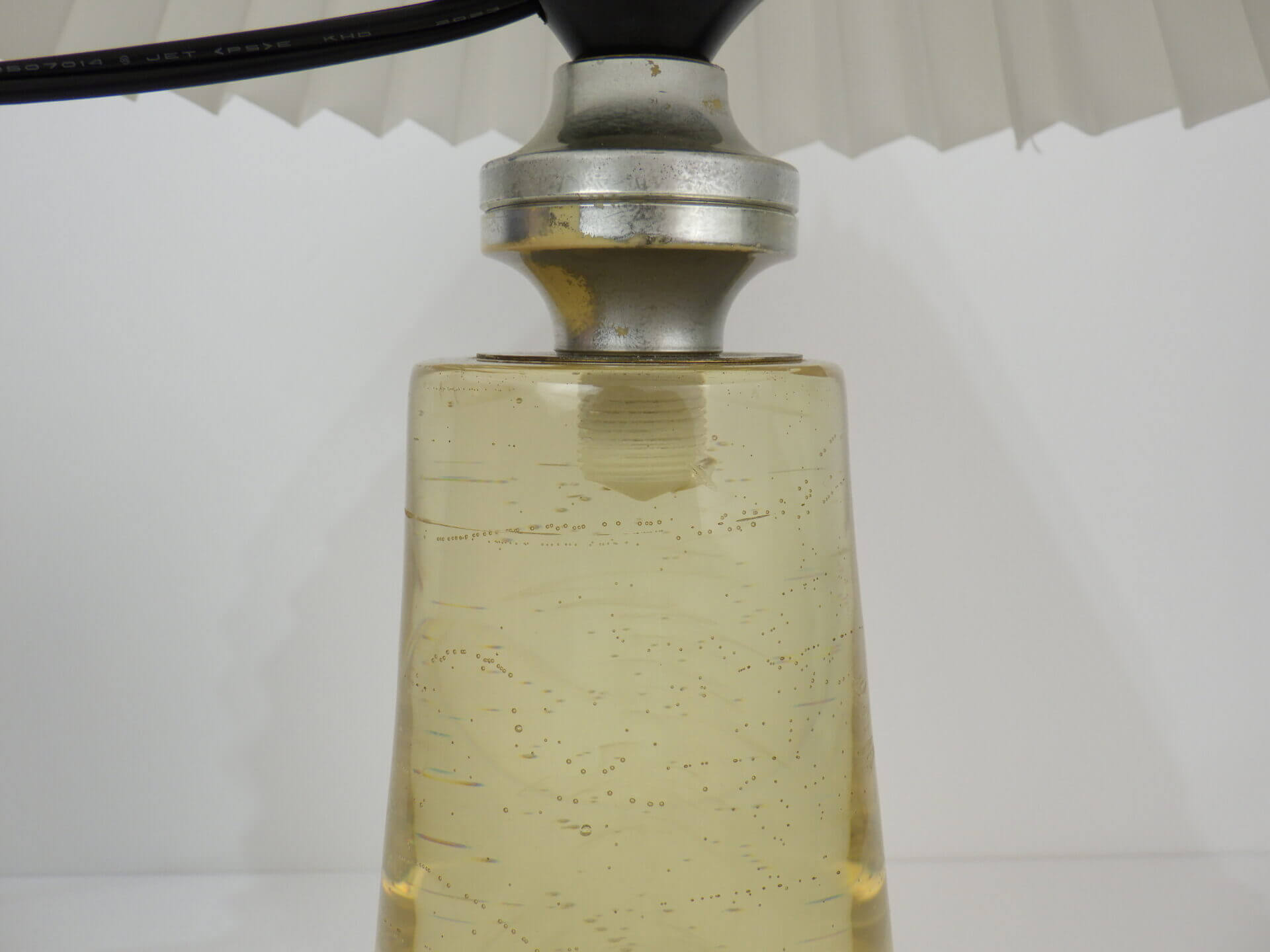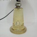 | アメリカで買い付けました。 西ドイツ、ARO Leuchte社製のテーブルランプです。 ルーサイトのベースには、所々に小さな気泡が散りばめられており、灯りをつけた時に煌めく姿が見られ、大変幻想的です。 テーブルランプとしてはもちろんのこと、アート、オブジェといった感覚でお気に入りのスペースに取り入れて頂きたいアイテムです。 また小ぶりなサイズ感なので、テーブルやサイドボード、ナイトスタンドなど様々な場所に置いてお楽しみいただけます。 コードのスイッチでON/OFFが切り替えられます。 (電球の口金サイズ:E26 LED対応) シェードは日本で新品の物を取り付けています。 電球をつける際、ソケット部の黒いプラスチックパーツをひねって取り外して下さい。 |