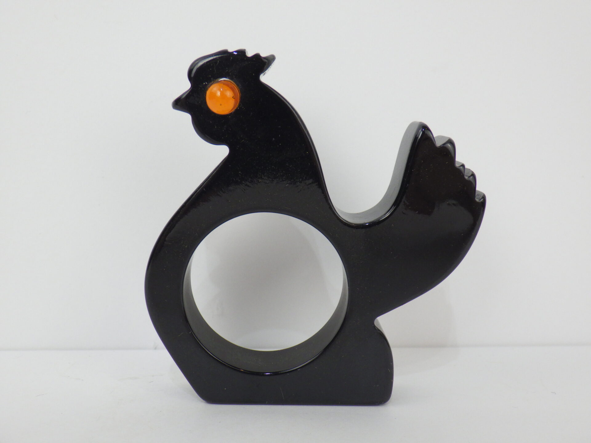 Vintage Bakelite Napkin Ring Rooster ビンテージ ベークライト ナプキンリング 鶏 黒