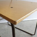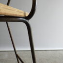 | アメリカで買い付けました。 インダストリアルデザインのビンテージチェアです。 背もたれのエンボスや持ち手があることから、元は飲食店などで使用されていたと推測されますが、詳細は不明。 特徴的な脚のラインや、ウッドの明るいトーンが可愛らしく、ご自宅使いはもちろんのこと、カフェなどの飲食スペースや店舗前に並べておいても良いデザインだと思います。 店舗什器をお探しの方にもおすすめのアイテムです。 |