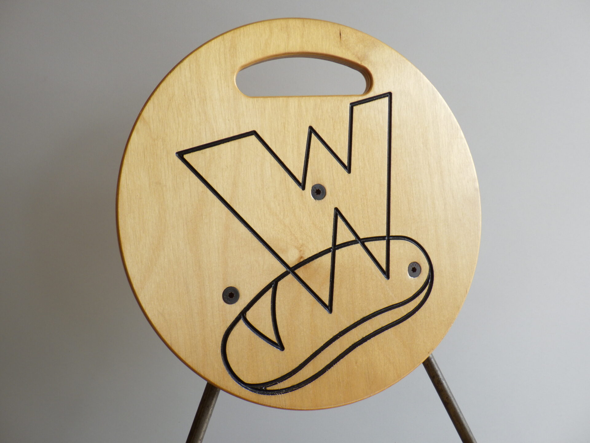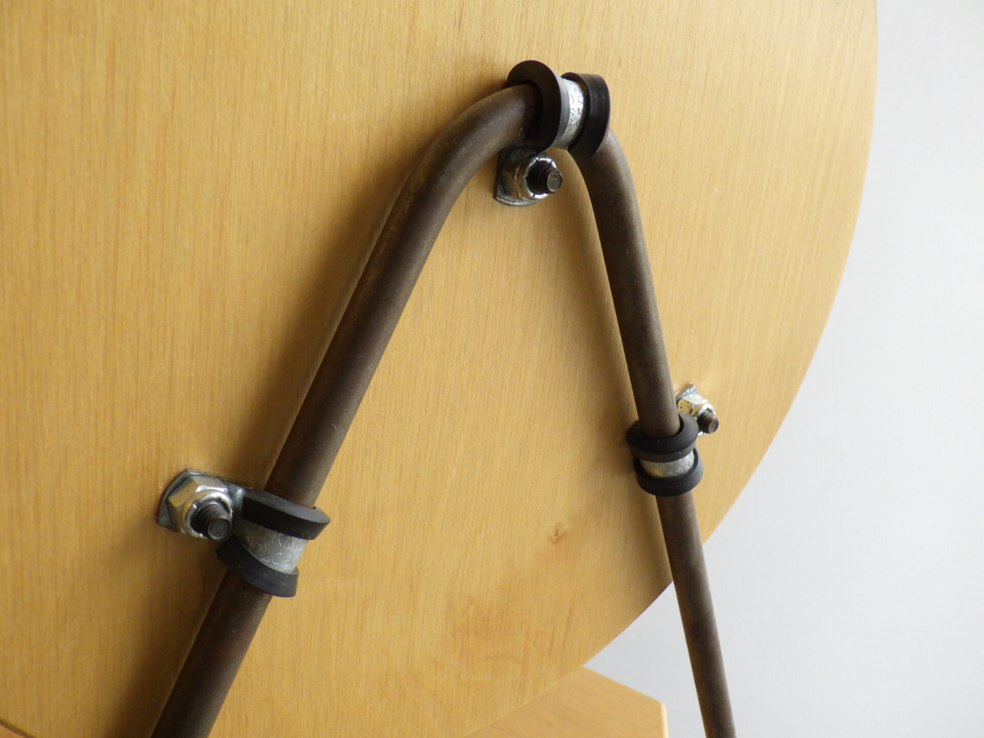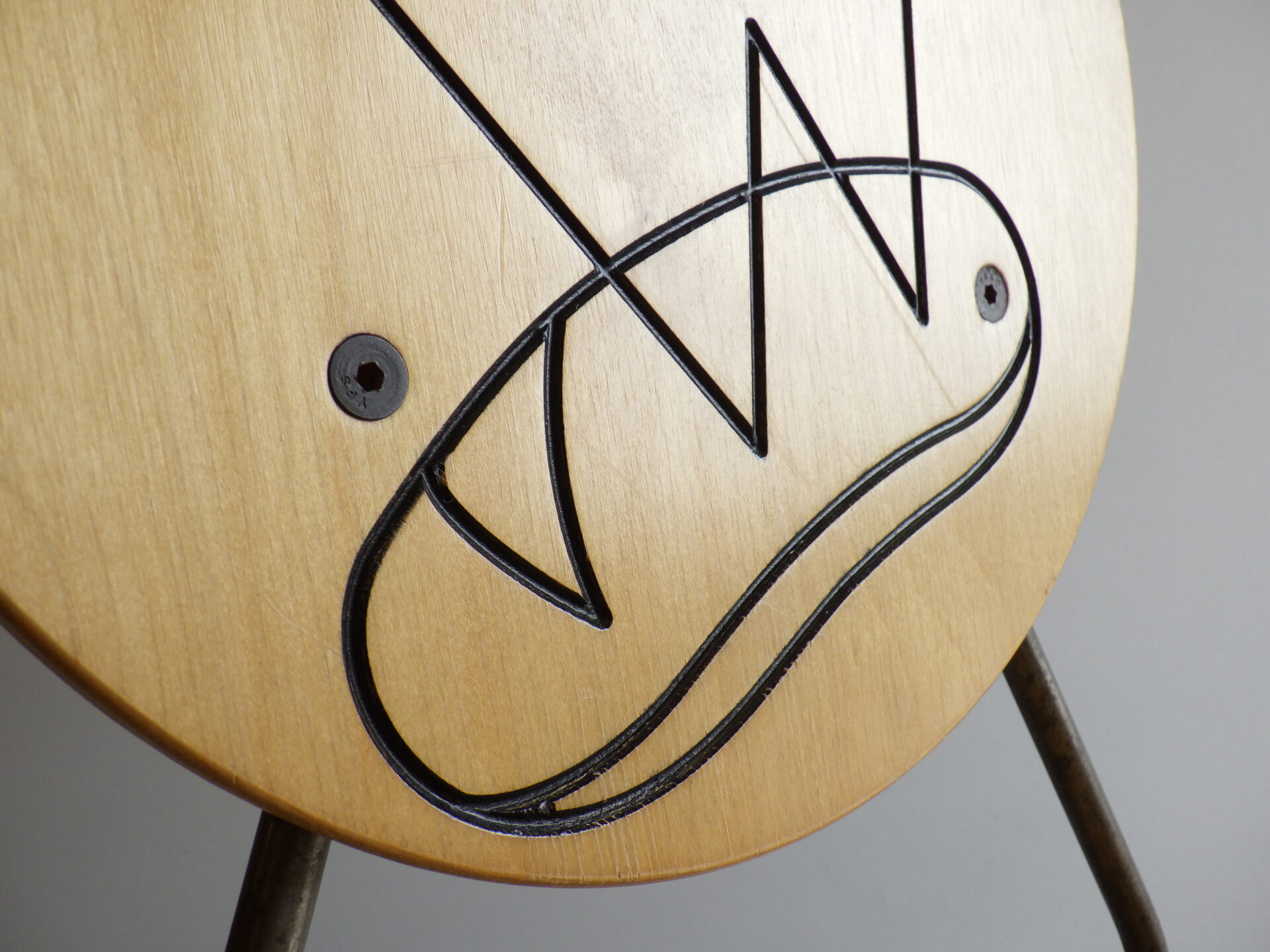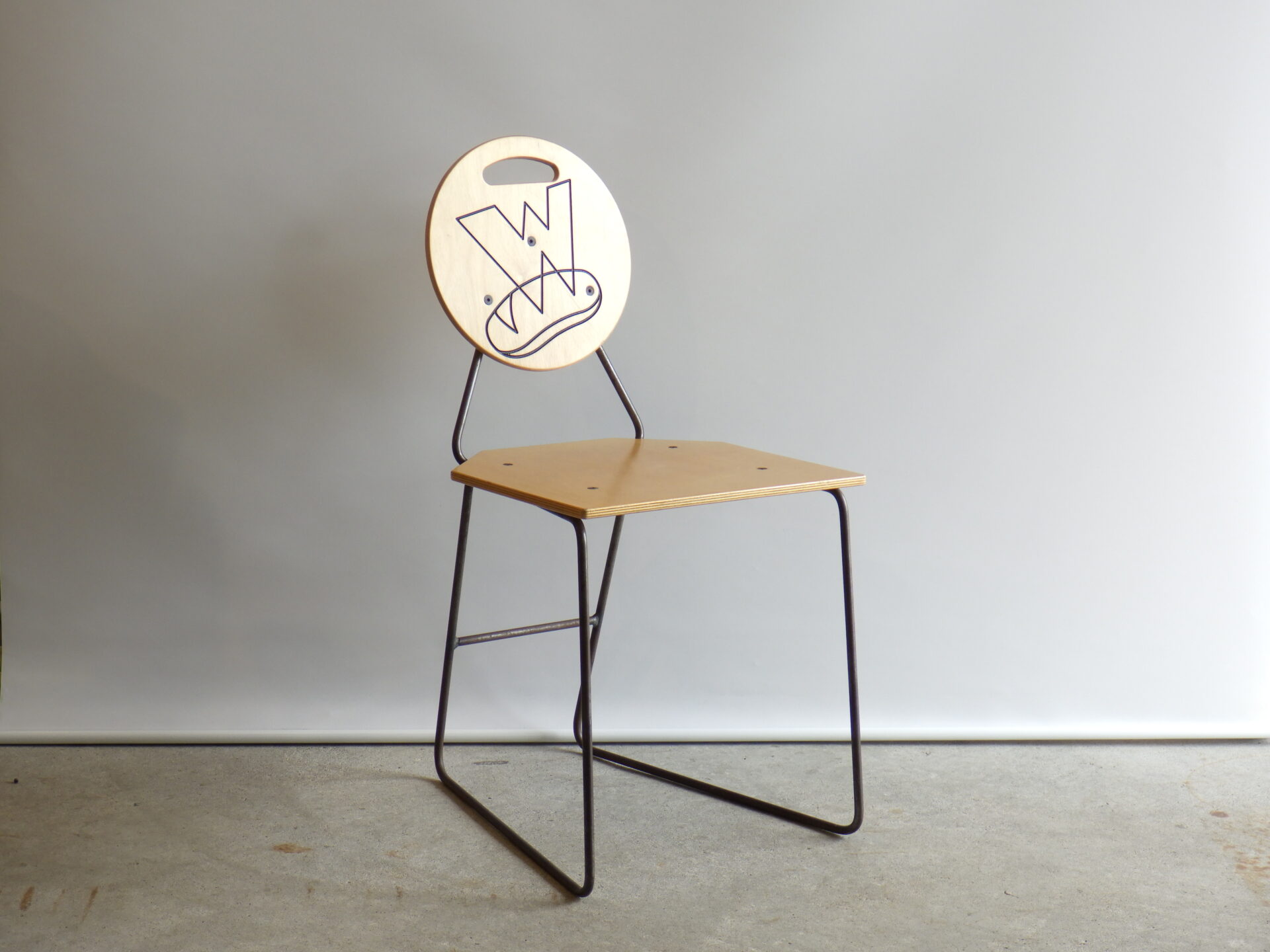 背もたれのエンボスや持ち手があることから、元は飲食店などで使用されていたと推測されますが、詳細は不明。