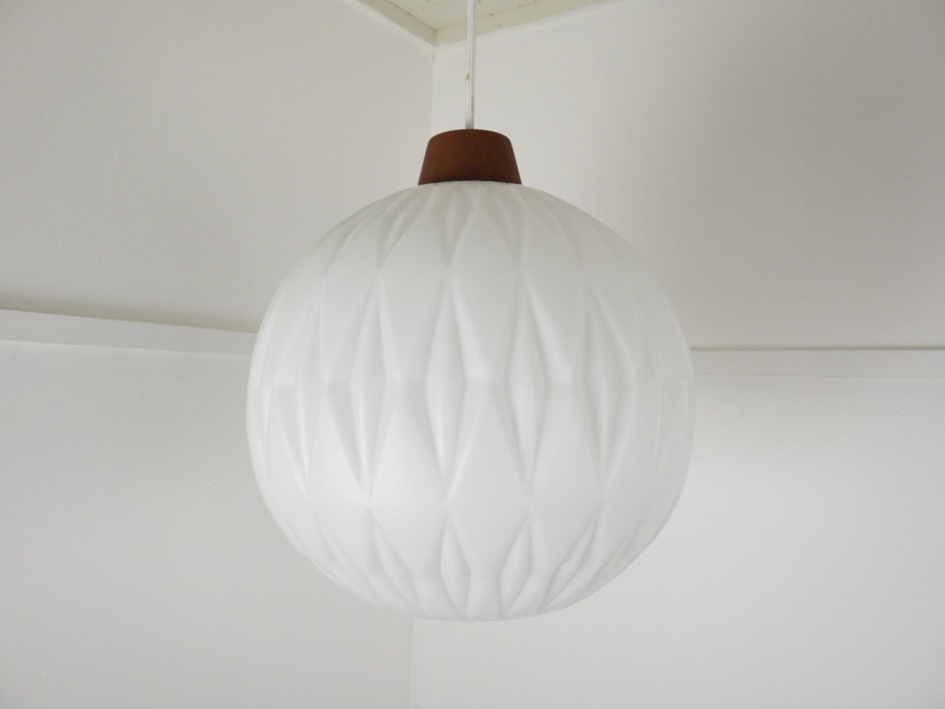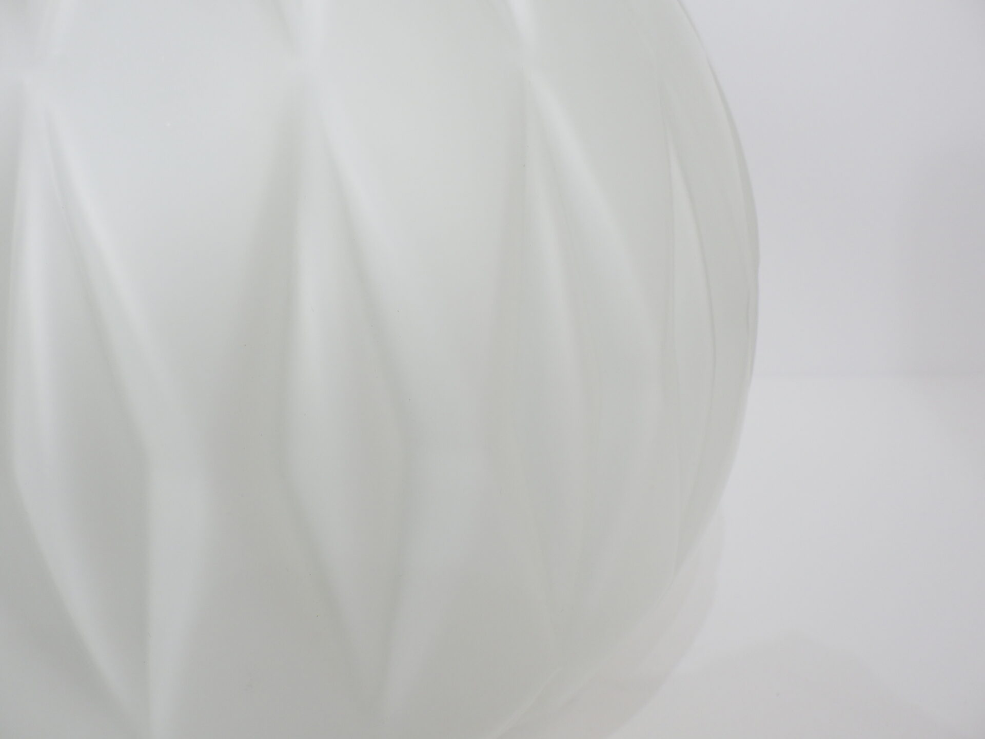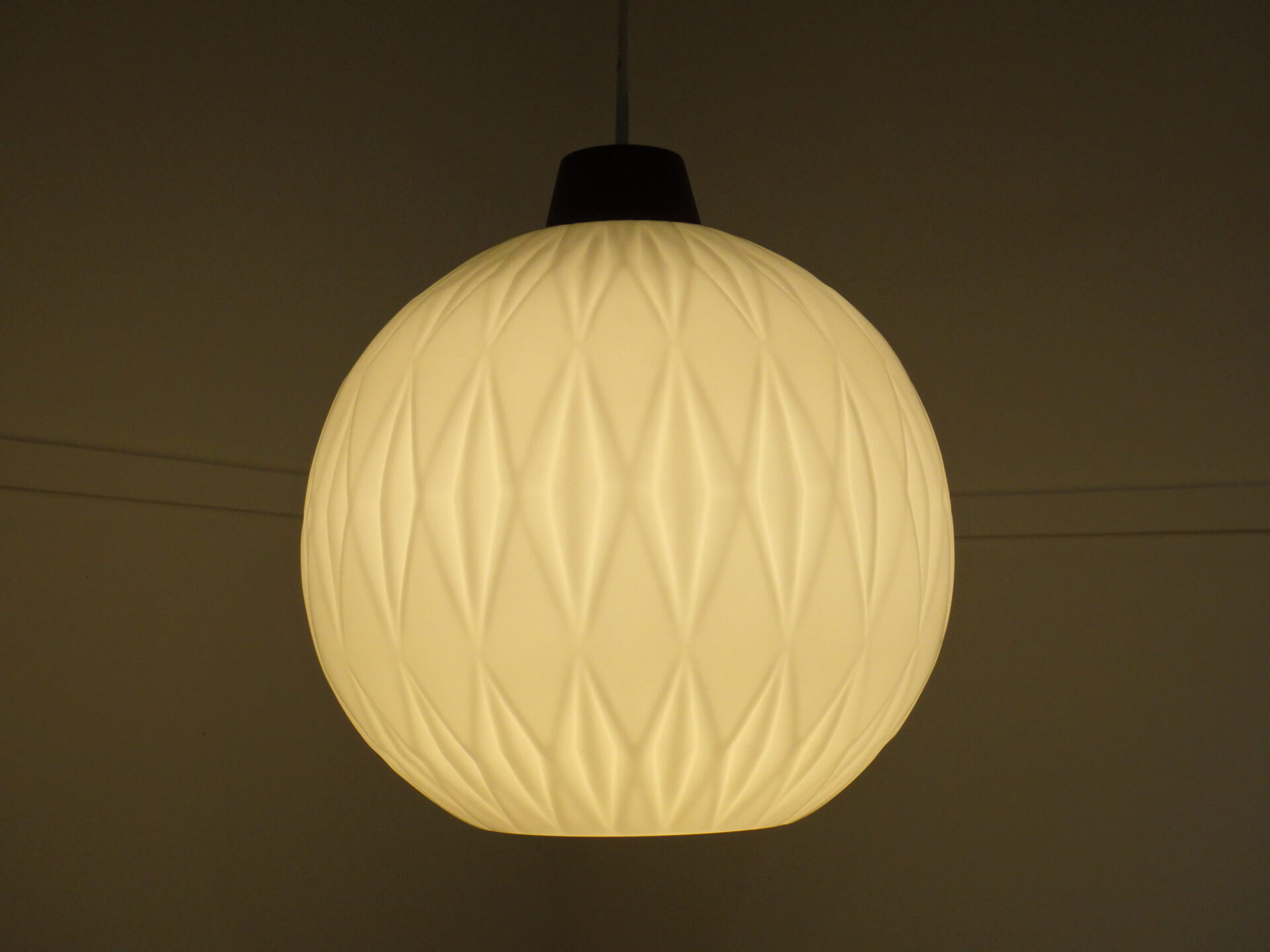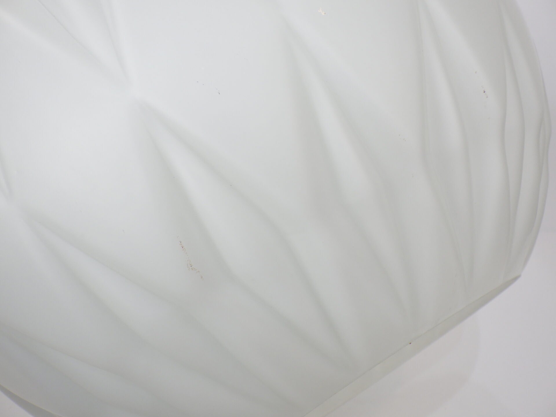 | アメリカで買い付けました。 ビンテージのガラスシェードペンダントランプです。 まん丸のガラスシェードには切子のようなエンボスが入っており、灯りをつけた時に美しい濃淡が生まれます。 また、フロストガラスなので、温かく柔らかな光が広がるため、目にも優しいです。 ミッドセンチュリー、北欧モダンや和モダン、ジャパンディスタイルなど、様々なスタイルに合わせてご使用いただけるアイテムですね。 |