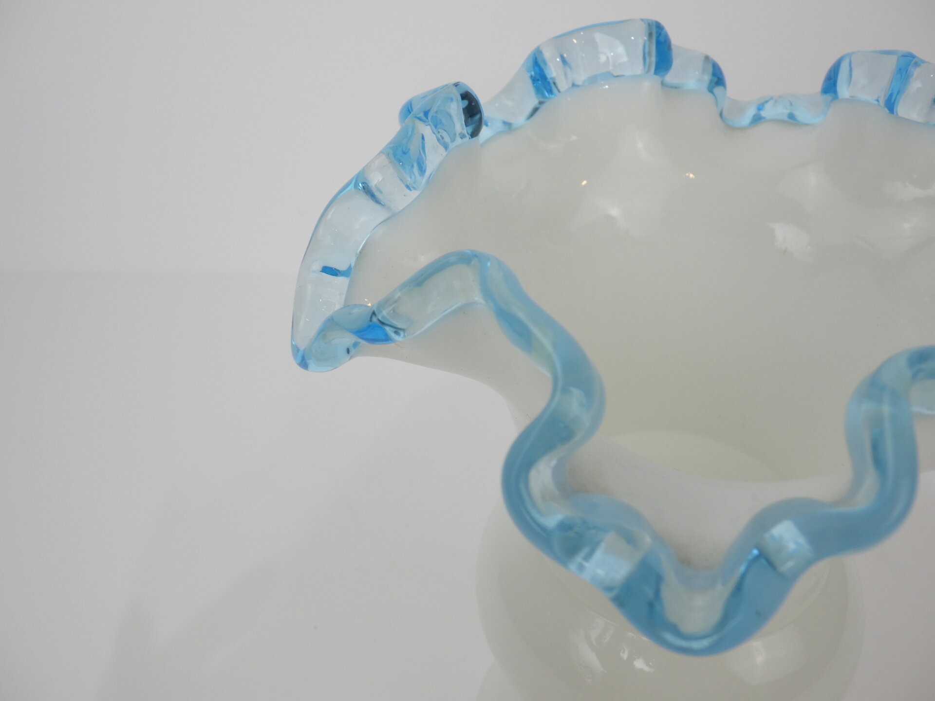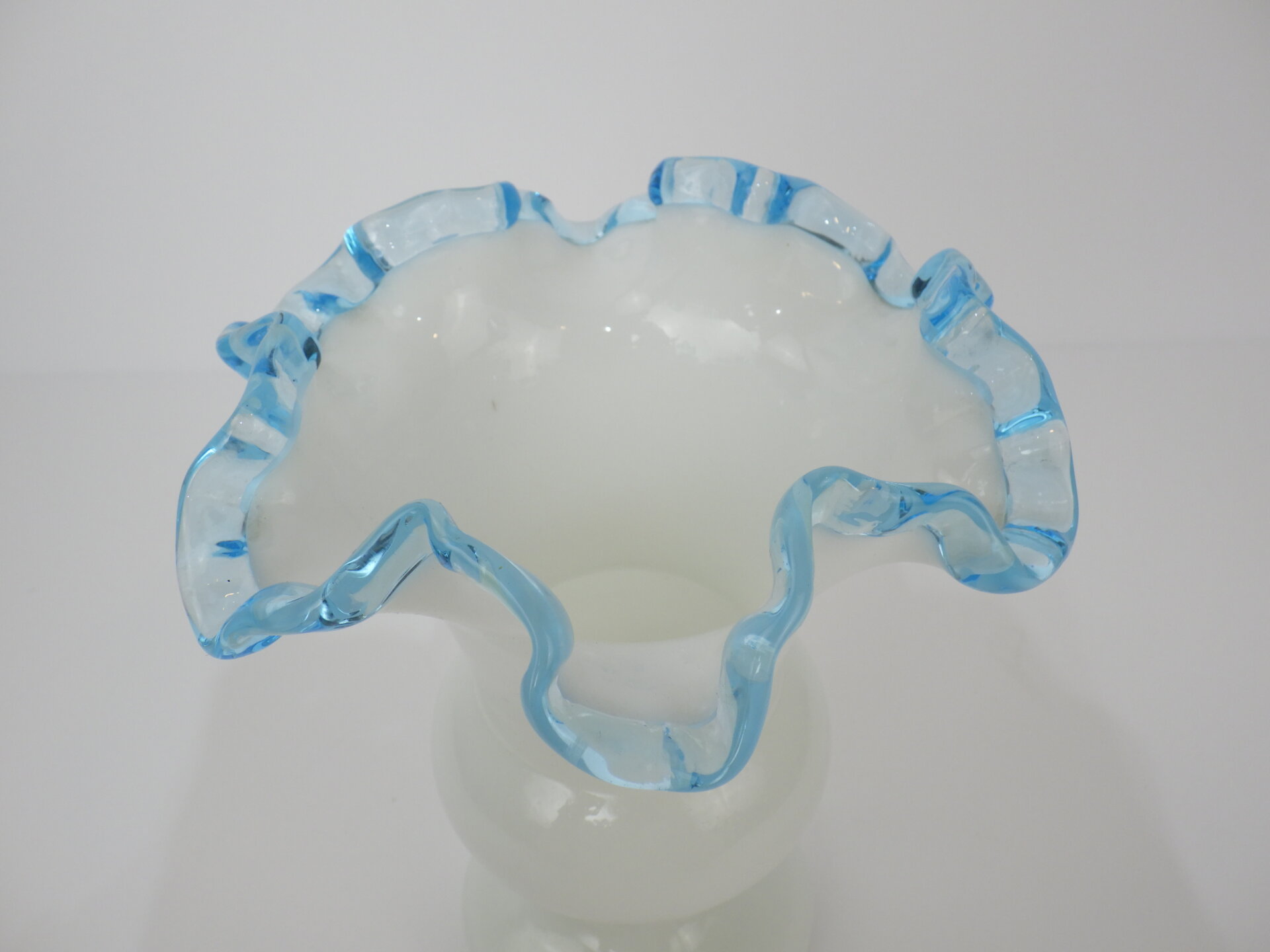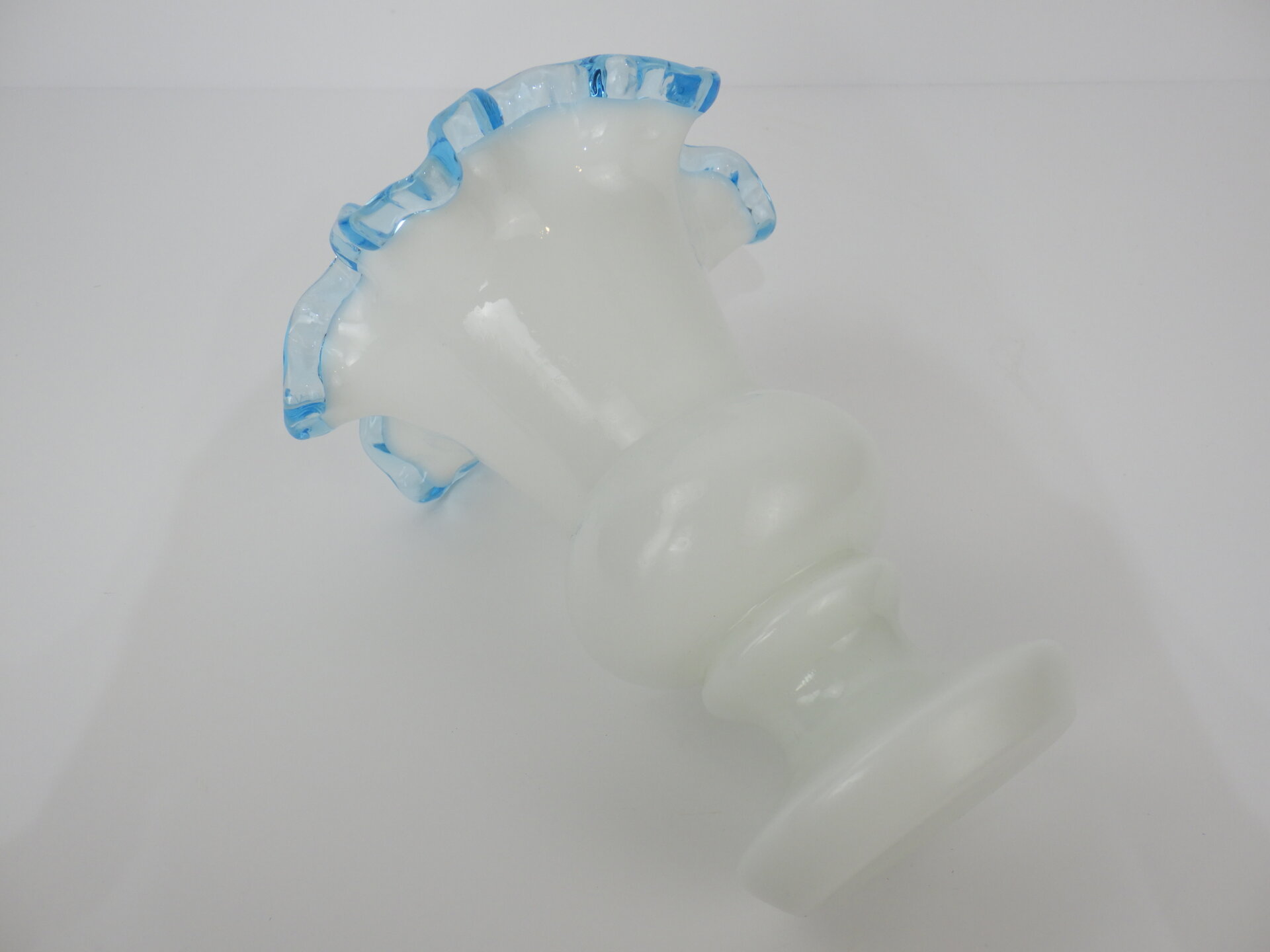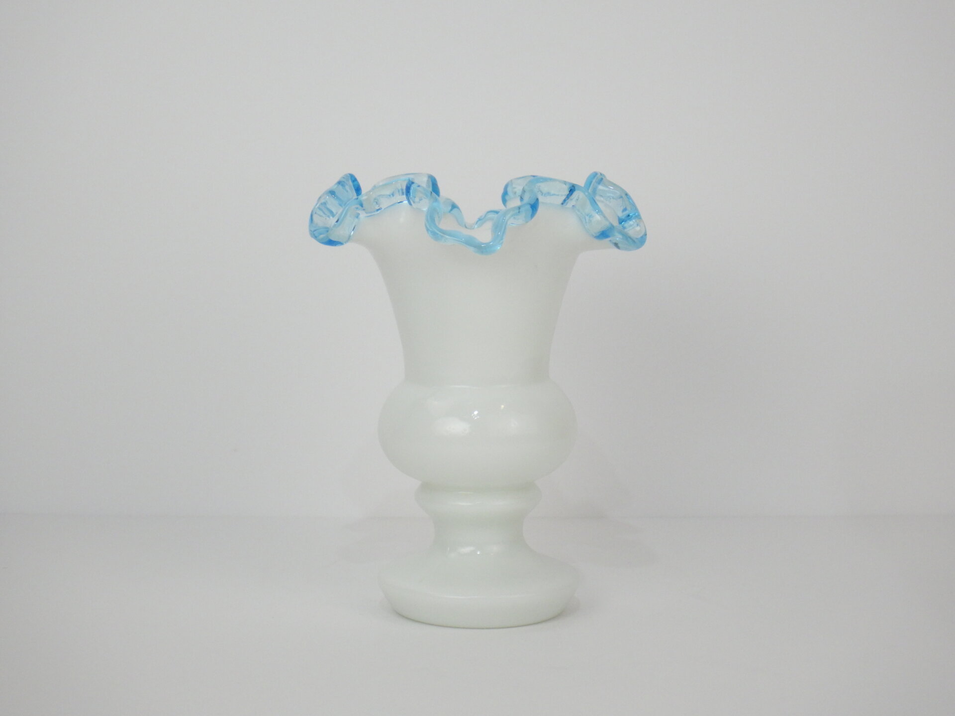 Old Fenton Milk Glass Aqua Crest Vase(H16.8cm) オールドフェントン ミルクガラス アクアクレスト フラワーベース 花瓶 花器
