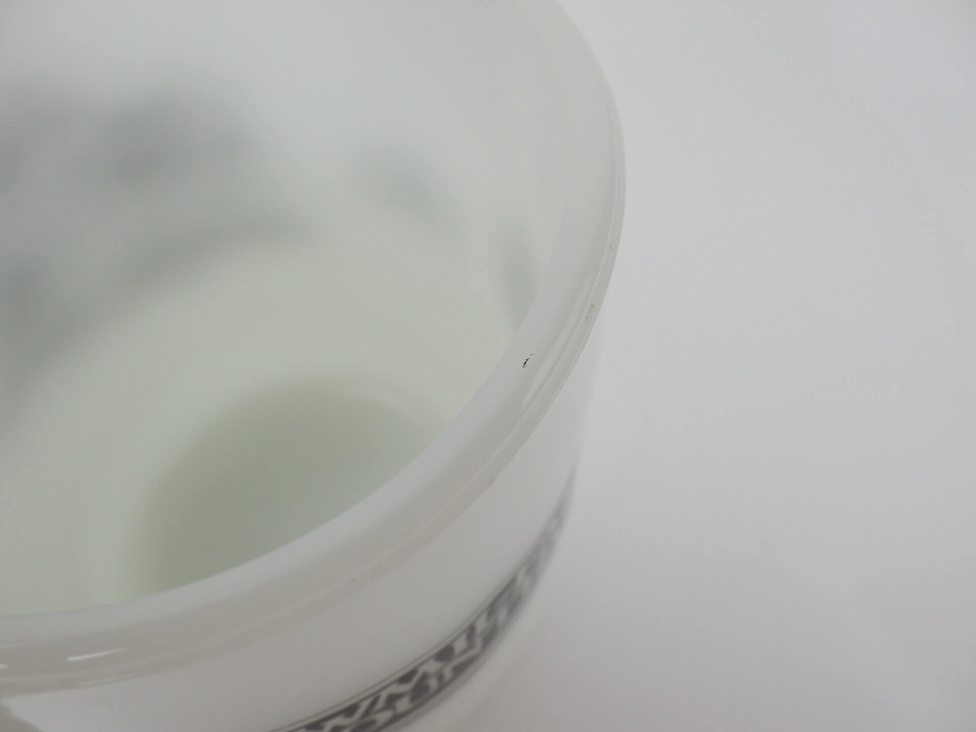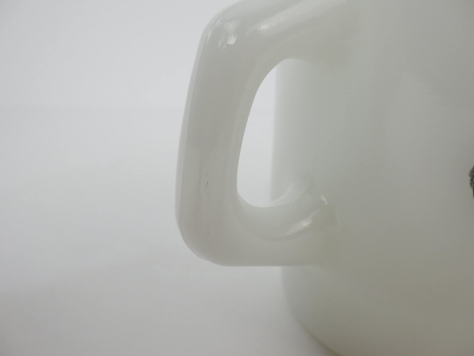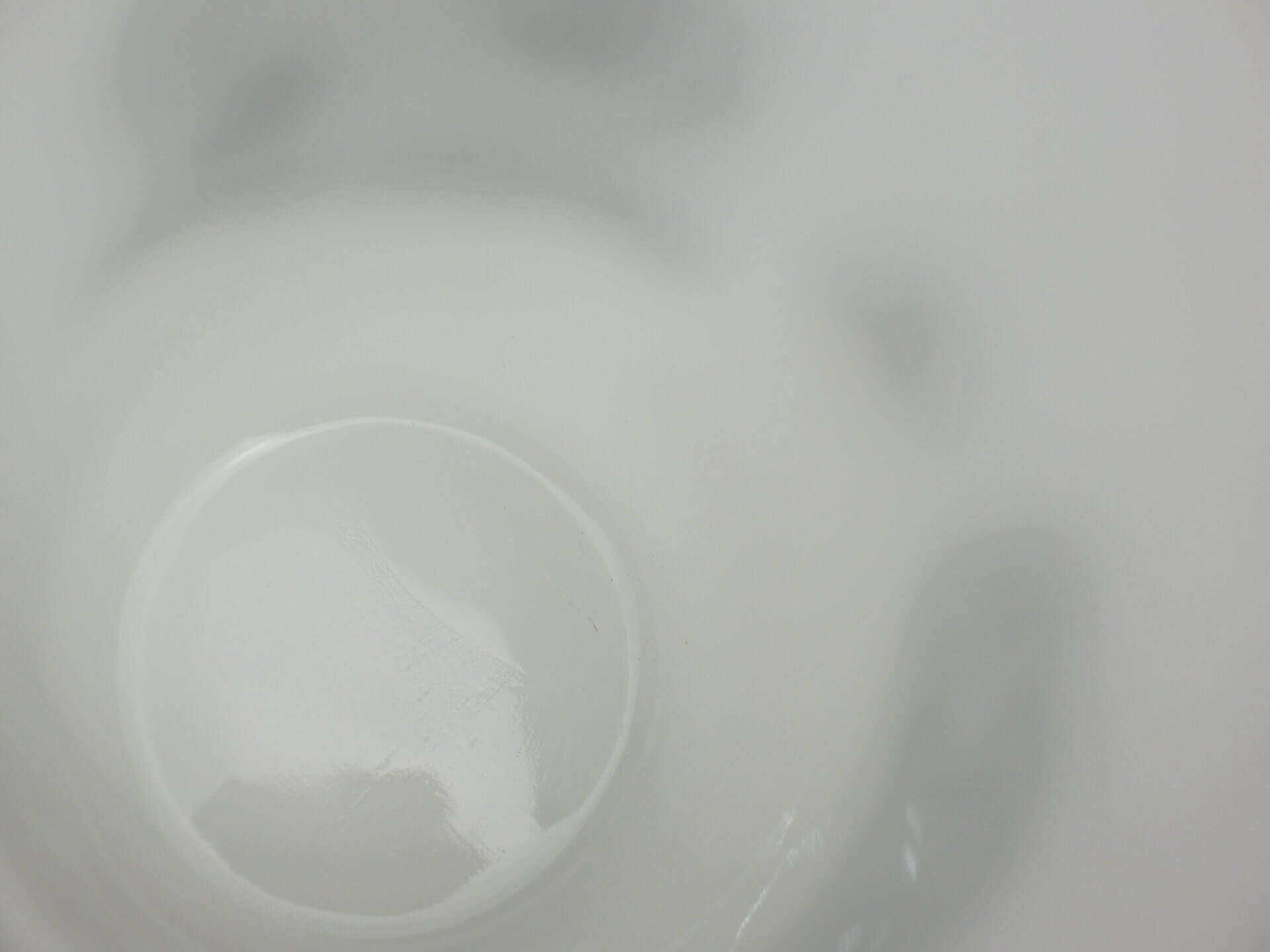 | condition | リム、側面、ハンドル、ボトムにわずかな着色があります。 リムに製造時よりのわずかな凹凸があります。 ボトムに製造時よりの凹凸、わずかなスレがあります。 その他、製造時よりのヘアライン、劣化線、凹凸などありますが、ミルクガラス特有のものです。 |