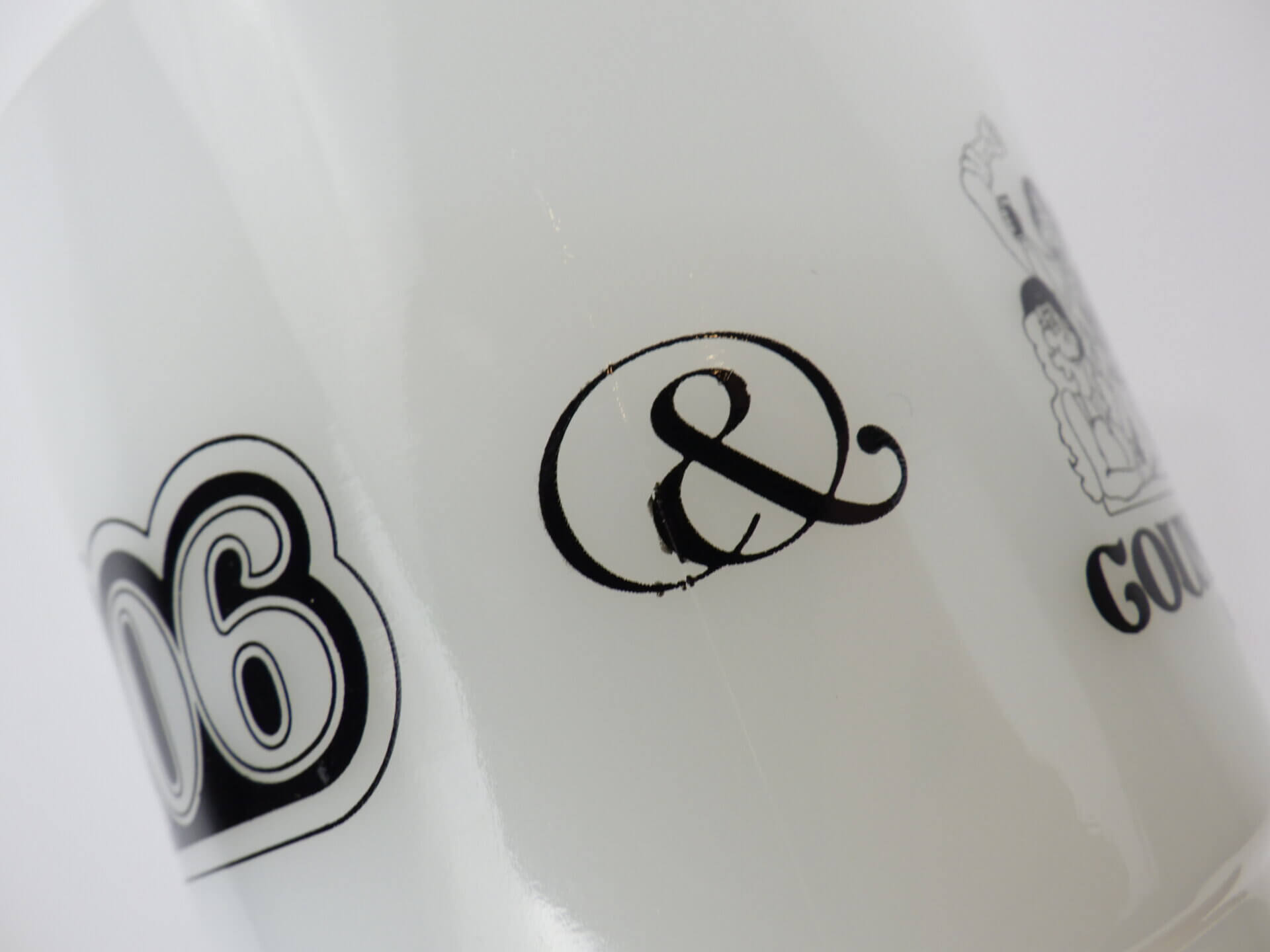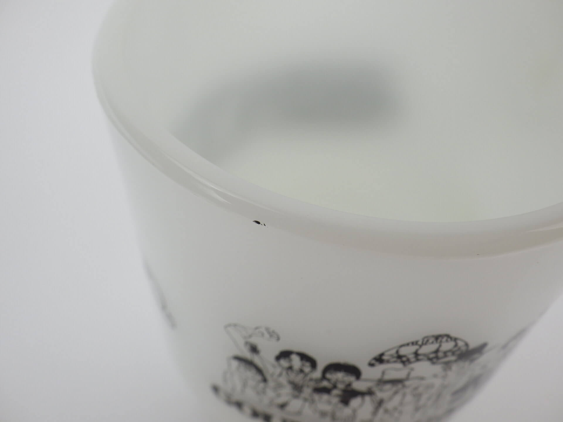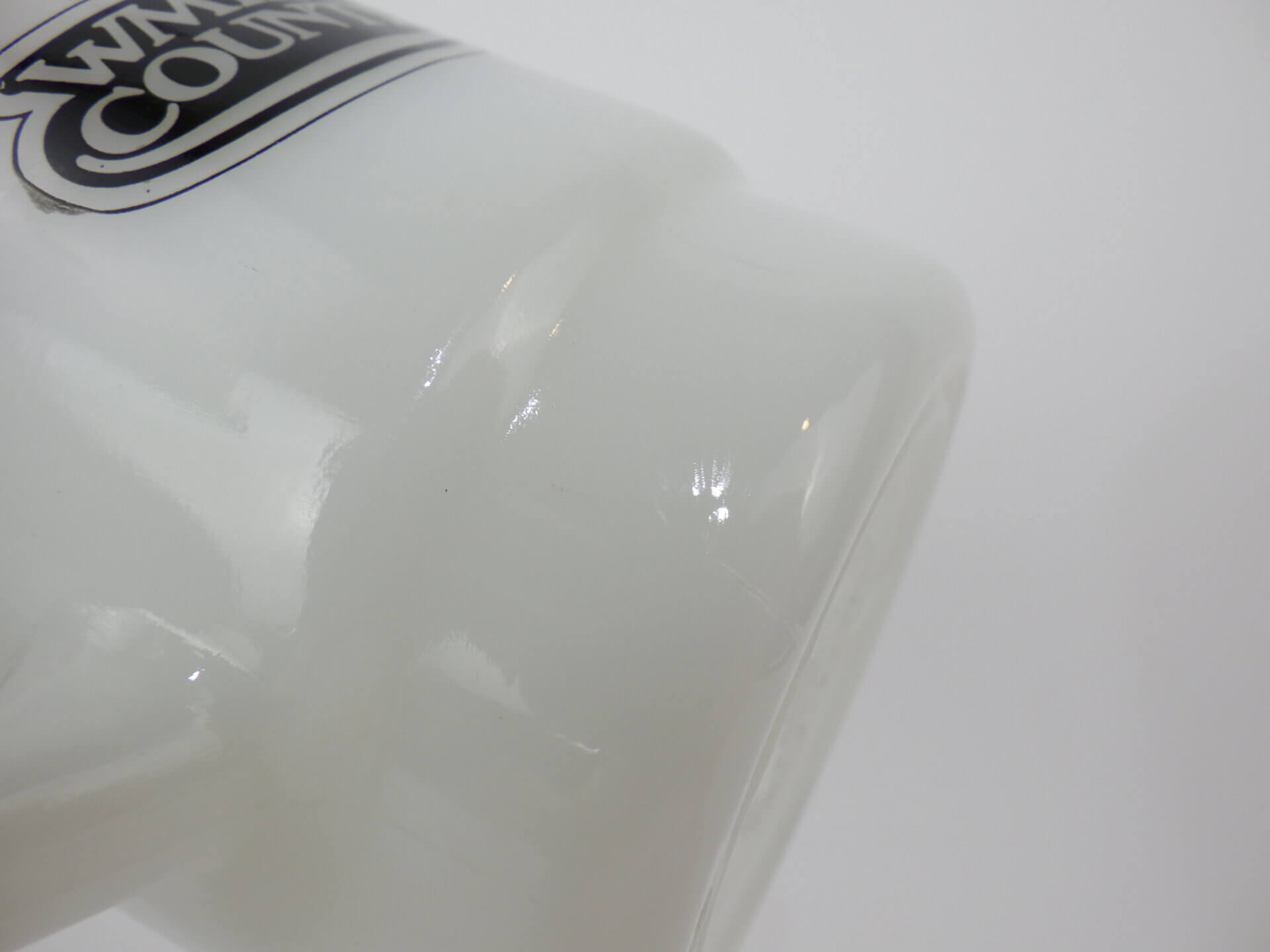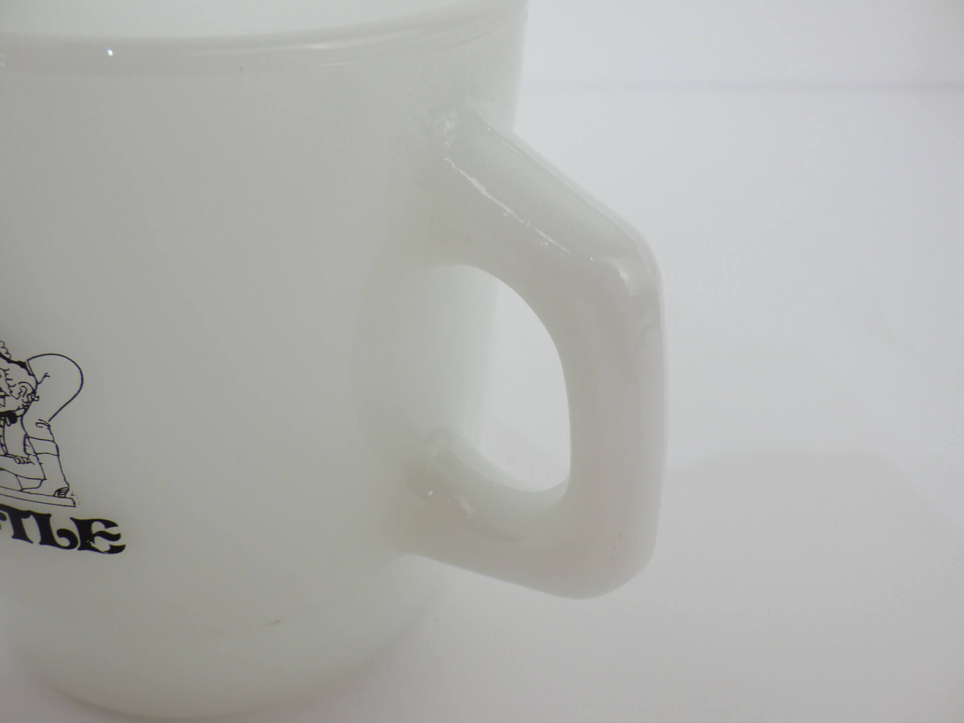 | condition | リム、側面、ハンドル、ボトムにわずかな着色があります。 リムに製造時よりのわずかな凹凸があります。 ボトムに製造時よりの凹凸、わずかなスレがあります。 その他、製造時よりのヘアライン、劣化線、凹凸などありますが、ミルクガラス特有のものです。 |