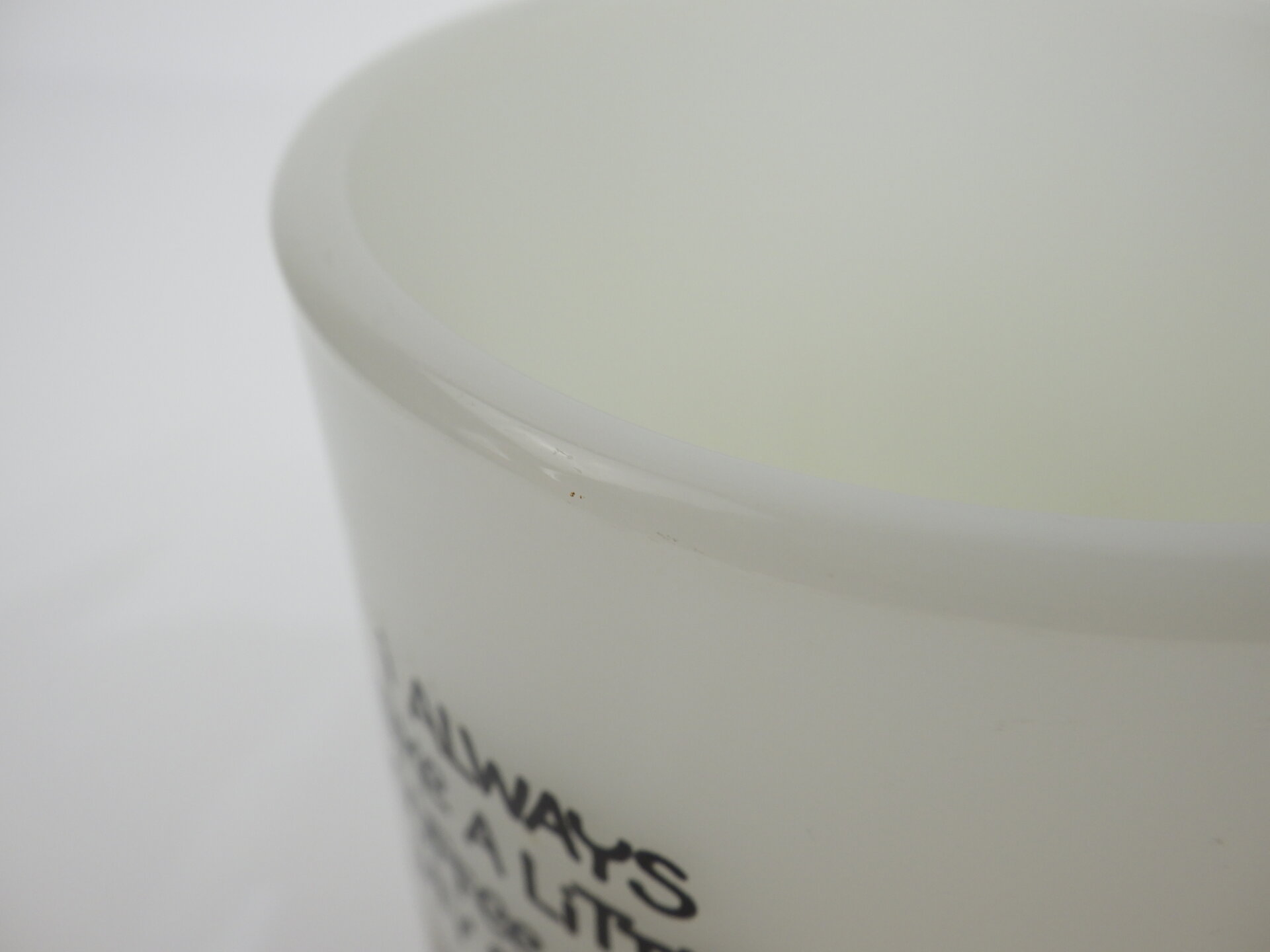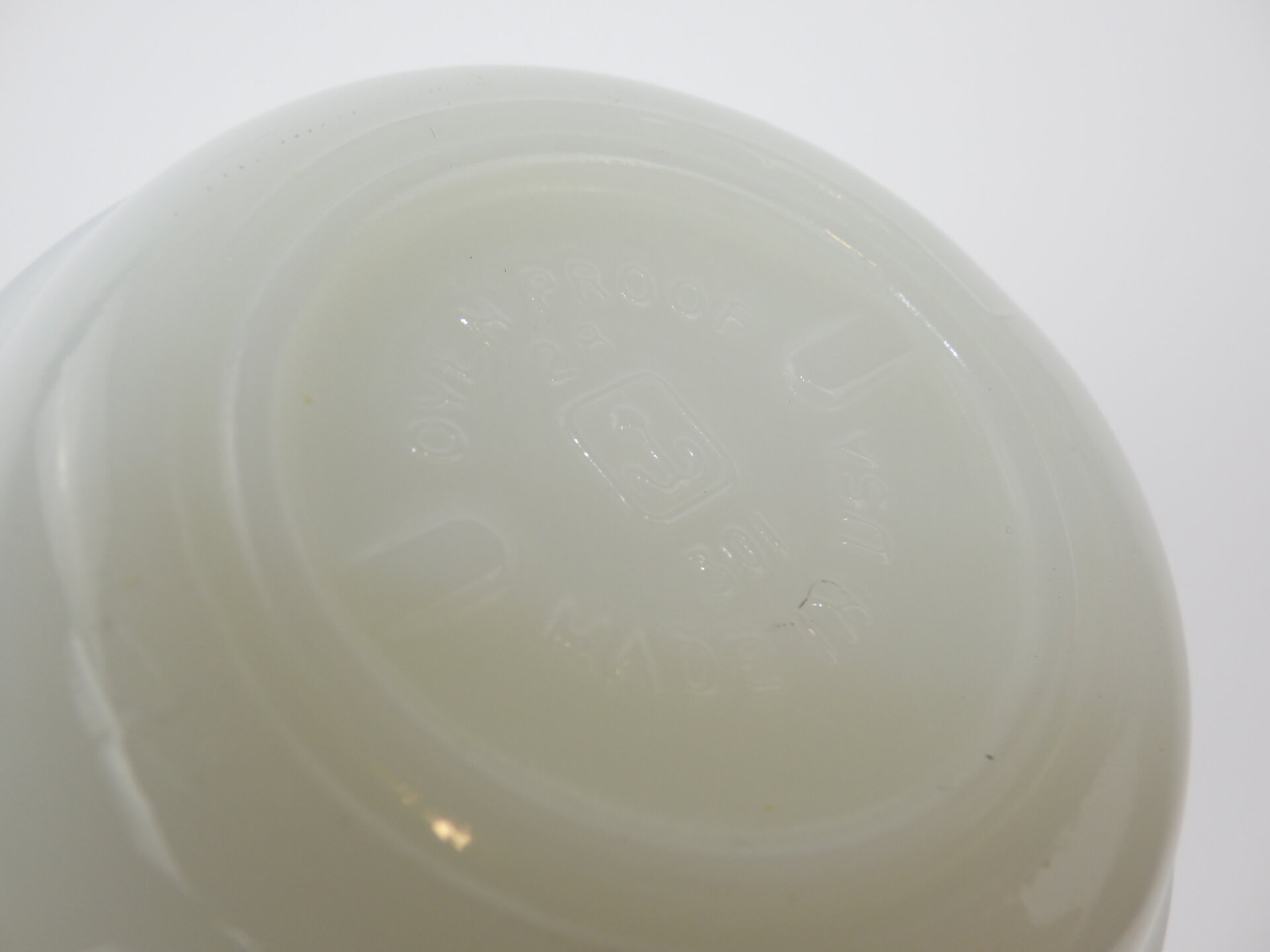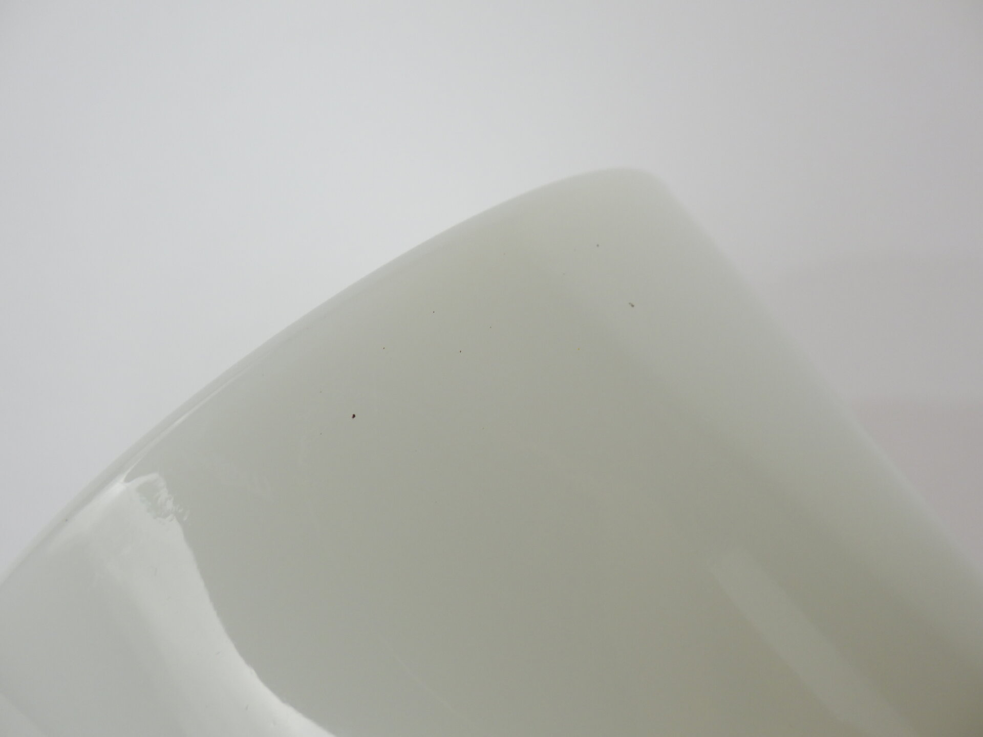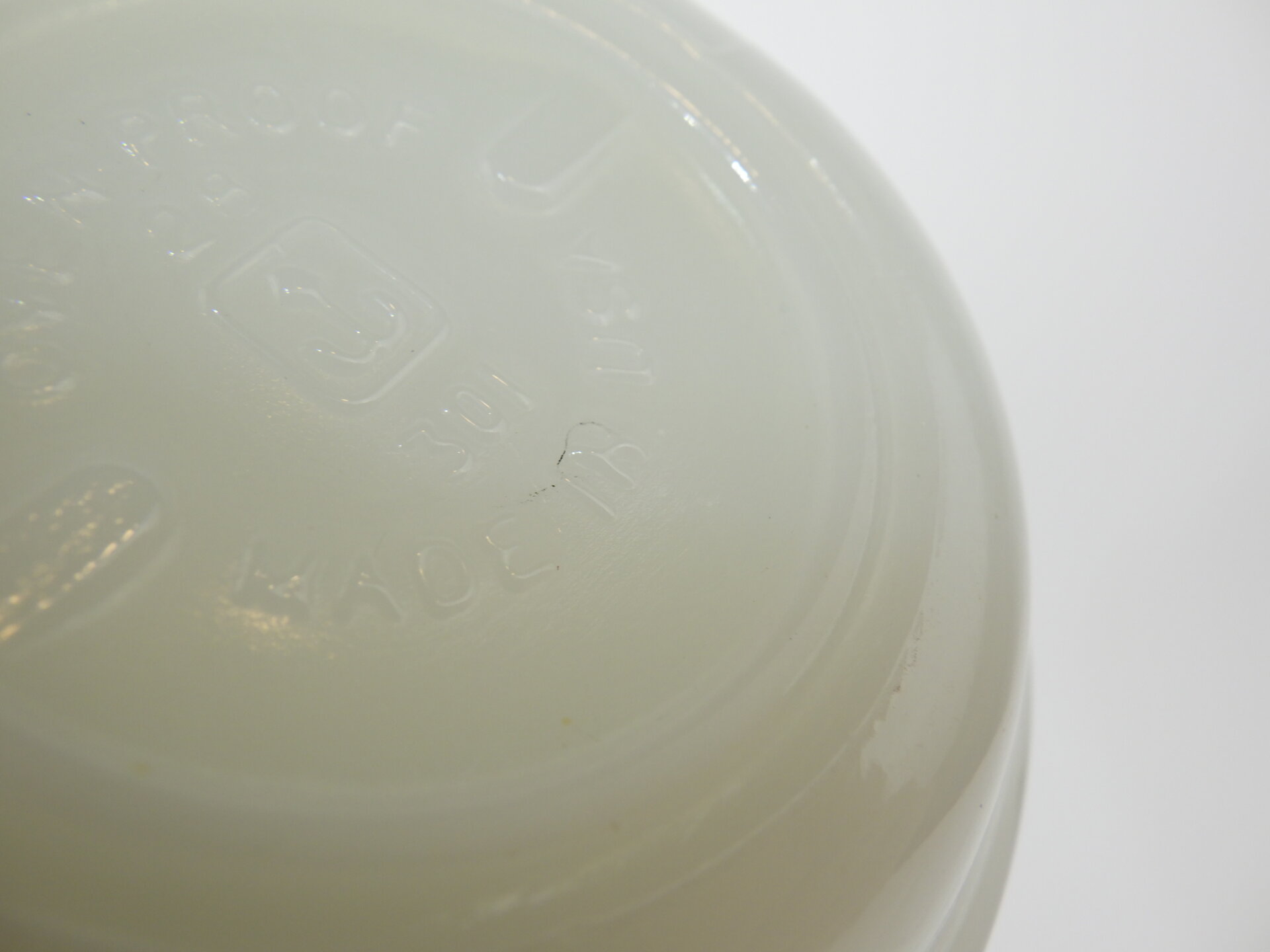 | condition | リム、ボトム、側面にわずかな着色がありあます。 リムの縁に製造時よりのごくわずかながたつき、スレがあります。 製造時よりのホワイトスポット、劣化線、ヘアライン、ガラスのヨレなどありますが、ミルクガラス特有のものです。 |