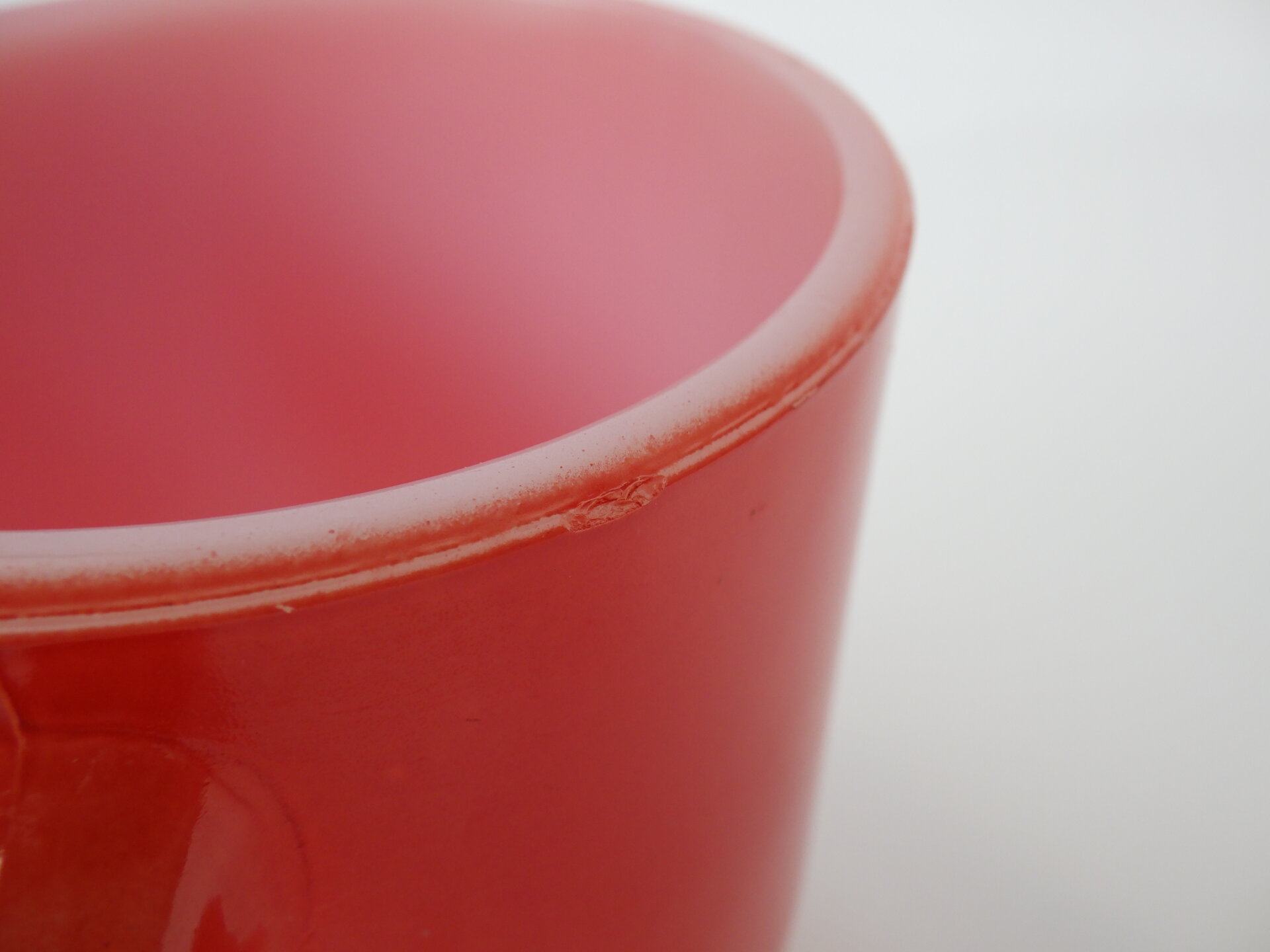 | condition | リムに製造時よりの凹凸やがたつき、わずかな着色があります。 側面に薄い着色があります。 その他、ミルクガラス特有の製造時よりのヘアライン、劣化線、ヨレ、凹凸などありますが、全体的にツヤもあり良い状態です。 |