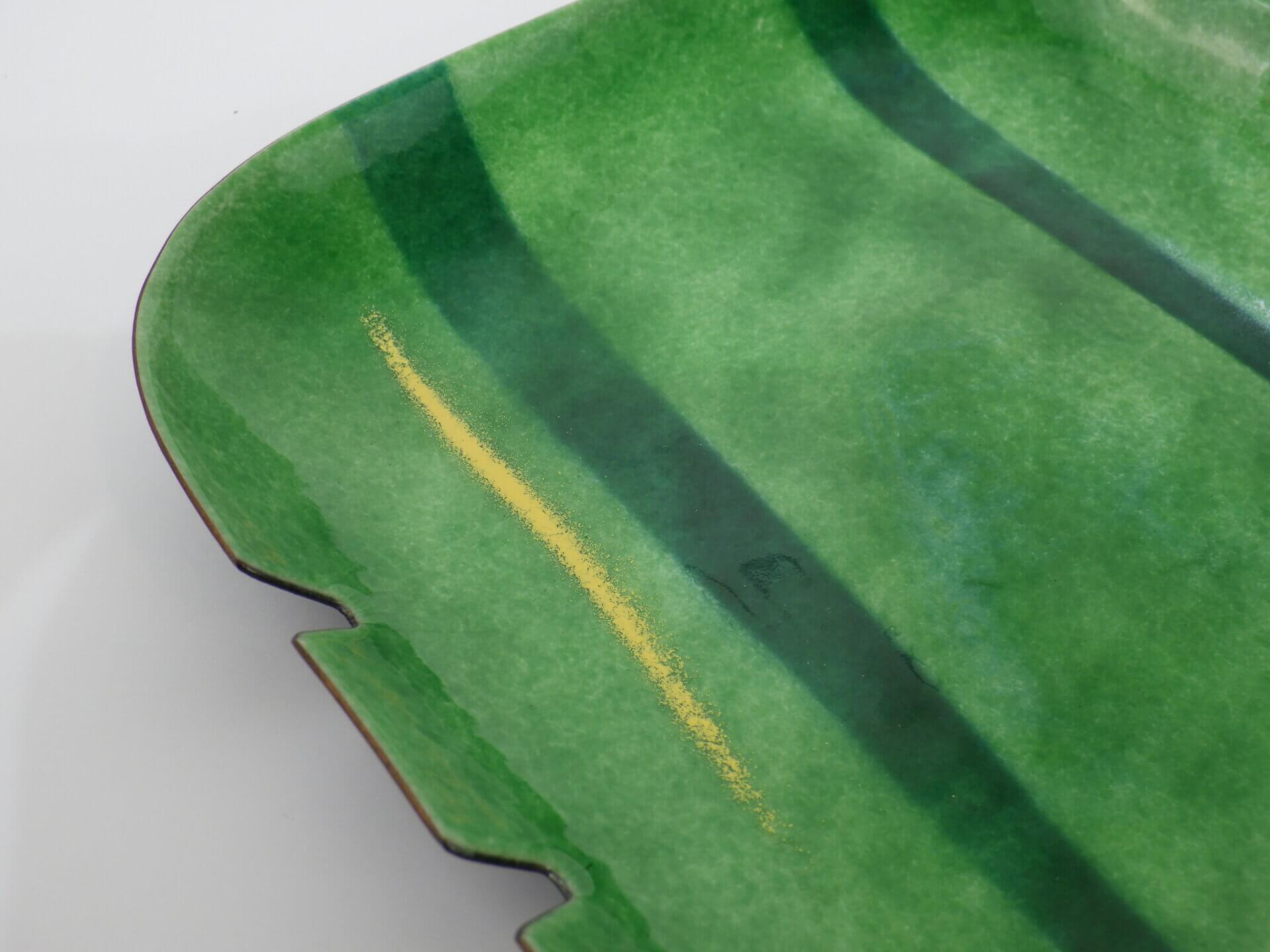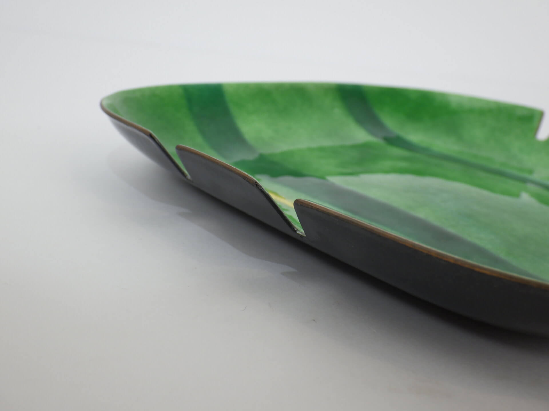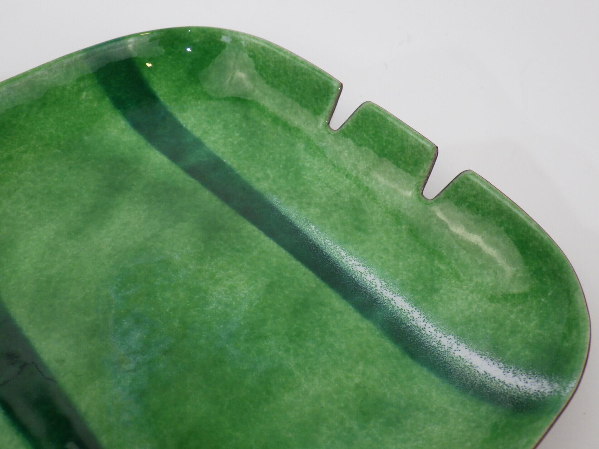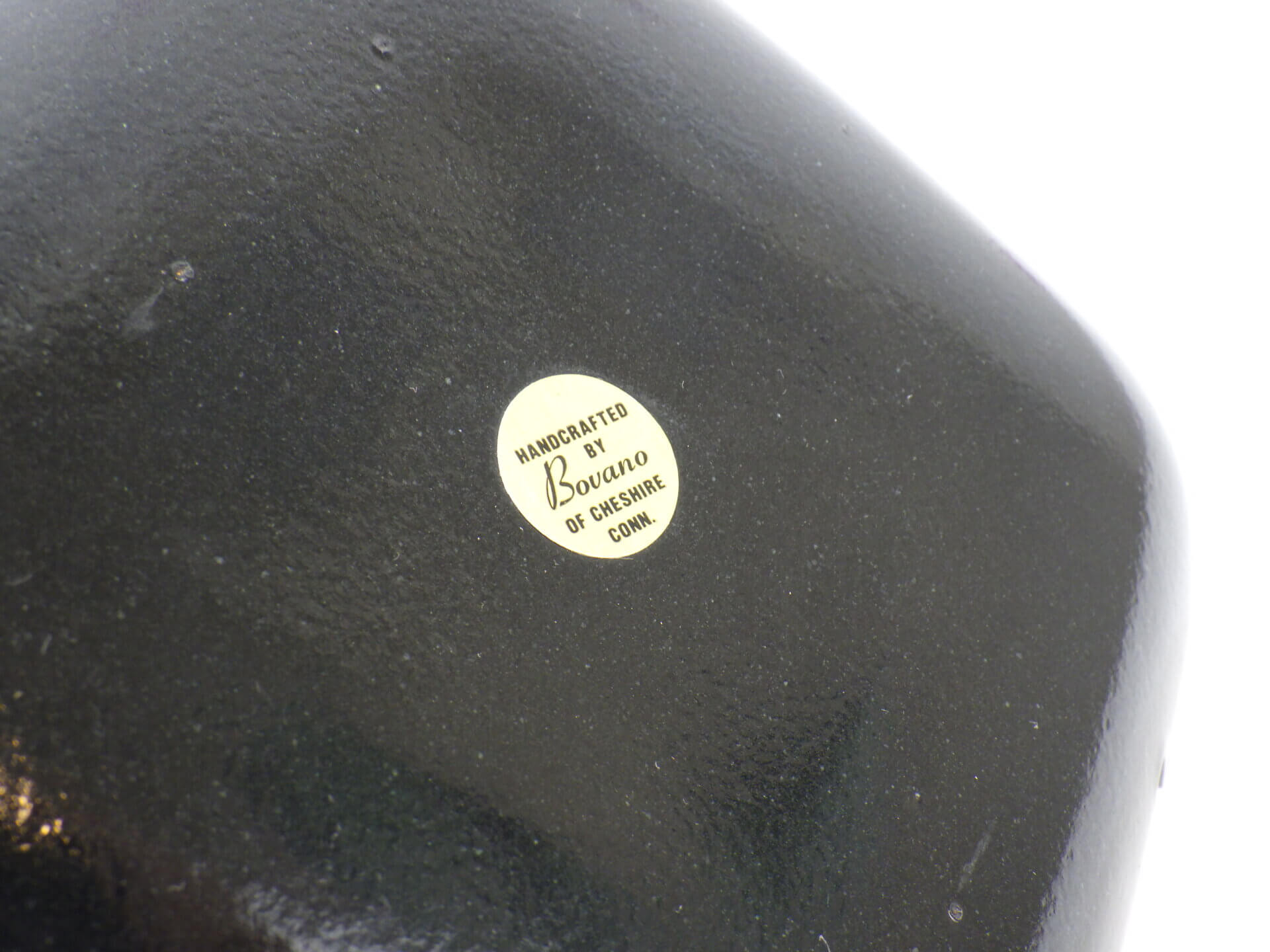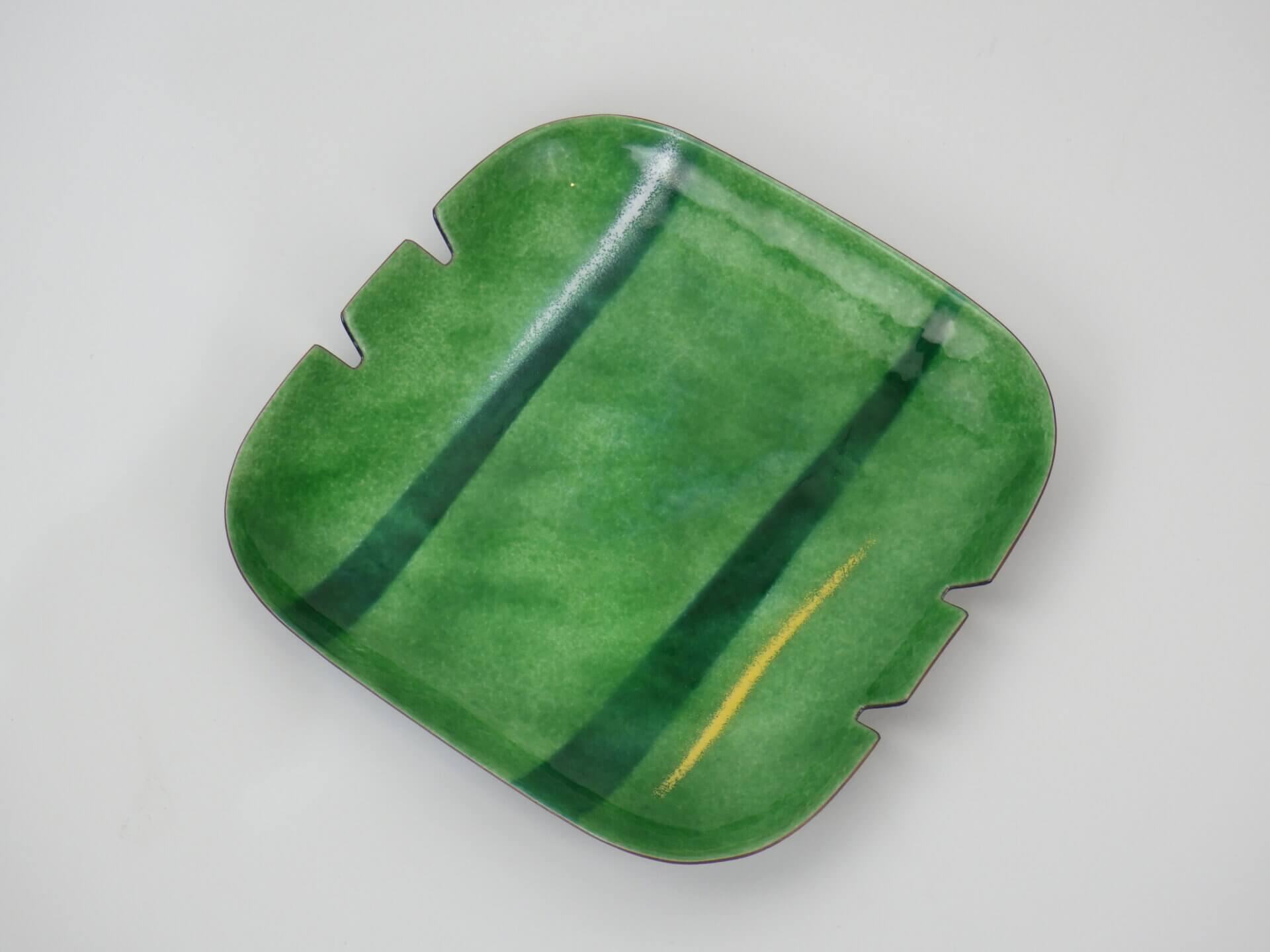 | アメリカで買い付けました。 Bovano of Cheshire社製、ビンテージのエナメル灰皿です。 1952年、芸術家Jim Bowerによって創業され、粉末ガラスを銅に焼き付けるという独自のエナメリング技法を用いて一点一点ハンドクラフトで丁寧に仕上げられた作品を多く生み出しています。 こちらの灰皿もエナメル独自の光沢と色彩が美しく、アート作品の一つとして空間のアクセントにいかがですか? また、灰皿としてはもちろん、アクセサリーや小物入れとしてご使用いただくのもおすすめです。 |