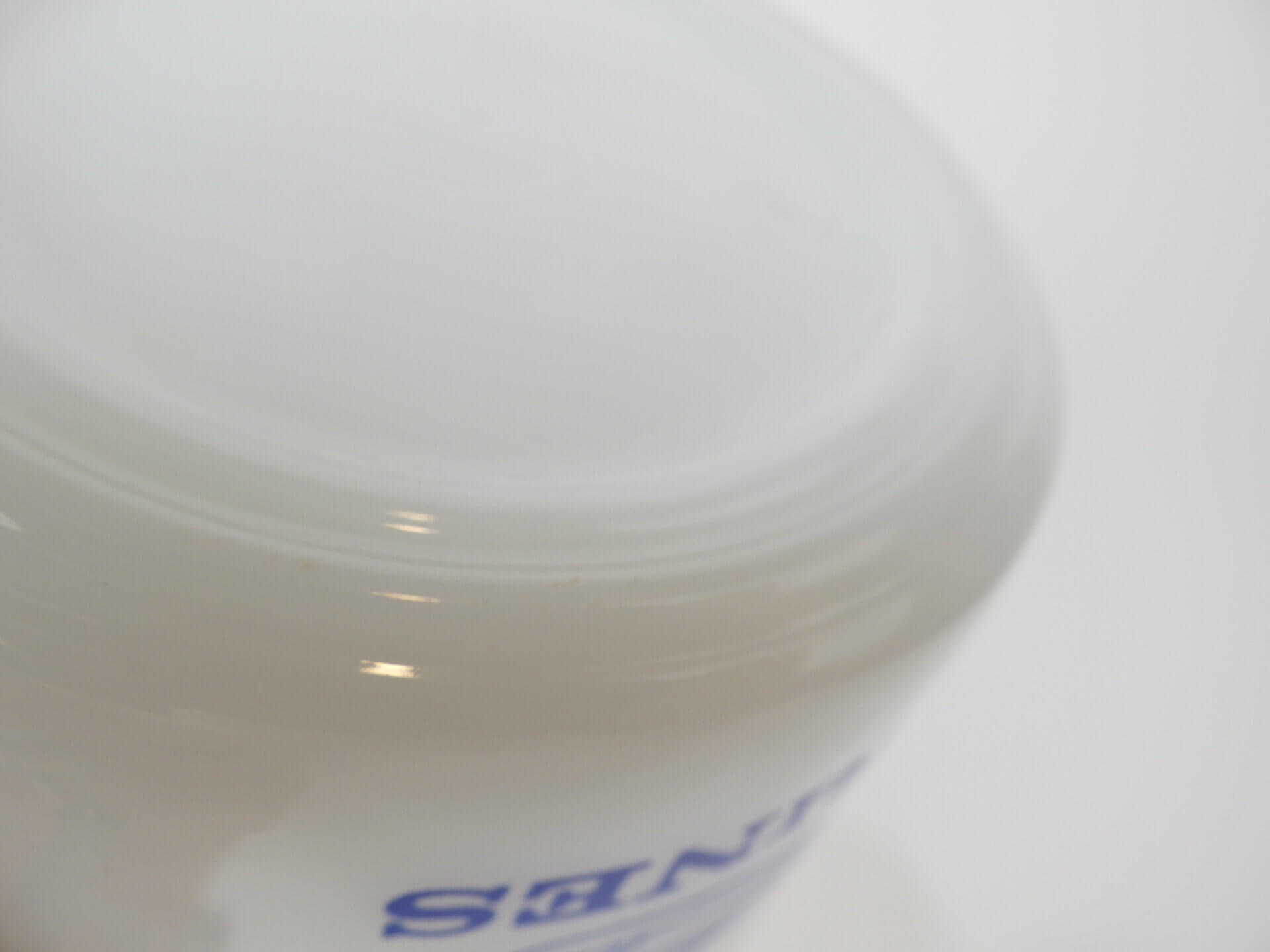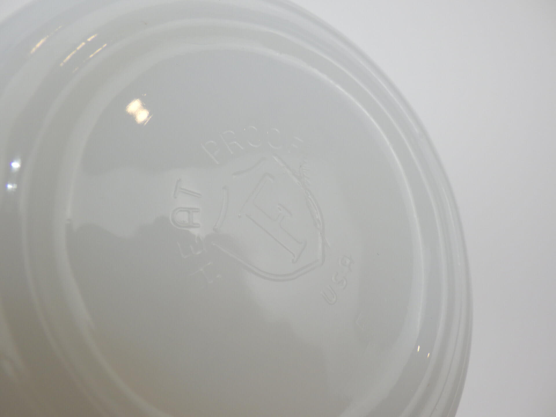 製造時よりのヘアライン、劣化線、凹凸、ガラスのヨレなどありますが、ミルクガラス特有のものです。