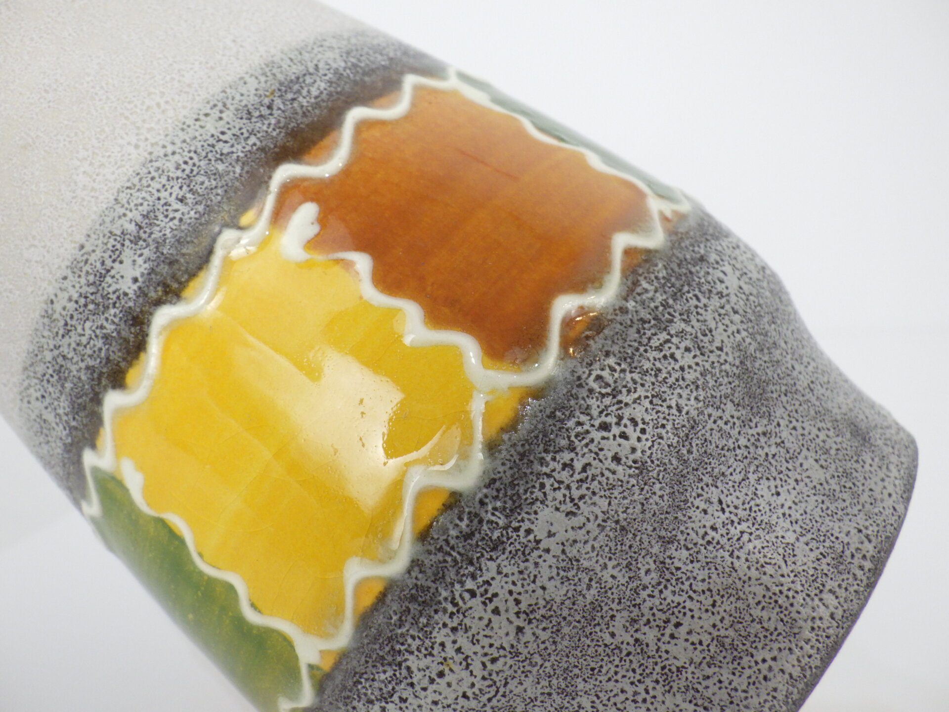 | アメリカで買い付けました。 西ドイツ製、「Bay Keramik」のフラワーベースです。 「Fat Lava」「German Art Pottery」と呼ばれるこの時代のドイツの陶器は、多くが職人による手作業で製作されており、同じシリーズでも一つとして同じ表情の物が存在しません。 こちらはマルチカラーが可愛く、明るい印象。 サイズも比較的小ぶりなため、空間を選ばずお楽しみいただけます。 ドライや枝物を活けたり、オブジェとして飾ったりするのにおすすめしています。 |
