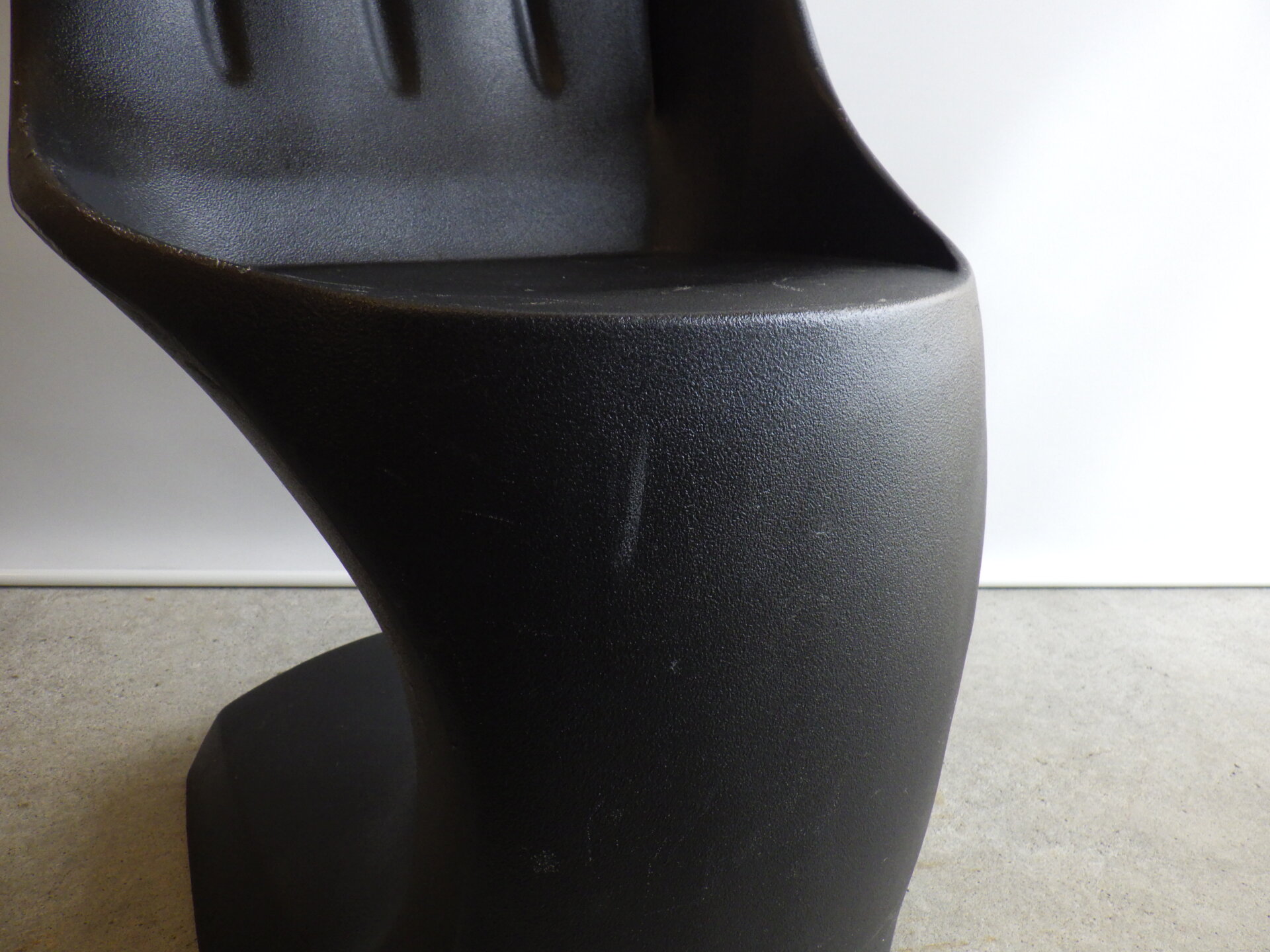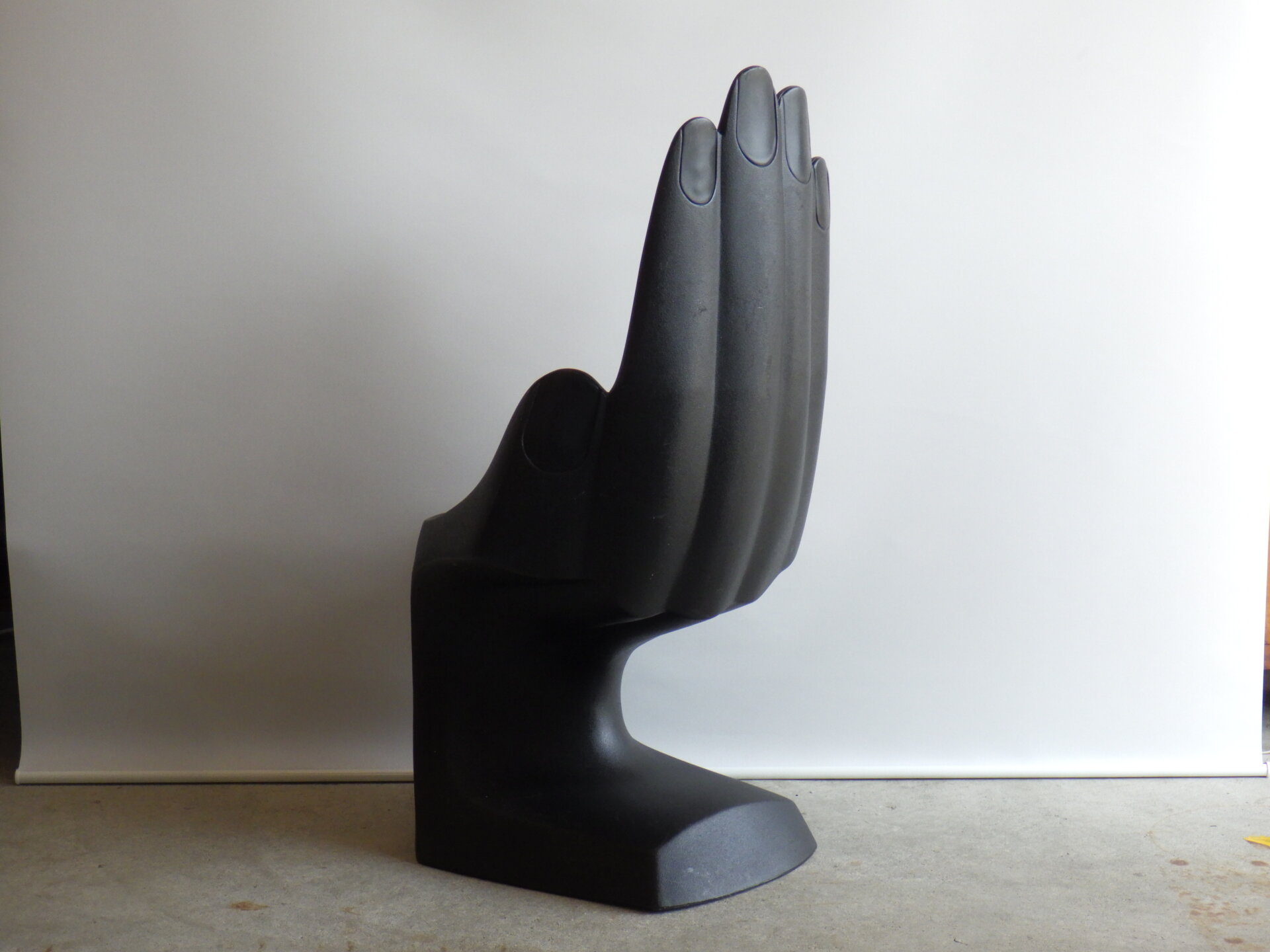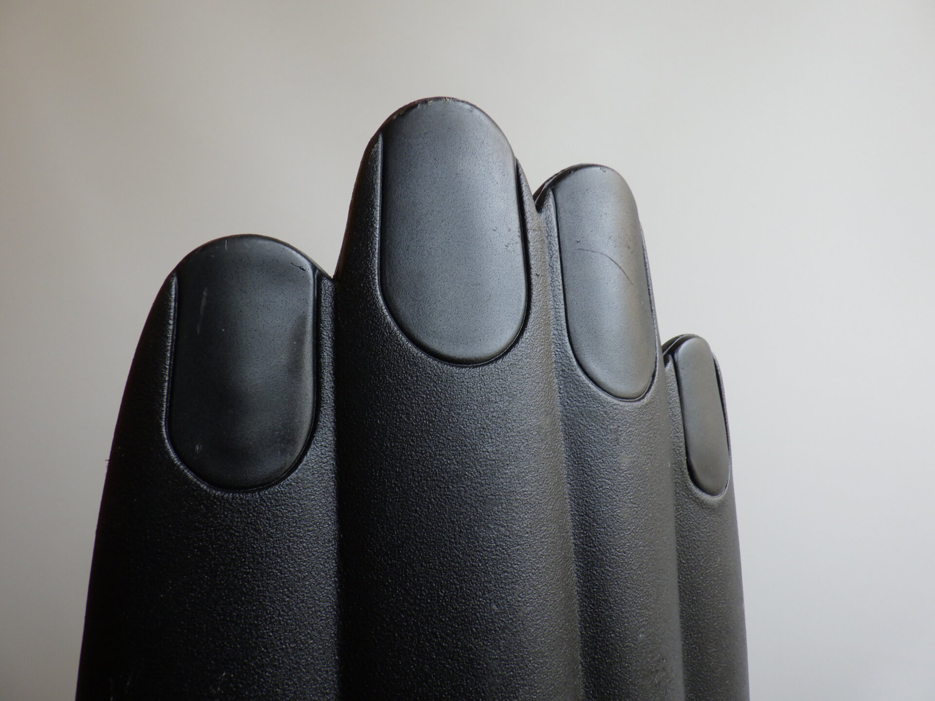 | アメリカで買い付けました。 European Touch社製、ビンテージハンドチェア(通称ネイルチェア)です。 European Touch社は、ジェットバスやペディキュアスパなどを開発、世界中のスパやサロンで採用されている企業です。 ハンドチェアと聞くとごつめの男性的デザインが多い中、こちらは女性のしなやかな手がモデルになっており、実際に爪の部分にカラーを塗装してネイルサロンなどにも置かれています。 キャスター付きやキッズサイズも展開されているようですが、こちらはフルサイズのキャスター無しのタイプ。 プラスチック樹脂製でかなり頑丈な作りとなっているため、実際にお座りいただいてご使用いただけます。 またショップディスプレイのアクセントにしたり、サイドテーブルや植物台などにしてお楽しみいただくのも良さそう。 モダンでポップな雰囲気がお好きな方や、店舗什器をお探しの方、いかがですか? |